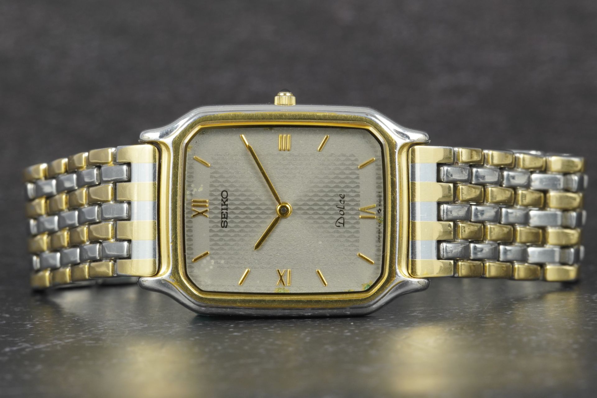 Découvrez l’élégance intemporelle de la Seiko Dolce « Tank » (Réf. 5E30-5A00), une pièce unisexe au charme discret. Son boîtier en acier de 25.5mm de diamètre et 4.9mm d’épaisseur, offre une silhouette raffinée. Animée par un mouvement Quartz de haute précision, cette montre incarne la fiabilité japonaise. Le bracelet original en acier bicolore Or/Acier est complété par sa boucle d’origine à fermoir bijoux. Parfaite pour le quotidien avec son étanchéité de 3 ATM, elle est livrée seule et bénéficie d’une garantie de 12 mois.