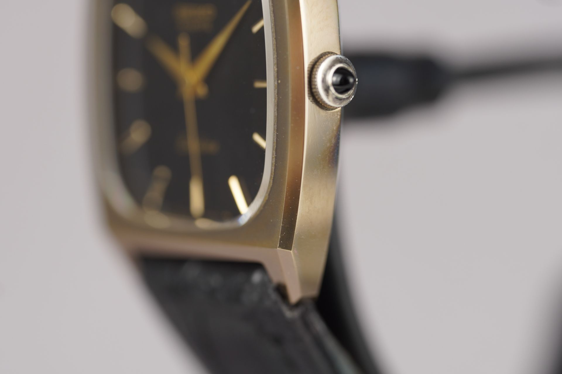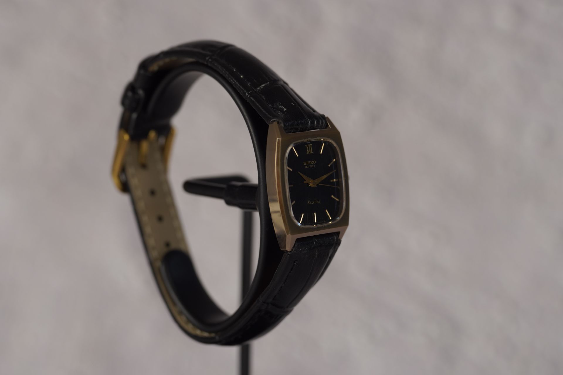 Plongez dans l’élégance discrète avec cette montre Seiko « Tonneau » Exceline, référence commerciale 1421-5300. Destinée à la femme raffinée, son boîtier en acier de 24.5mm de diamètre et 6.2mm d’épaisseur révèle des courbes délicates, sublimant le poignet d’une touche vintage. Animée par un mouvement à Quartz, gage de précision et de fiabilité, cette pièce intemporelle allie fonctionnalité et esthétisme. Le bracelet en cuir noir, non-original, est accompagné d’une boucle ardillon non-originale, offrant un ajustement parfait. Livrée seule, cette montre en bon état est une belle opportunité d’acquérir une pièce classique, accompagnée d’une garantie de 12 mois.