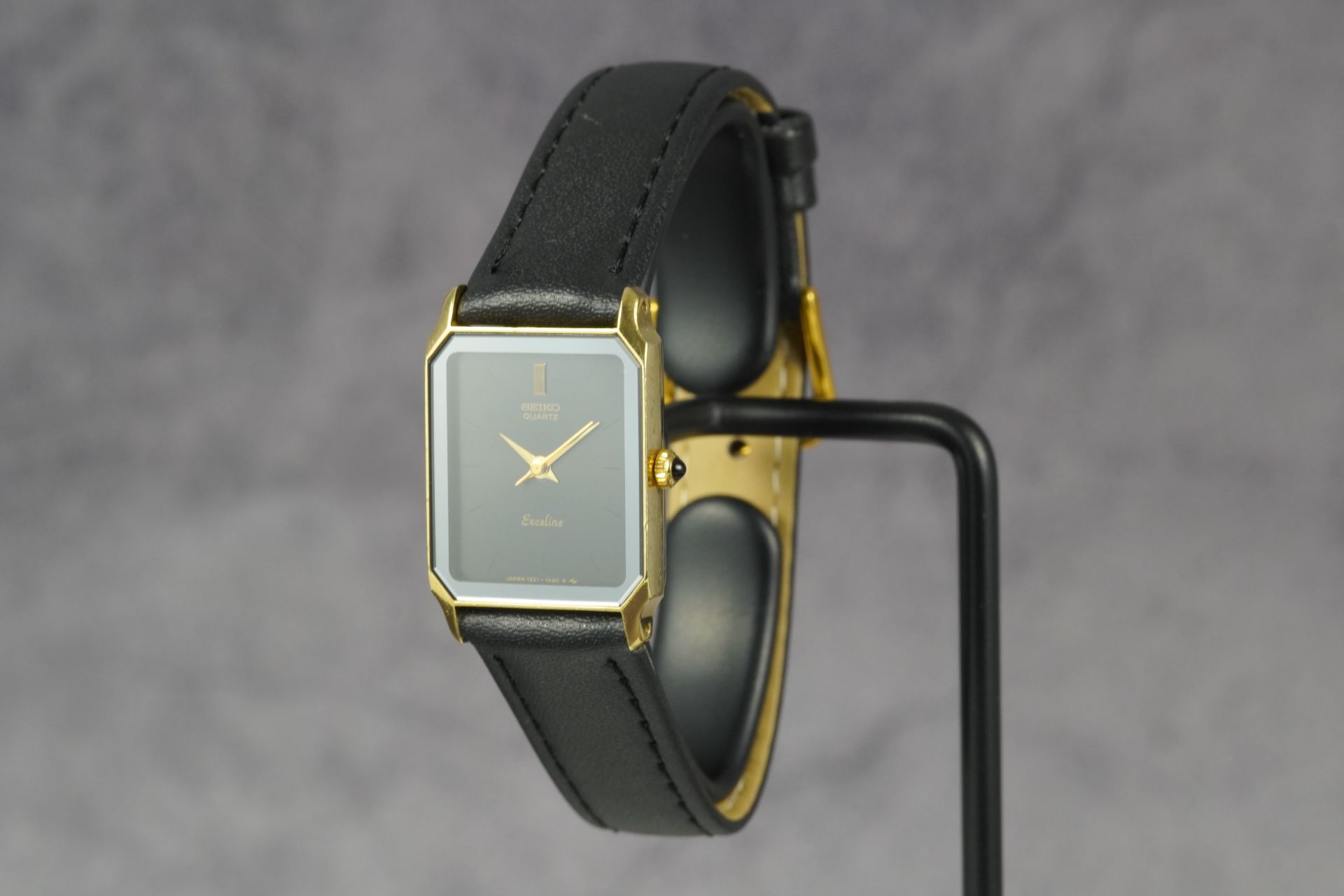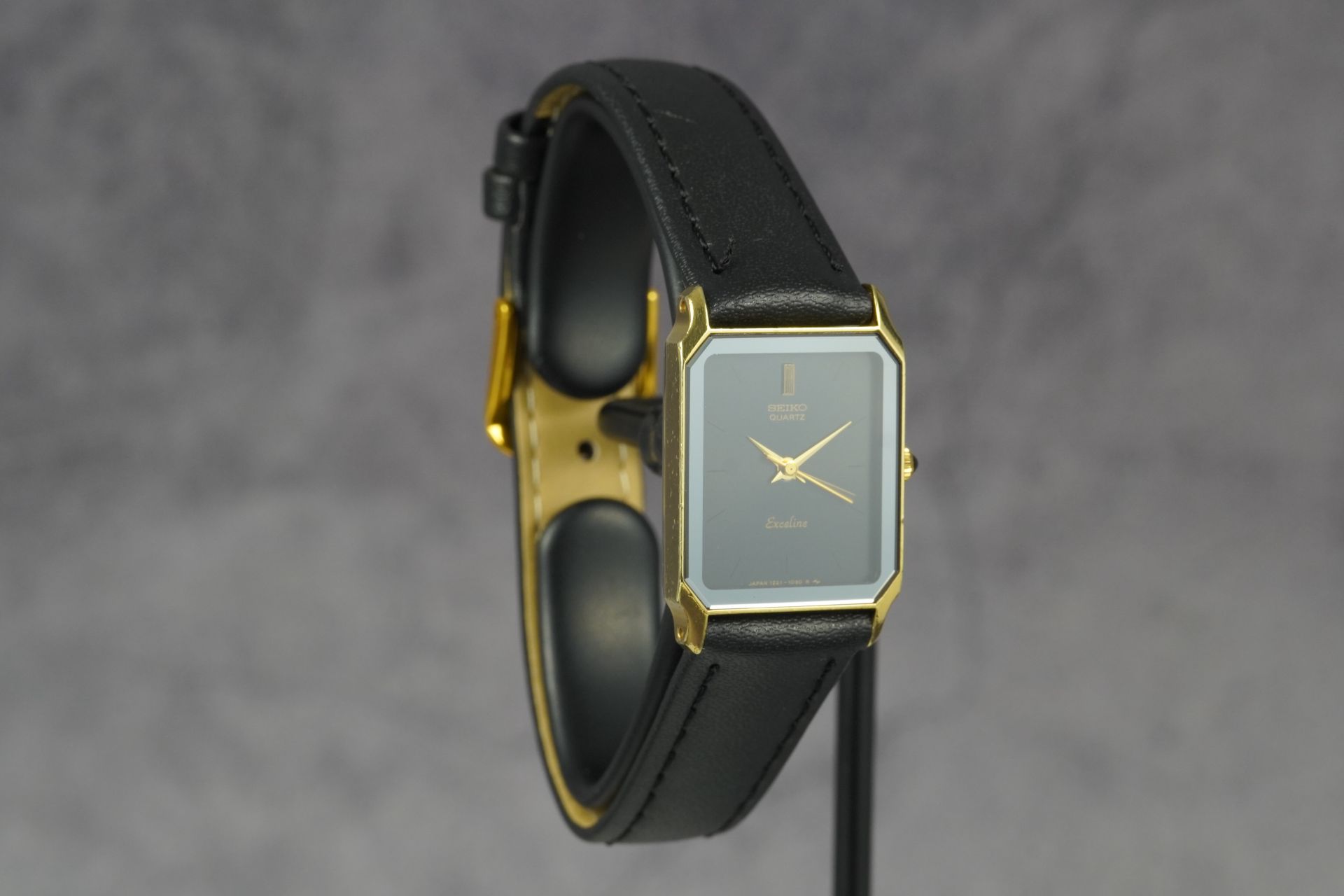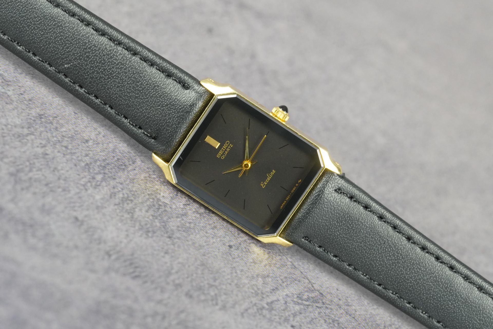 Découvrez la montre Seiko Excline « Tank » (référence 1221-5780), une pièce raffinée conçue spécialement pour les femmes qui apprécient l’élégance intemporelle. Son boîtier en acier de 18,9 mm renferme un cadran au design sobre et chic, parfaitement adapté à toutes les occasions. Dotée d’un bracelet en cuir aux finitions délicates, cette montre allie confort et style pour un port quotidien agréable. Bien que le bracelet et la boucle ne soient pas d’origine, leur qualité remarquable s’intègre harmonieusement au look distinctif de la montre. Que ce soit pour un rendez-vous professionnel ou une soirée entre amis, la Seiko Excline « Tank » sublimera votre poignet et complétera aisément vos tenues. Faites un choix de sophistication avec cette montre emblématique de la marque Seiko.