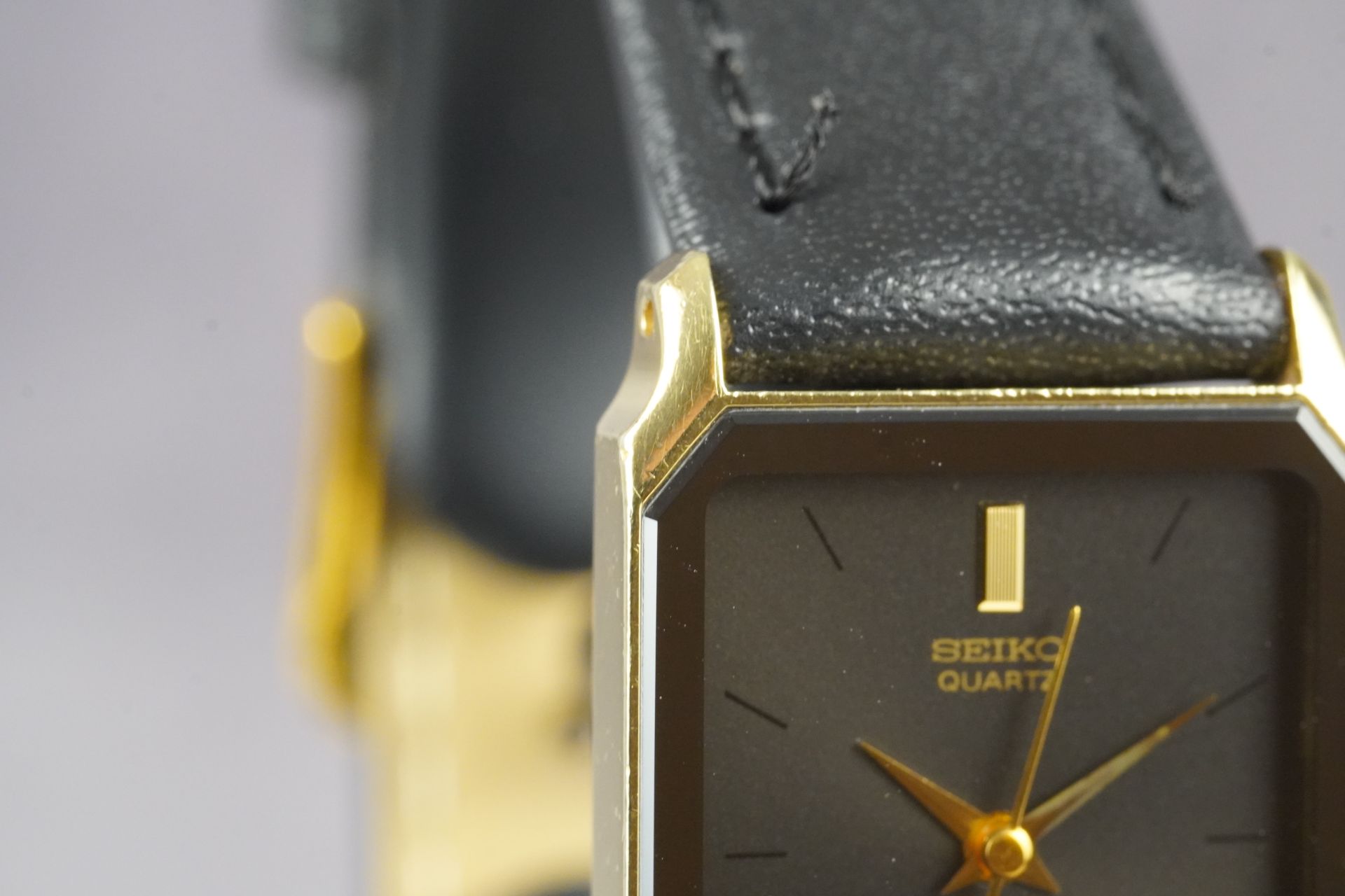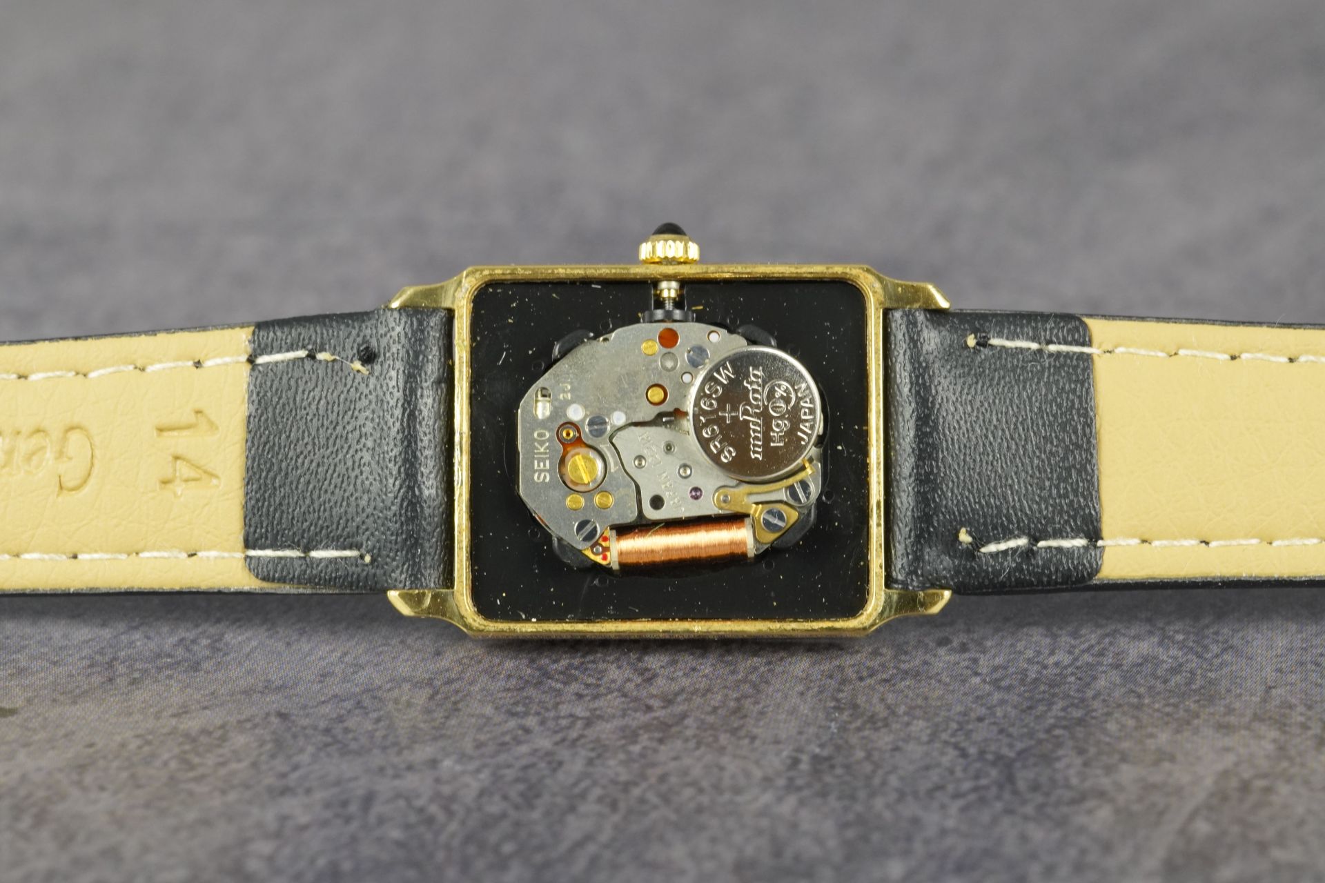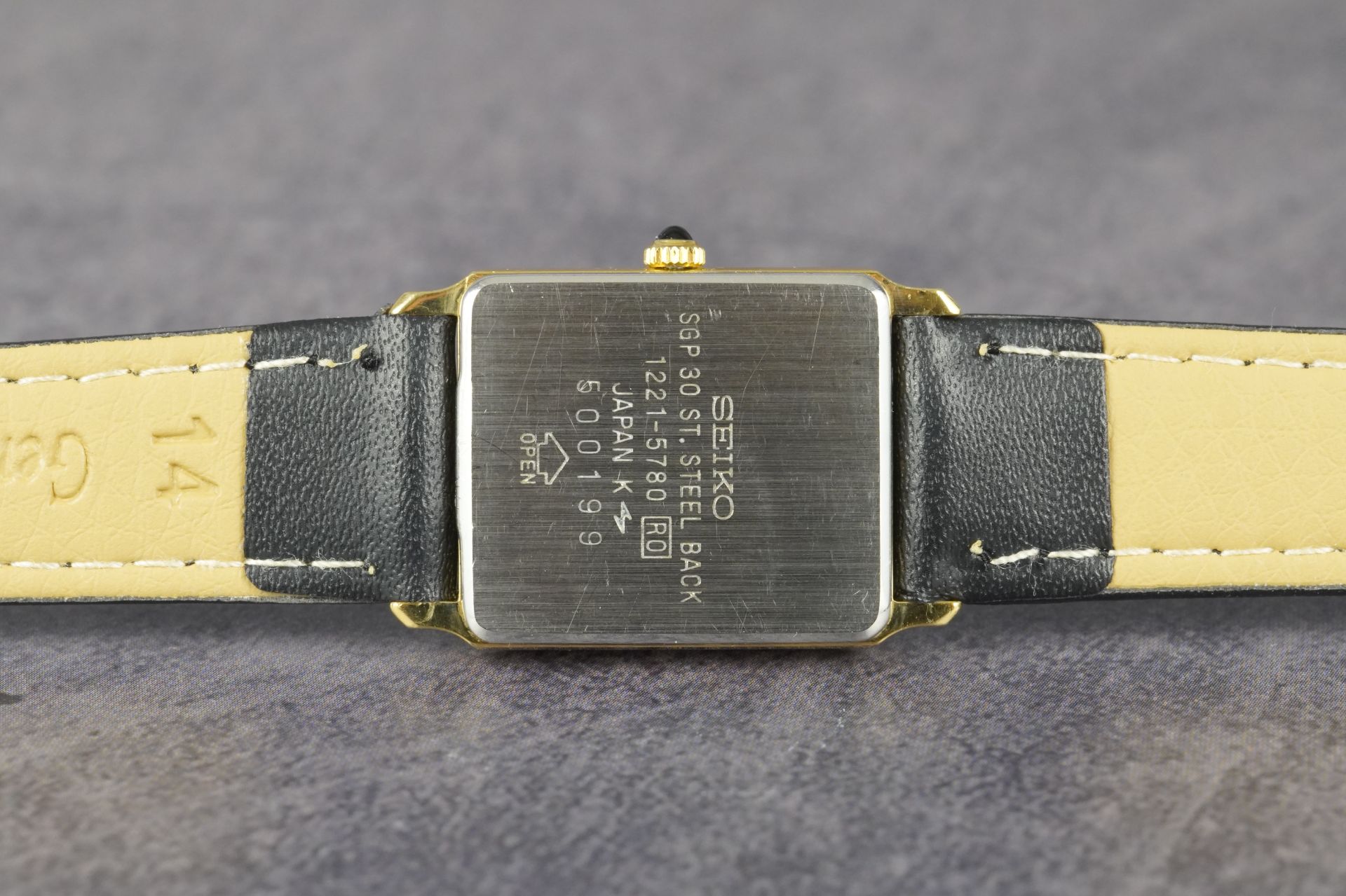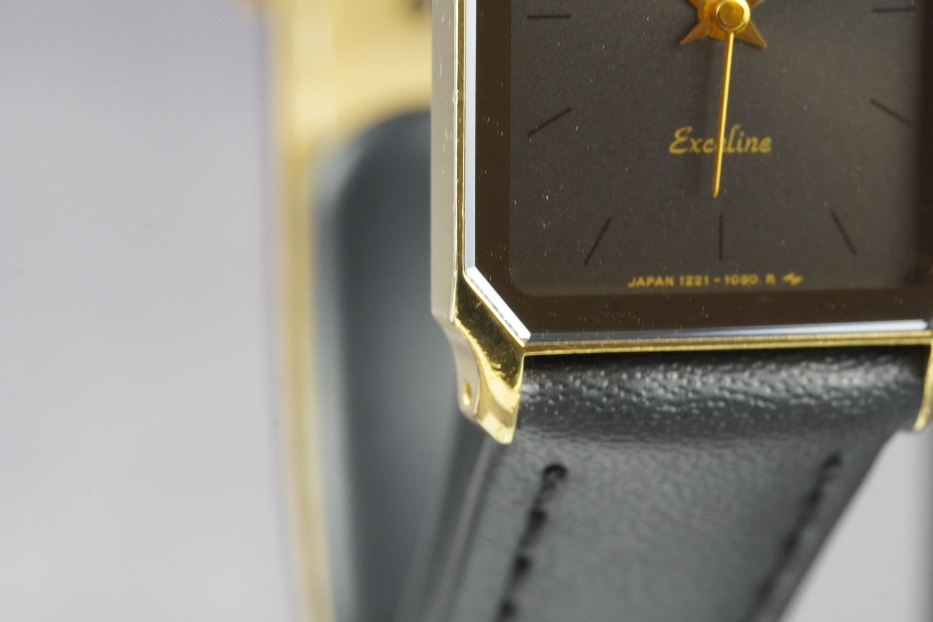 Découvrez la montre Seiko Excline « Tank » (référence 1221-5780), une pièce raffinée conçue spécialement pour les femmes qui apprécient l’élégance intemporelle. Son boîtier en acier de 18,9 mm renferme un cadran au design sobre et chic, parfaitement adapté à toutes les occasions. Dotée d’un bracelet en cuir aux finitions délicates, cette montre allie confort et style pour un port quotidien agréable. Bien que le bracelet et la boucle ne soient pas d’origine, leur qualité remarquable s’intègre harmonieusement au look distinctif de la montre. Que ce soit pour un rendez-vous professionnel ou une soirée entre amis, la Seiko Excline « Tank » sublimera votre poignet et complétera aisément vos tenues. Faites un choix de sophistication avec cette montre emblématique de la marque Seiko.