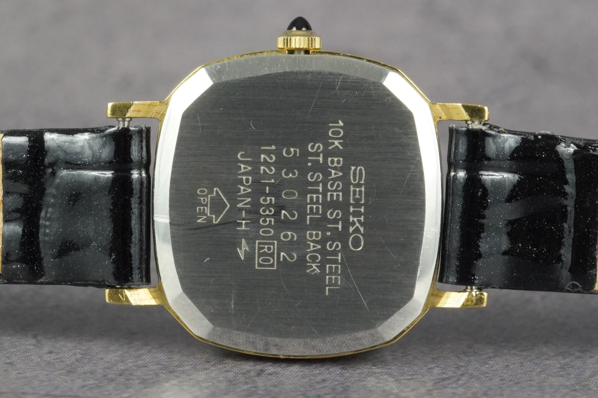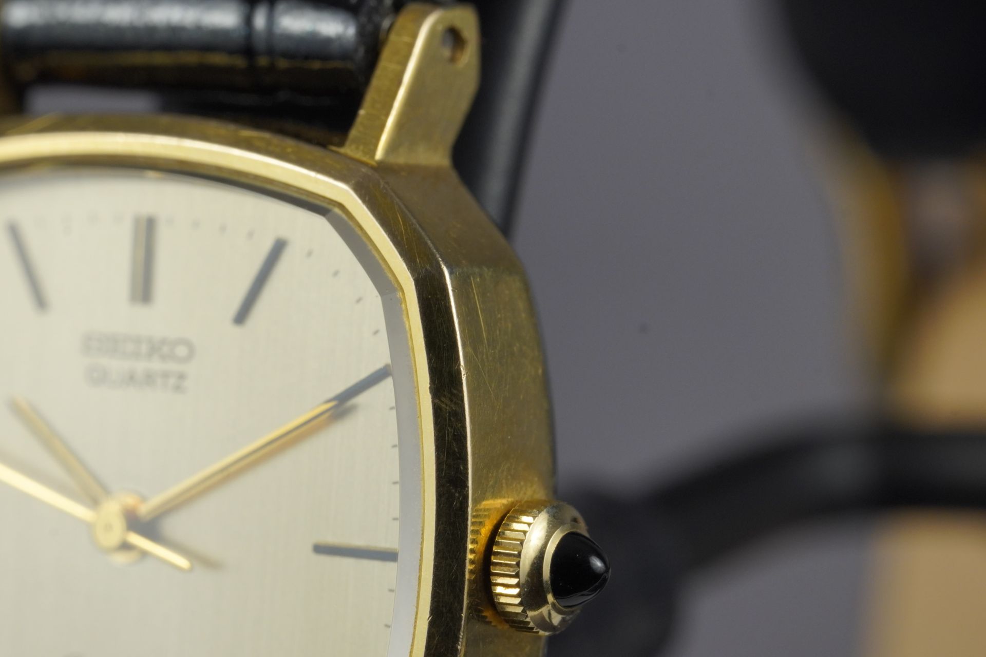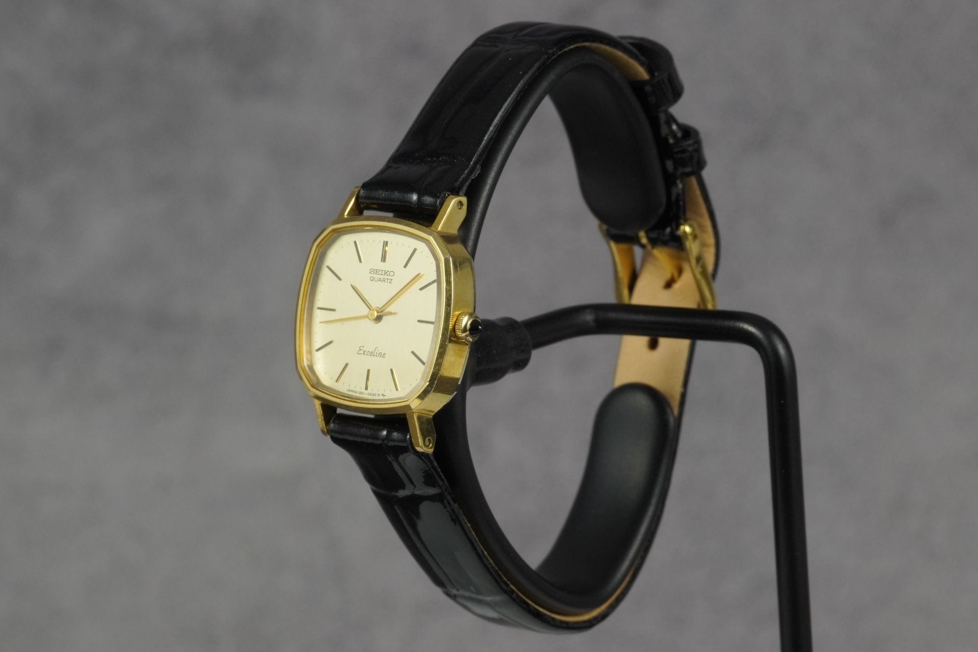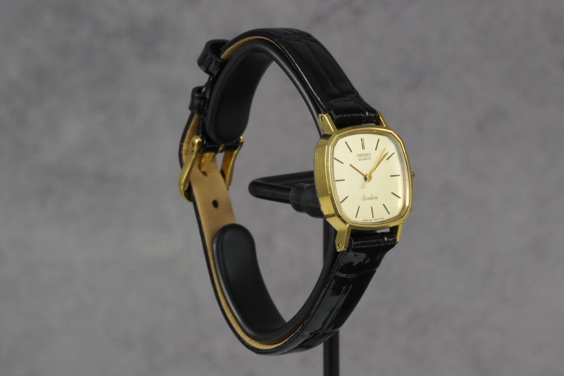 Découvrez l’élégance discrète avec cette montre Seiko Exceline Quartz, référence commerciale 1221-5350 (Référence TOT : TOT-11352). Conçue pour la femme moderne, elle abrite un mouvement Quartz précis dans un boîtier en acier de 21.8 mm de diamètre et 5 mm d’épaisseur, alliant finesse et robustesse. Le cadran est sublimé par un bracelet en cuir noir, non-original, qui s’harmonise parfaitement avec la boucle ardillon d’origine. Cette pièce en bon état est livrée avec son coffret, prête à compléter votre collection ou à devenir un objet de transmission. Elle bénéficie d’une garantie de 12 mois.