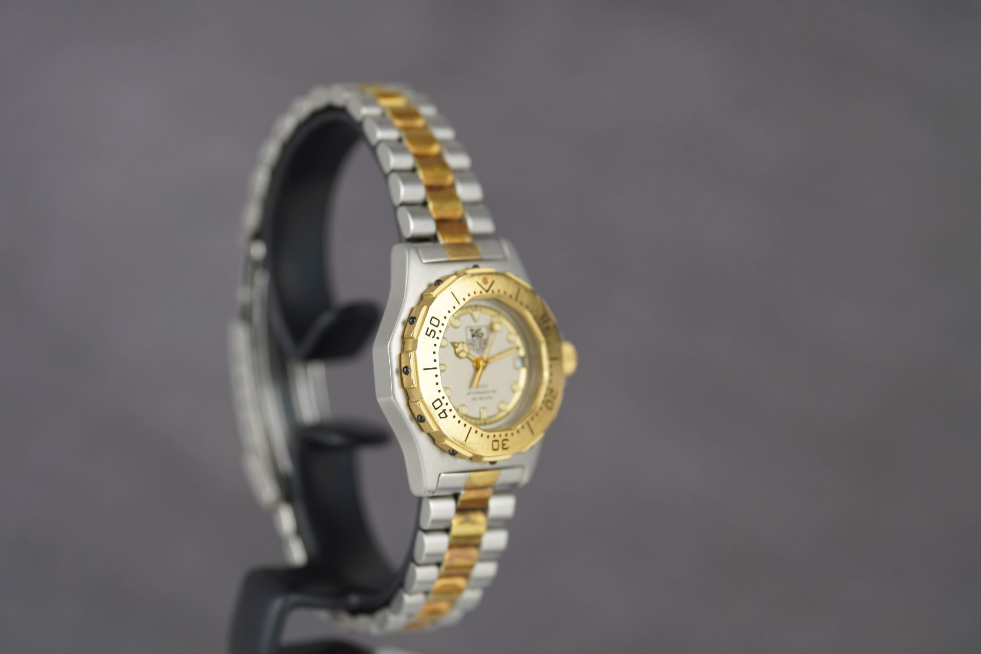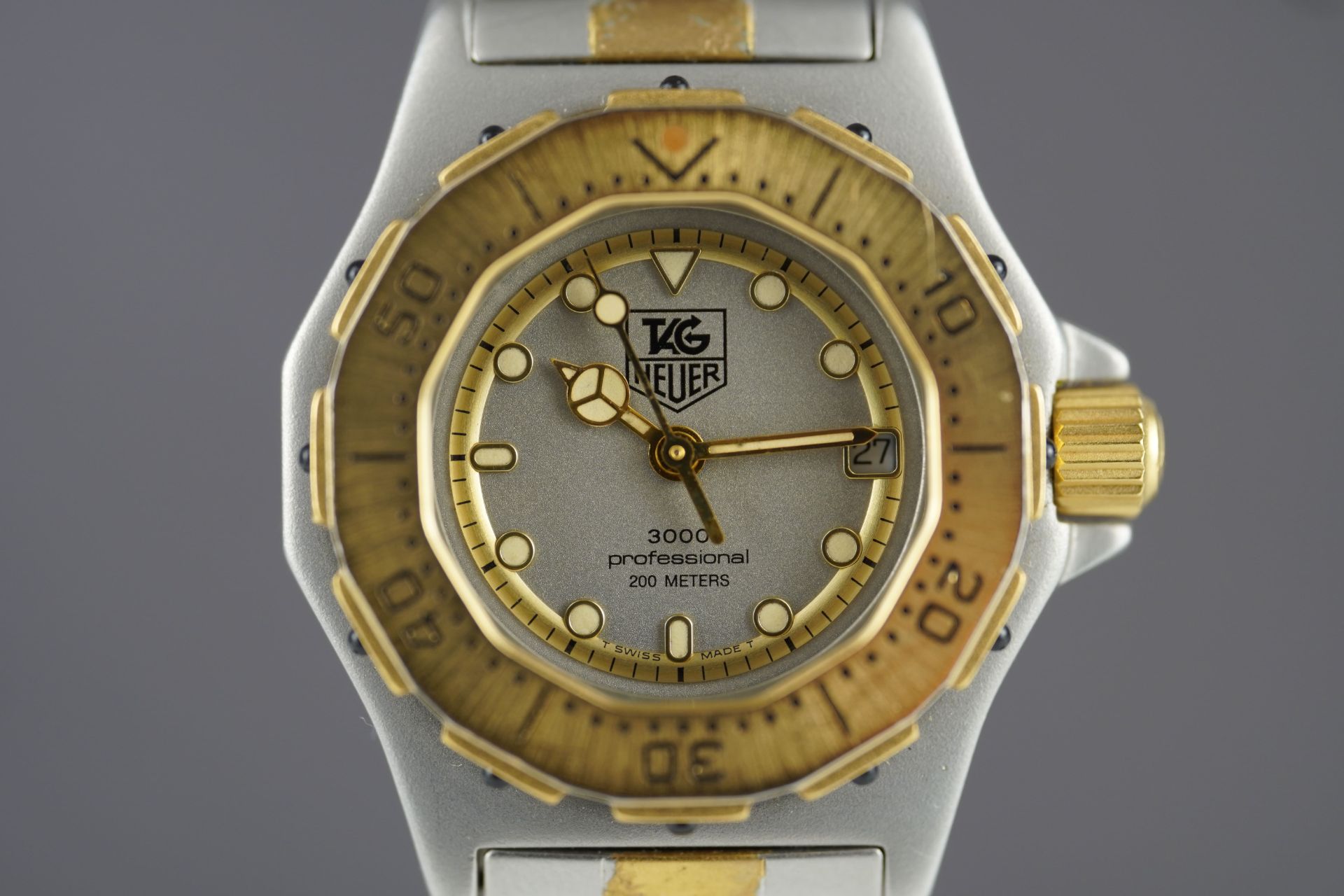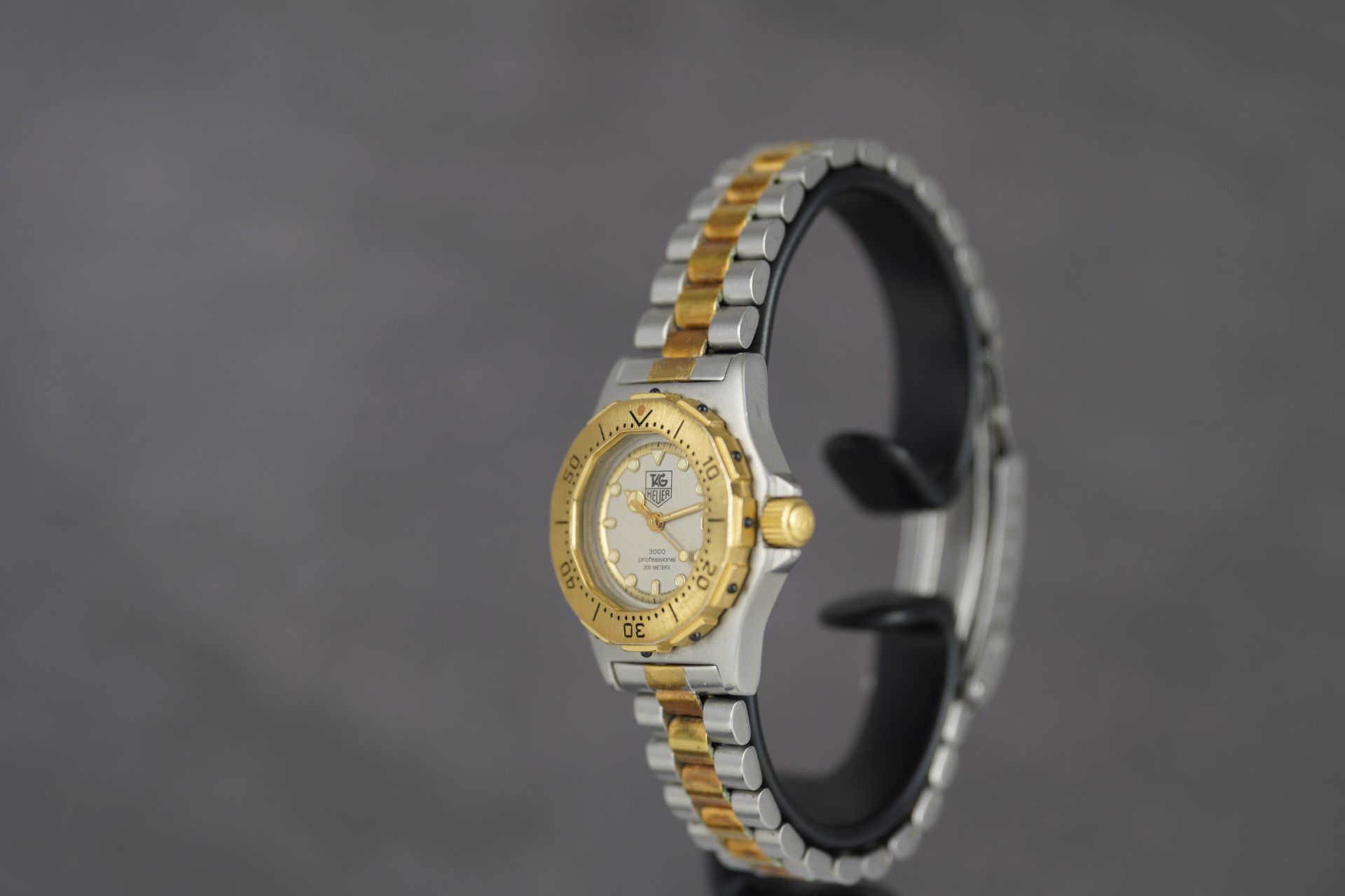 Découvrez la TAG Heuer 3000 Professional, référence 934.208, un modèle emblématique conçu pour la femme exigeante. Son boîtier en acier de 28 mm de diamètre et 8,8 mm d’épaisseur abrite un mouvement Quartz précis, garantissant une fiabilité irréprochable. Le bracelet original en acier bicolore Or/Acier se marie parfaitement avec l’élégance du cadran, tandis que sa boucle déployante originale assure un maintien sûr. Avec une étanchéité de 20 ATM, cette pièce allie esthétique et robustesse. Cette montre est proposée avec une garantie de 12 mois.