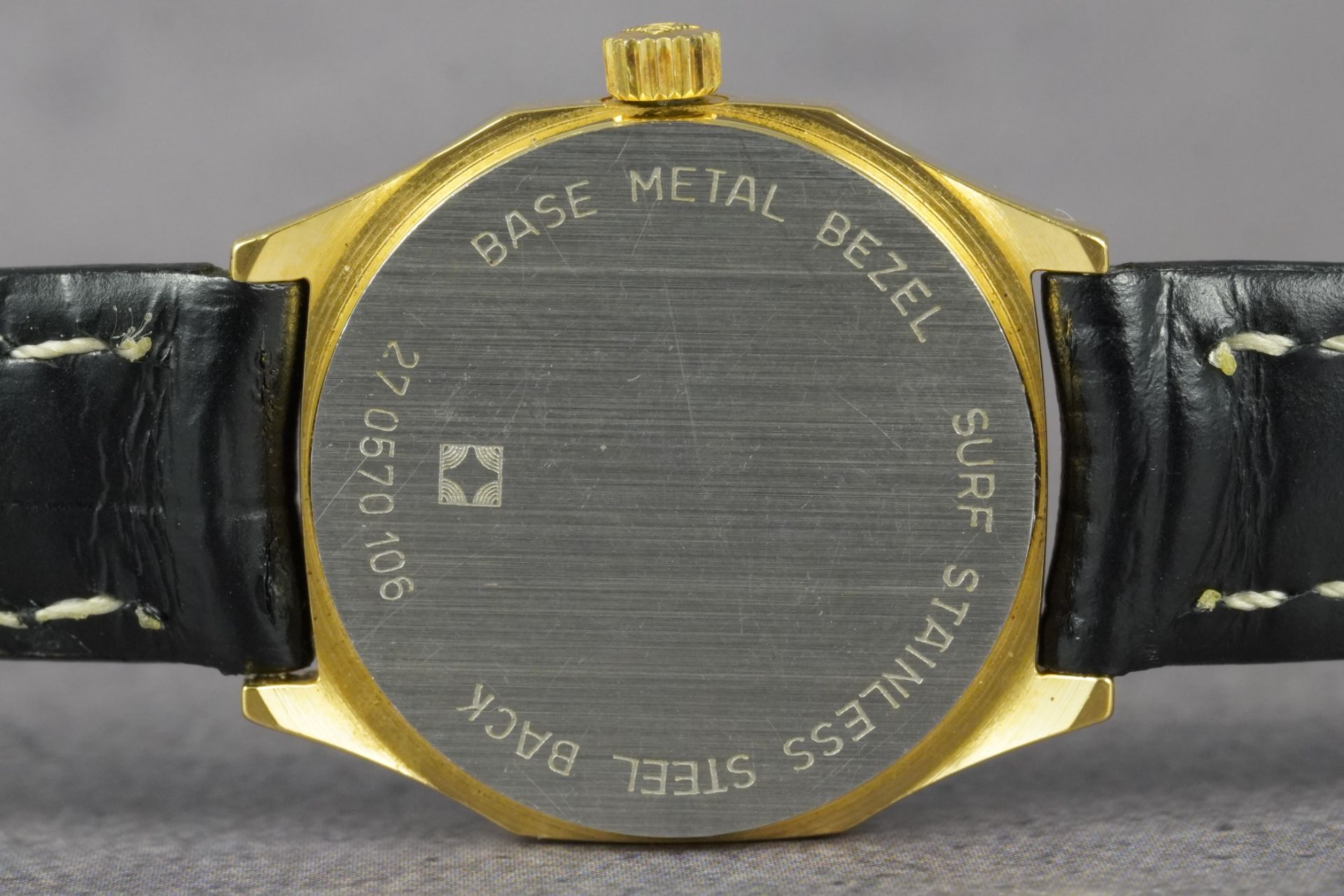 Découvrez l’élégance discrète de la Zenith Surf Quartz, référence commerciale 27.0570.106. Cette montre, référence TOT-11302, est un modèle féminin au mouvement Quartz, garantissant précision et fiabilité. Son boîtier en acier, d’un diamètre délicat de 22.4mm et d’une épaisseur de 6.3mm, témoigne d’un raffinement intemporel. Le bracelet en cuir noir, non-original, est fixé par une boucle ardillon, également non-originale. Cette pièce, présentée en bon état, est livrée seule. Elle bénéficie d’une garantie de 12 mois.