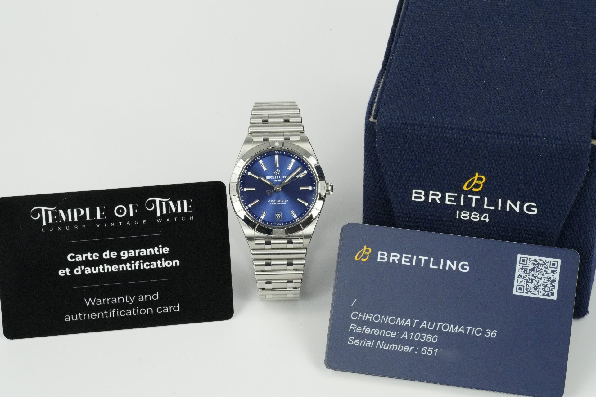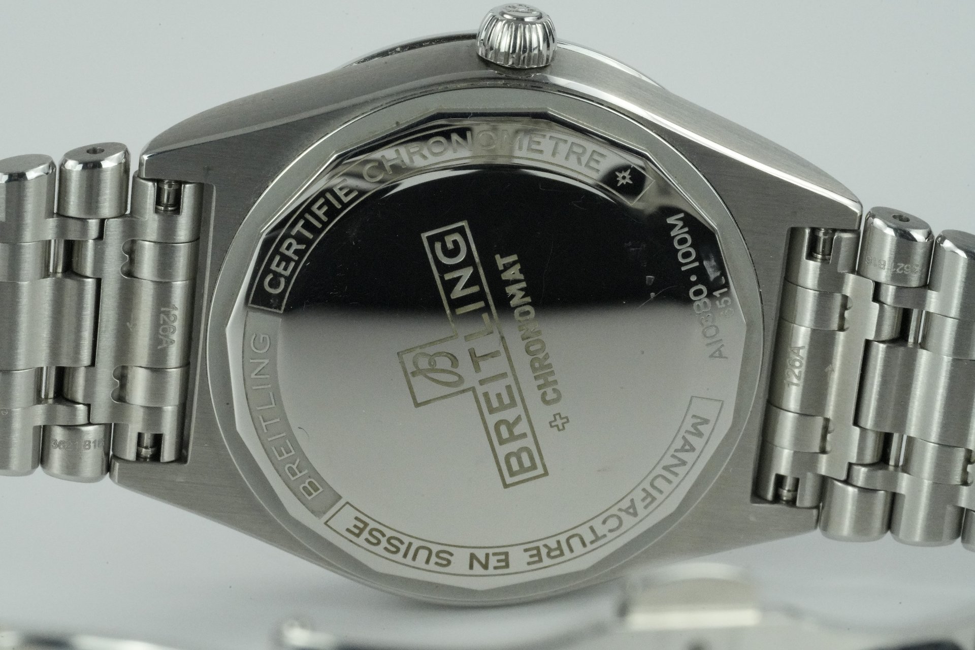 Avec une étanchéité de 10 ATM, cette Chronomat est conçue pour accompagner les esprits aventuriers au quotidien. Nous offrons une garantie de 12 mois pour cette pièce d’exception.
