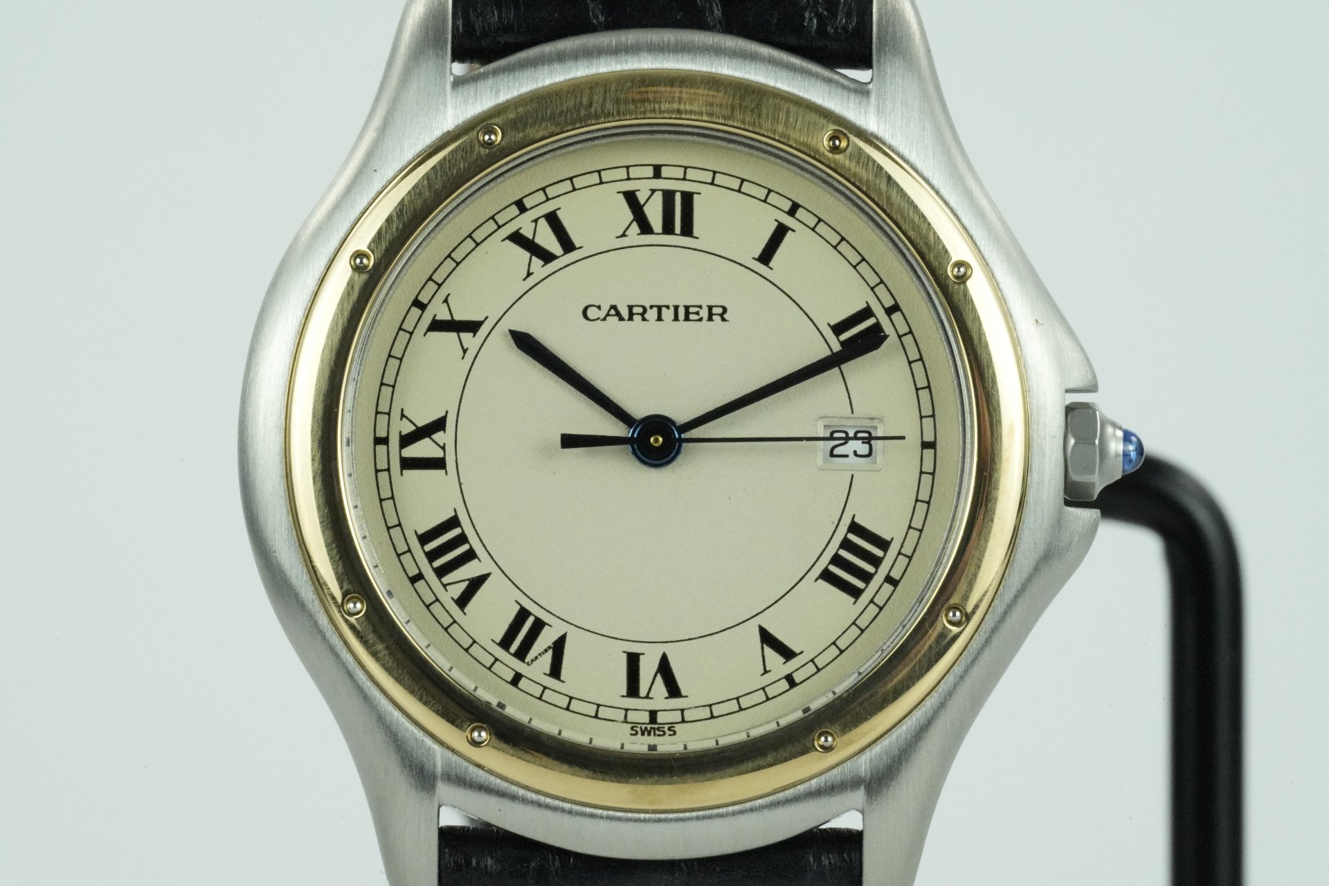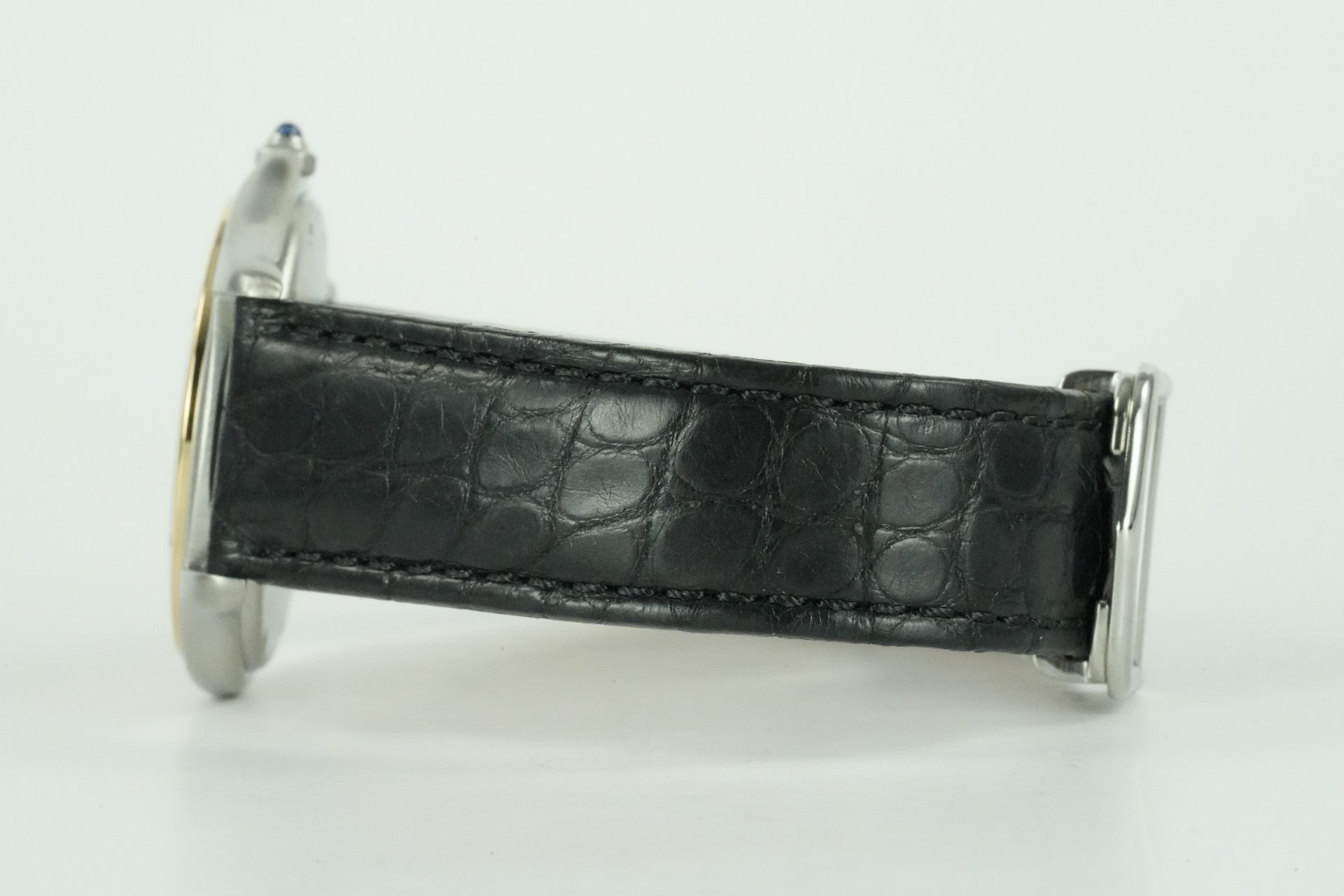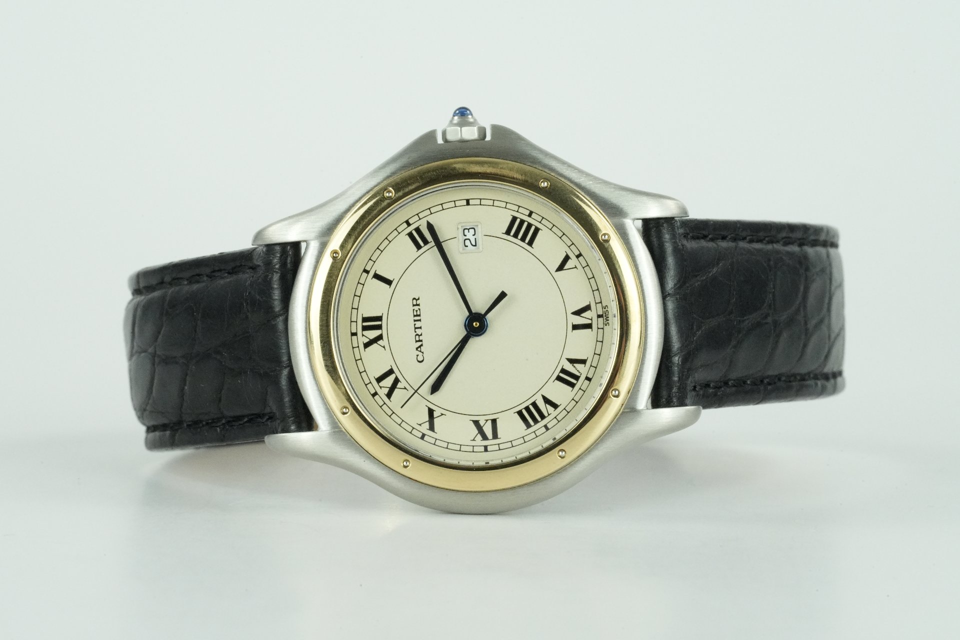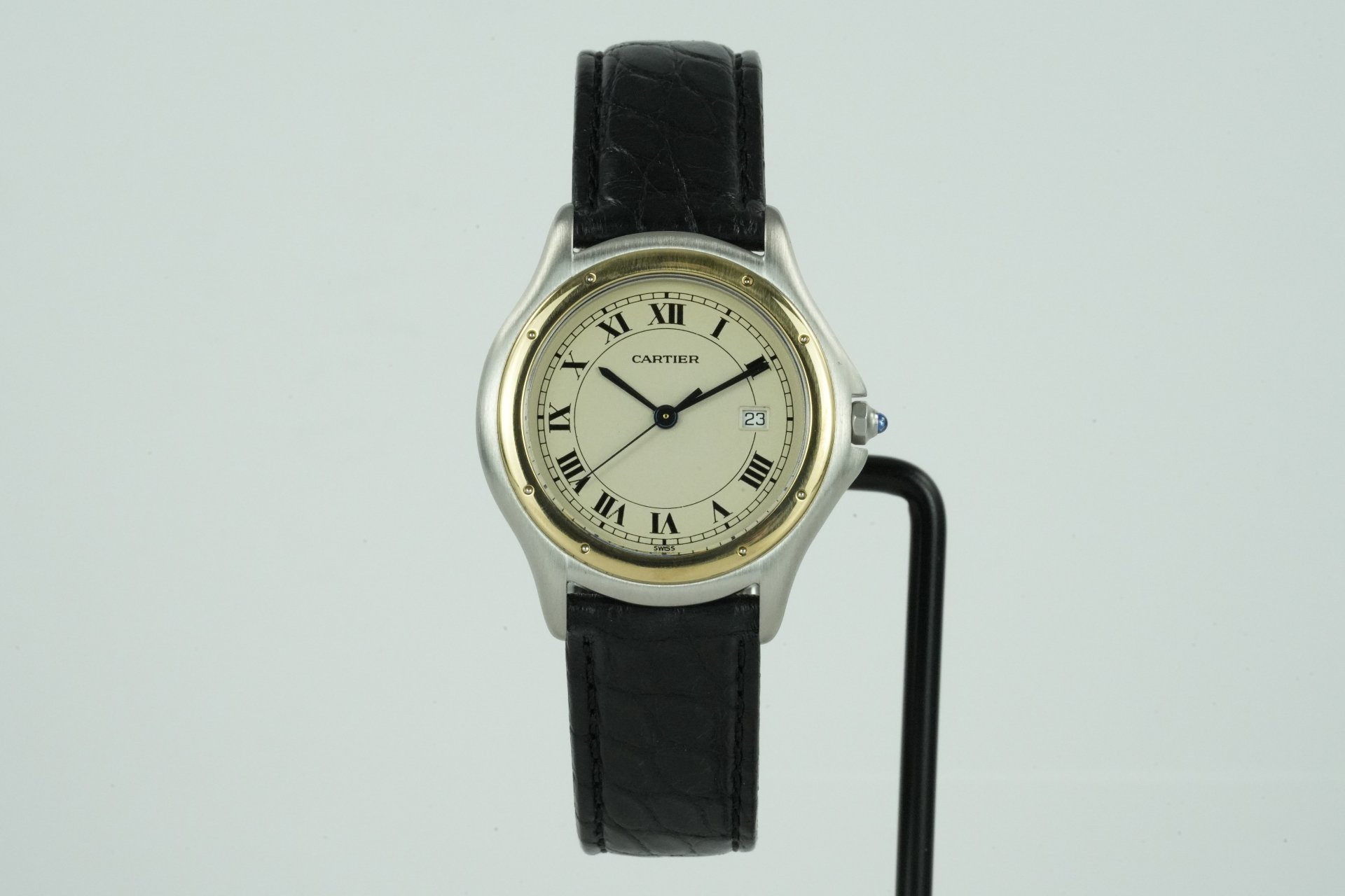 Découvrez l’élégance audacieuse de la Cartier Cougar Panthère, référence TOT-01804. Ce modèle unisexe, référence commerciale 187904, incarne le raffinement intemporel de la maison Cartier. Son boîtier distinctif, combinant l’or et l’acier avec un diamètre de 32 mm et une épaisseur de 6.7 mm, offre une présence subtile et sophistiquée. Animée par un mouvement à Quartz précis, cette montre est présentée dans un très bon état général. Le bracelet en cuir noir, bien que non original, complète harmonieusement l’esthétique, tandis que sa boucle à plis d’origine assure une touche d’authenticité. La montre seule sera livrée, accompagnée d’une garantie de 12 mois.