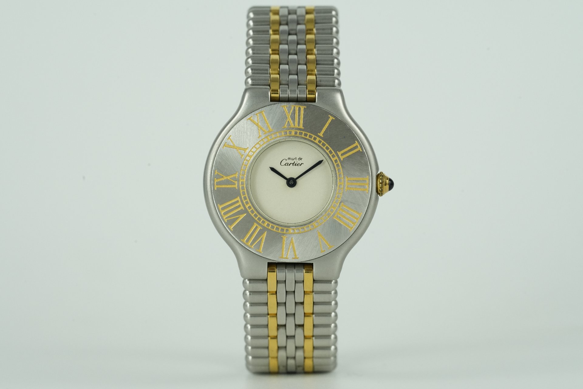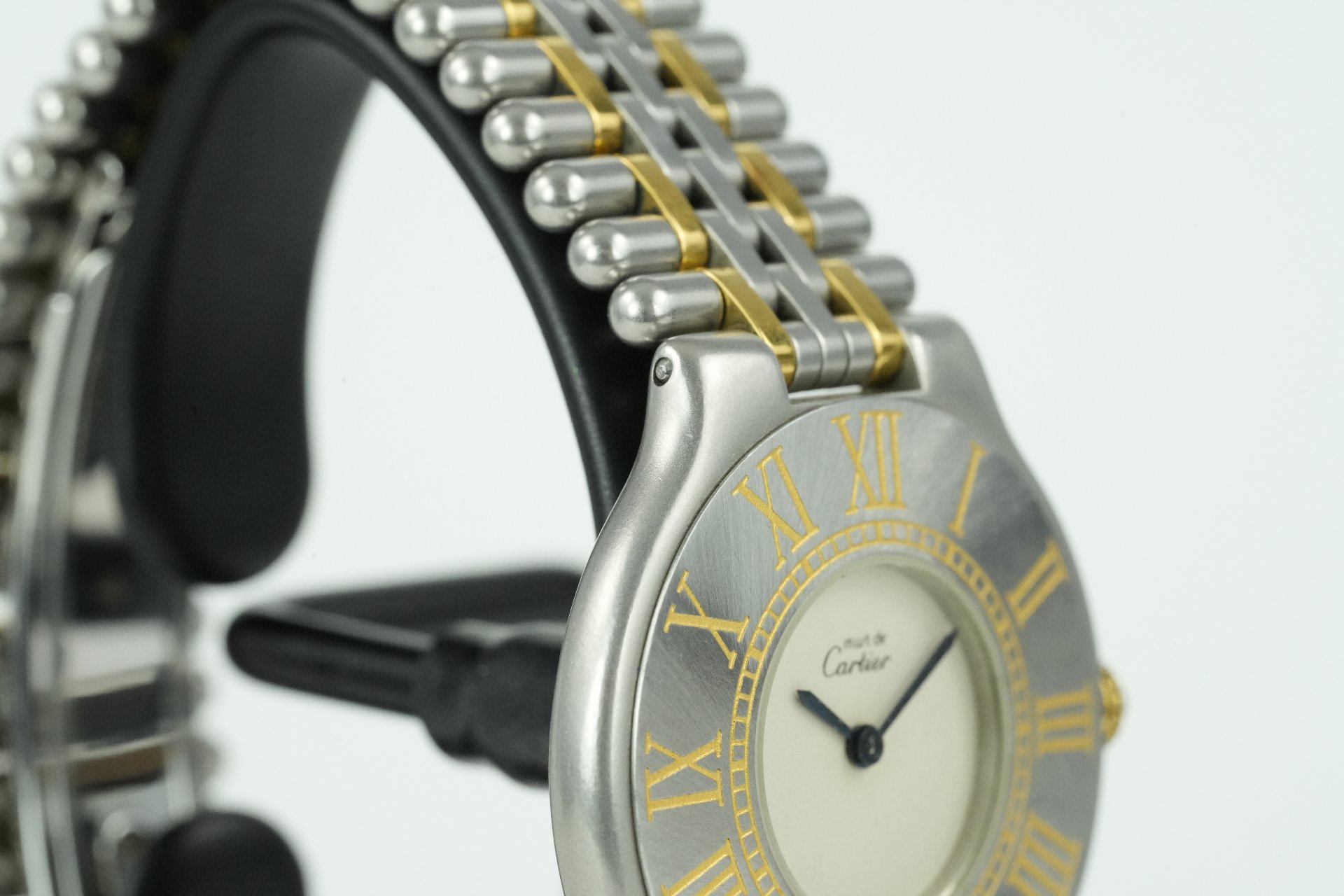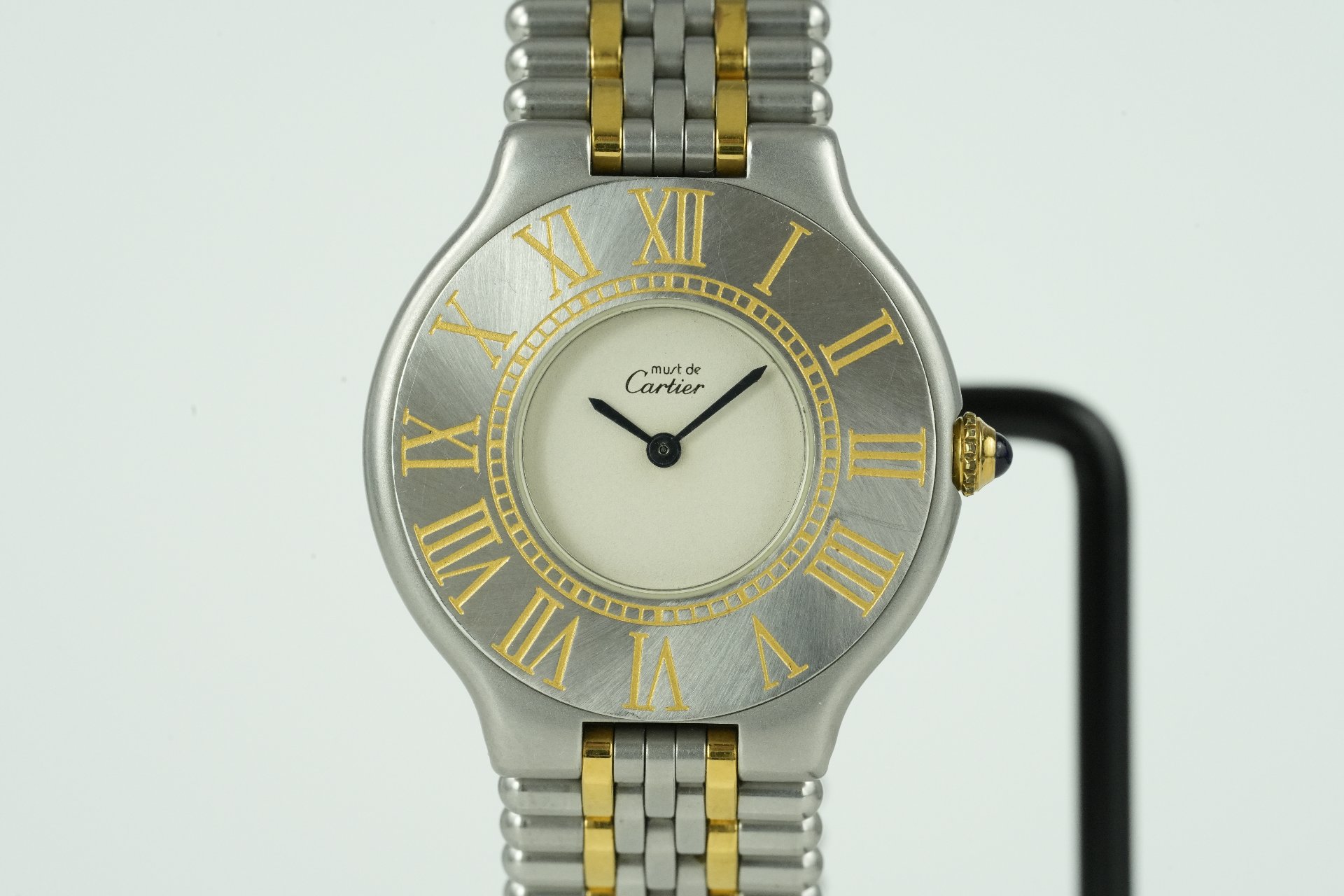 Découvrez l’élégance intemporelle avec cette montre Cartier Must De 21, référence commerciale 9010, un modèle dédié à la femme moderne. Son boîtier raffiné de 30.9mm en or et acier, avec une fine épaisseur de 5.2mm, abrite un mouvement Quartz précis. Le bracelet assorti en or et acier, original Cartier, assure un confort et un style inégalés, complété par une boucle déployante double plis également originale. Cette pièce, présentée en très bon état, est livrée seule. Elle bénéficie d’une garantie de 12 mois, gage de tranquillité.