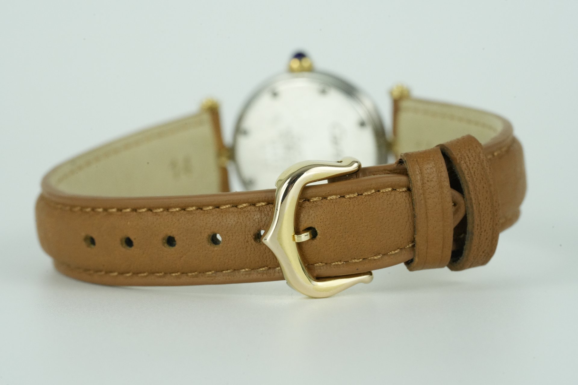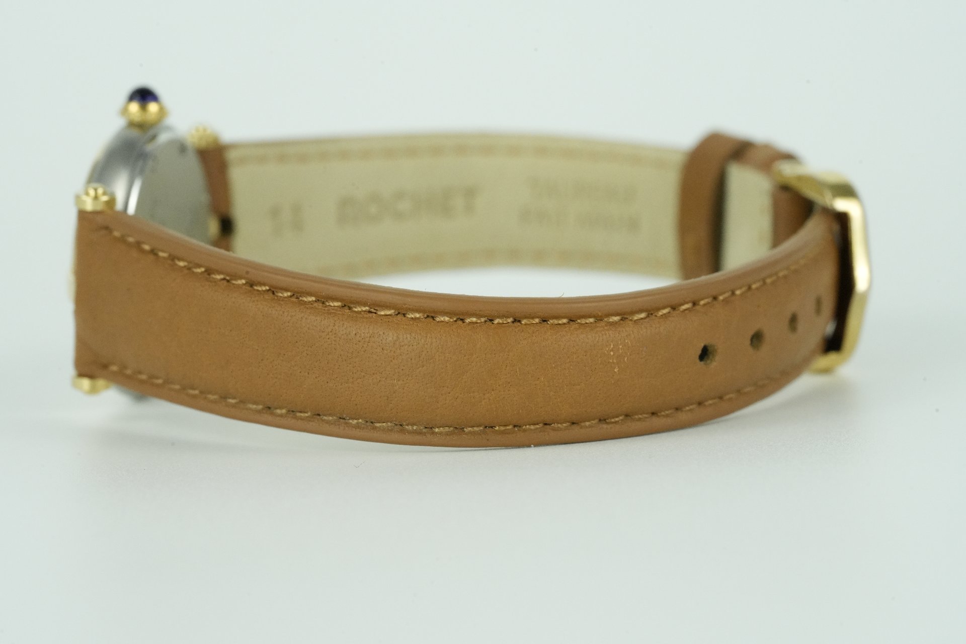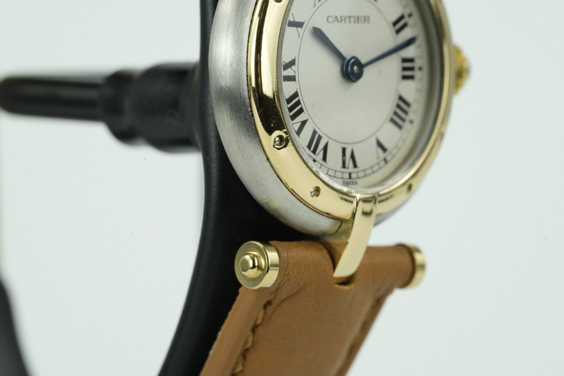 Élégance intemporelle pour cette Cartier Panthère, référence commerciale 84084242. Destinée aux poignets féminins, elle est animée par un mouvement Quartz d’une fiabilité éprouvée. Son boîtier en Or et Acier de 23.6mm de diamètre et 5.5mm d’épaisseur abrite un cadran raffiné. Le bracelet en cuir noir, élégamment rehaussé d’une boucle ardillon originale, souligne le caractère distinctif de ce modèle. Cette pièce en très bon état est livrée seule et est couverte par une garantie de 12 mois.