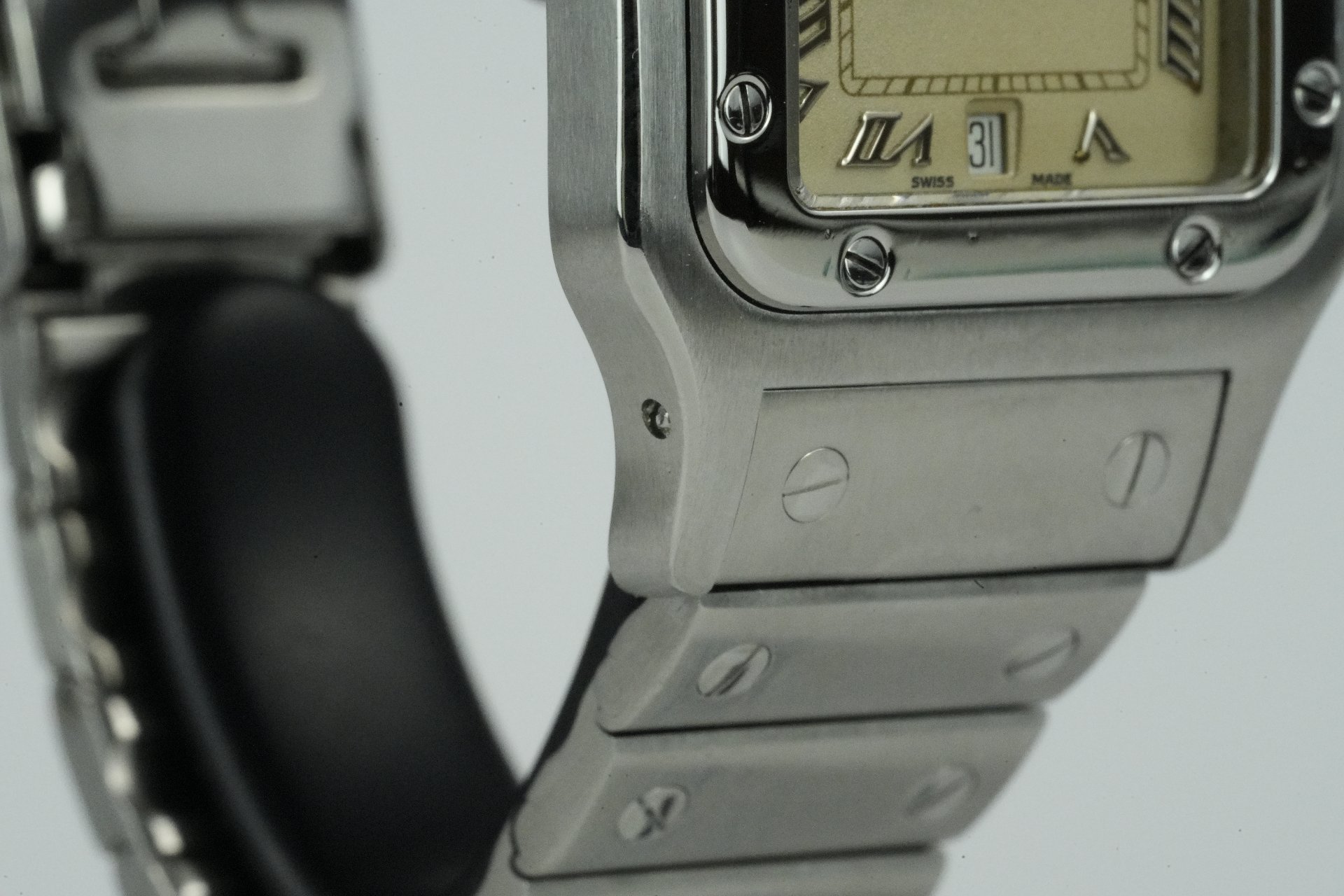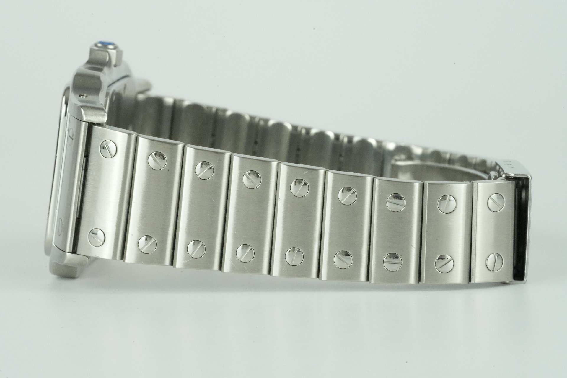 Plongez dans l’élégance intemporelle avec cette montre Cartier Santos Galbée, référence commerciale 1564, datant de 1996. Cette pièce unisexe, arborant la référence TOT-01715, incarne la sophistication discrète qui a fait la renommée de la Maison Cartier. Son mouvement Quartz logé dans un boîtier en acier de 29mm de diamètre et 6.9mm d’épaisseur assure une précision sans faille. Le bracelet d’origine en acier, complété par une boucle déployante également d’origine, souligne l’authenticité de cette montre. Avec une étanchéité de 3 ATM, elle allie fonctionnalité et esthétique. Livrée complète et en très bon état, cette montre est accompagnée d’une garantie de 12 mois, vous offrant une tranquillité d’esprit pour cette acquisition d’exception.