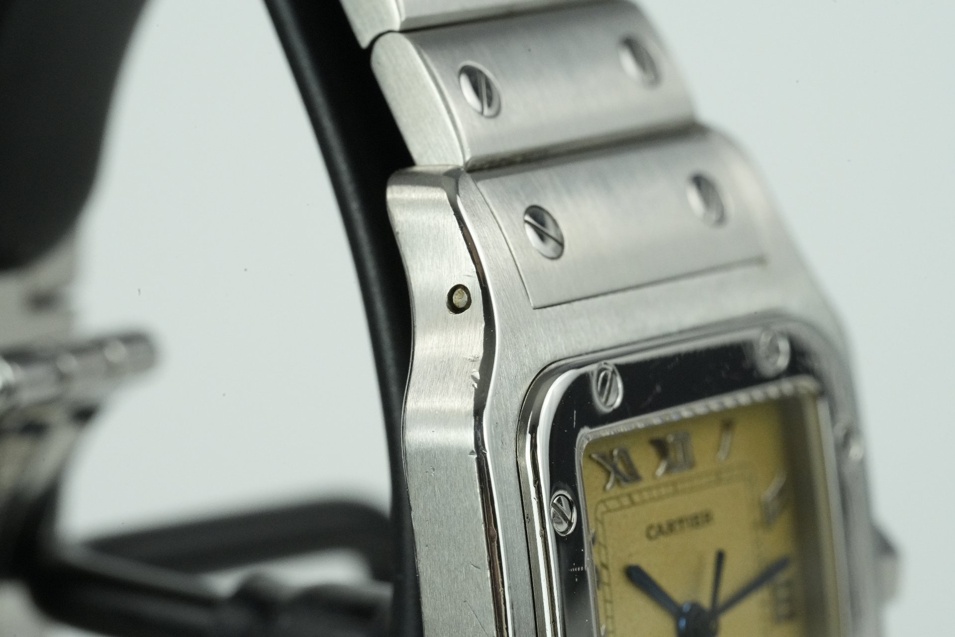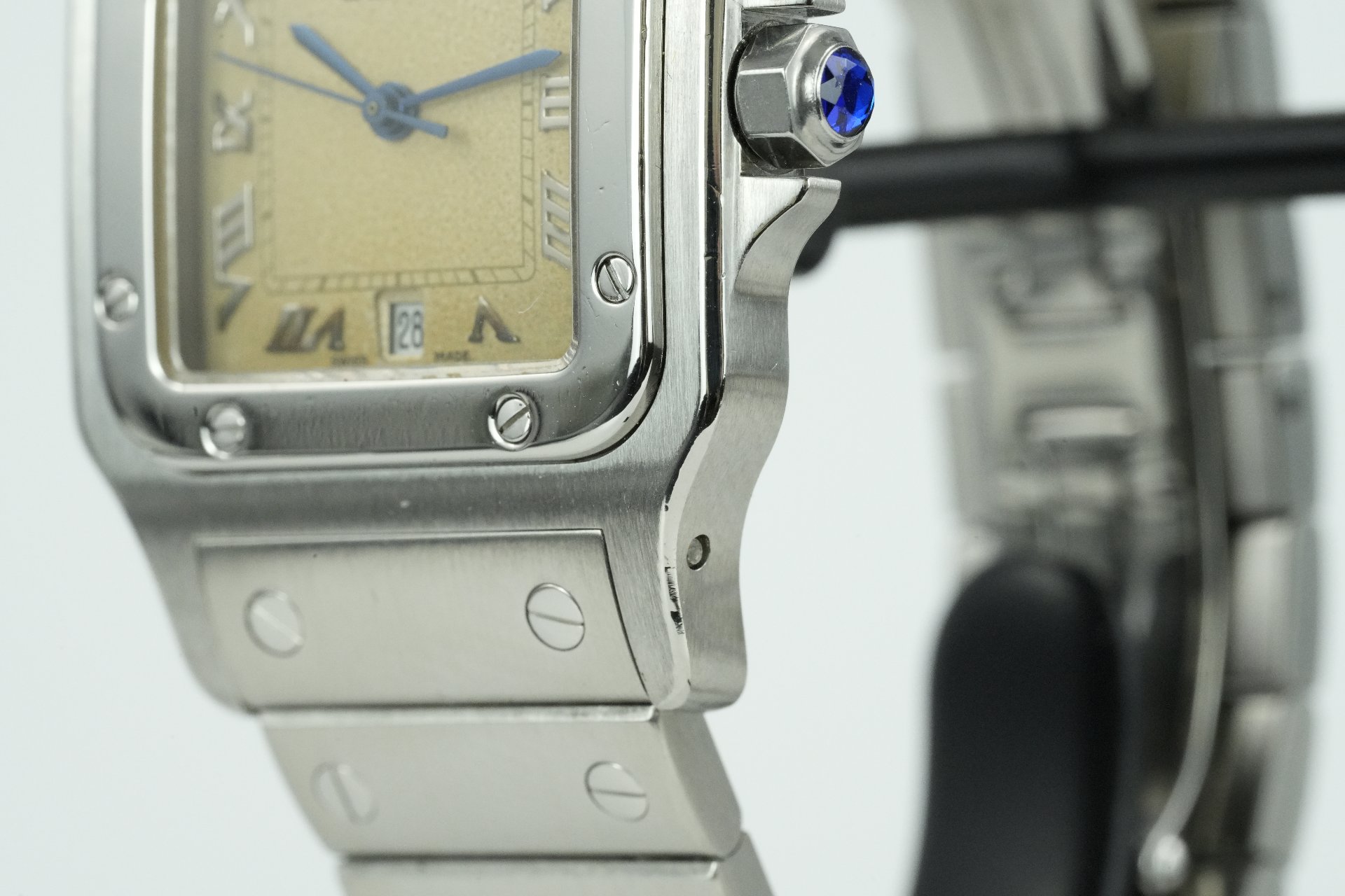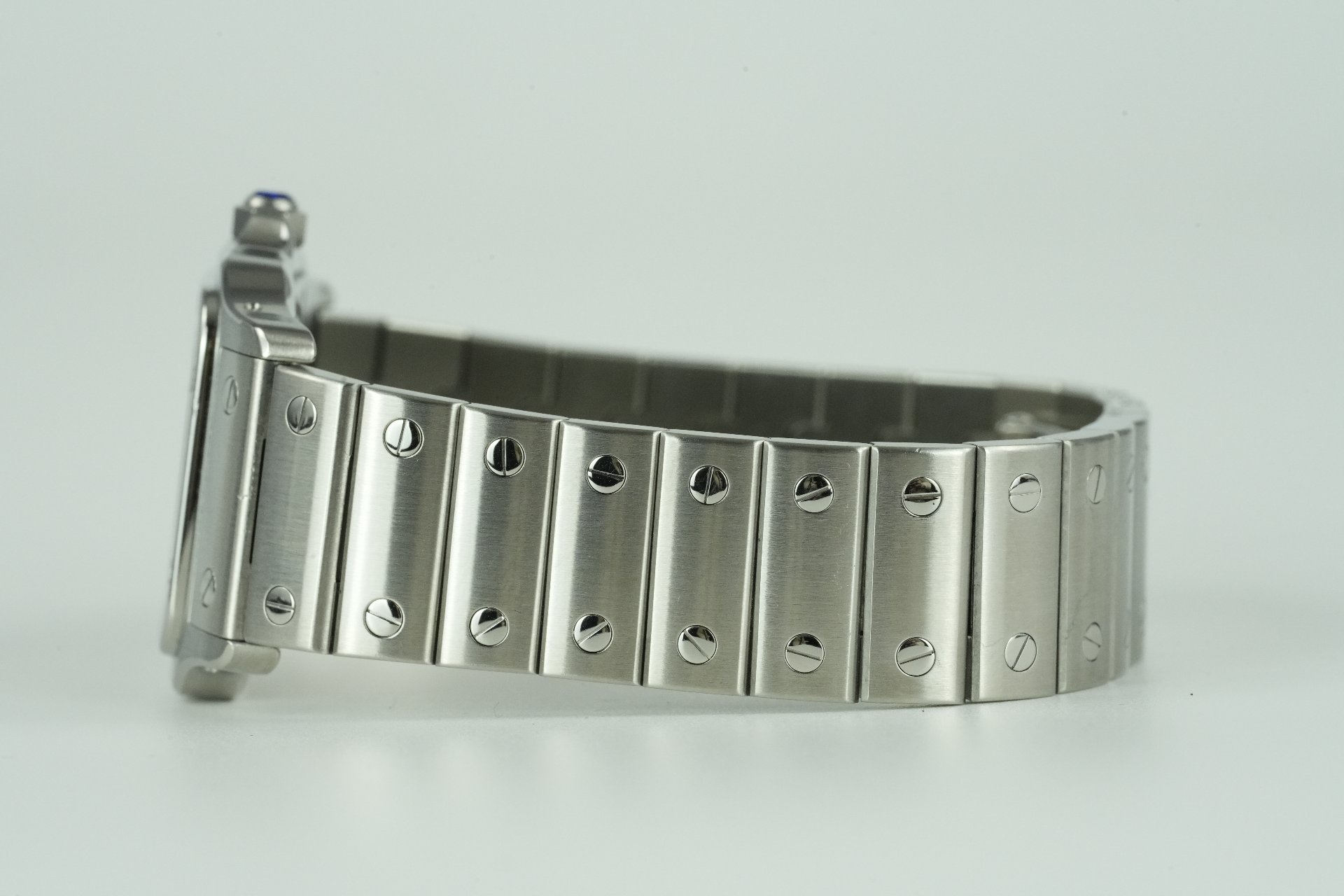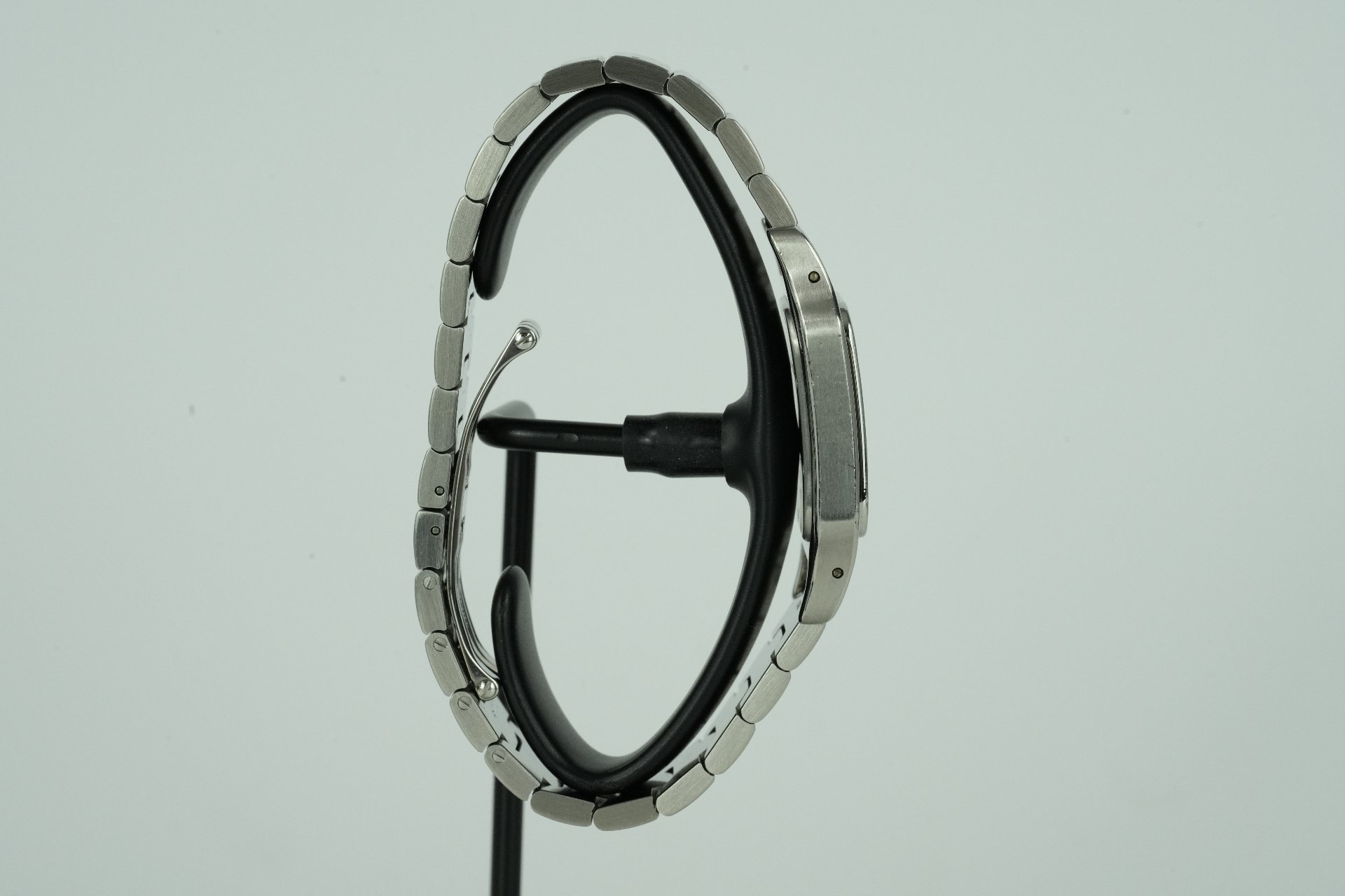 Découvrez l’élégance intemporelle avec cette montre Cartier Santos Galbée, référence commerciale 987901. Ce modèle unisexe, d’une grande finesse, est animé par un mouvement Quartz, garantissant une précision irréprochable. Son boîtier en acier de 29mm de diamètre et 6.3mm d’épaisseur abrite un cadran épuré. Le bracelet d’origine en acier, assorti à une boucle déployante double plis également originale, confère à cette pièce une allure des plus distinguées. Présentée en très bon état, cette Santos Galbée est fournie avec une garantie de 12 mois, soulignant la confiance en sa qualité. Référence TOT-01645.