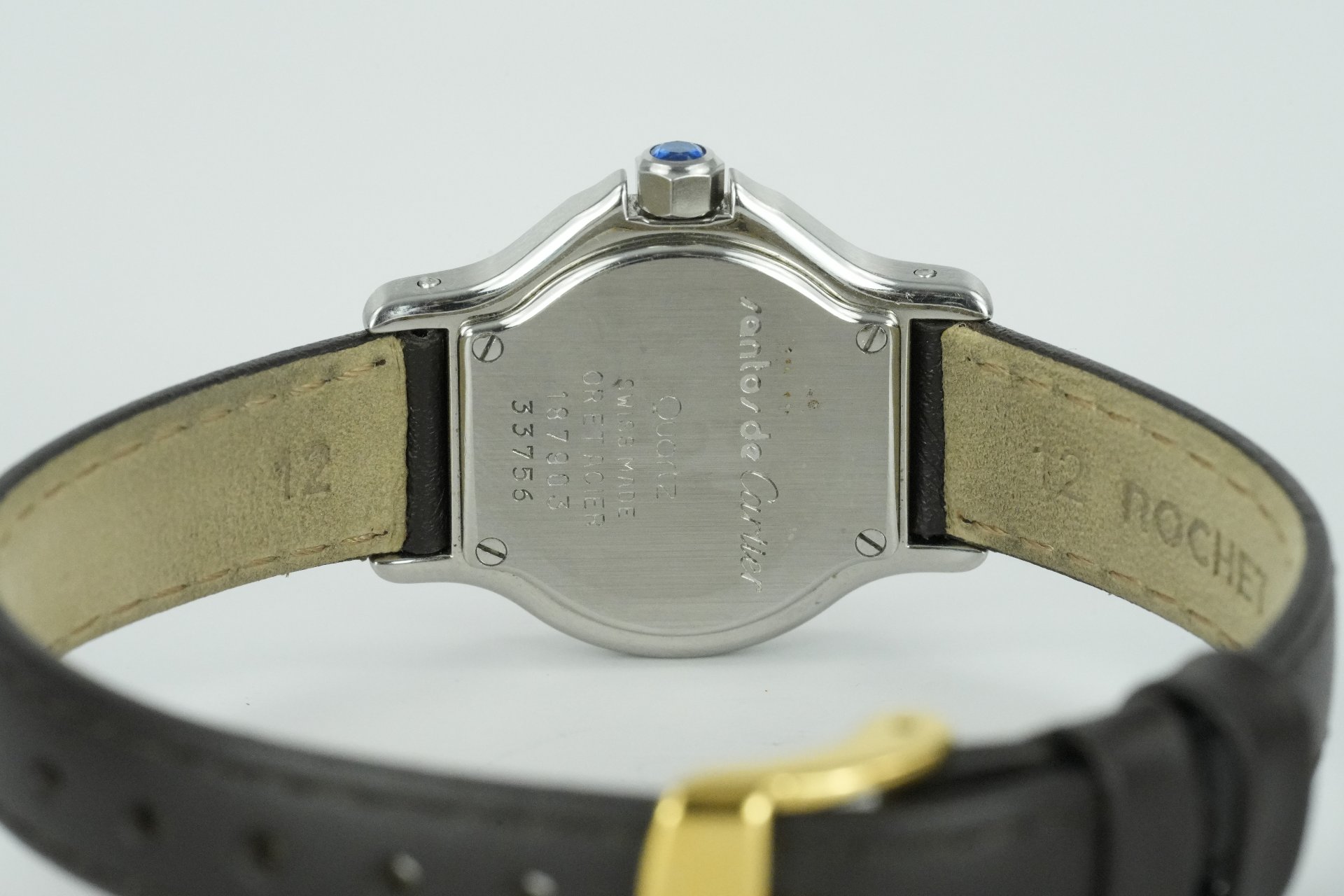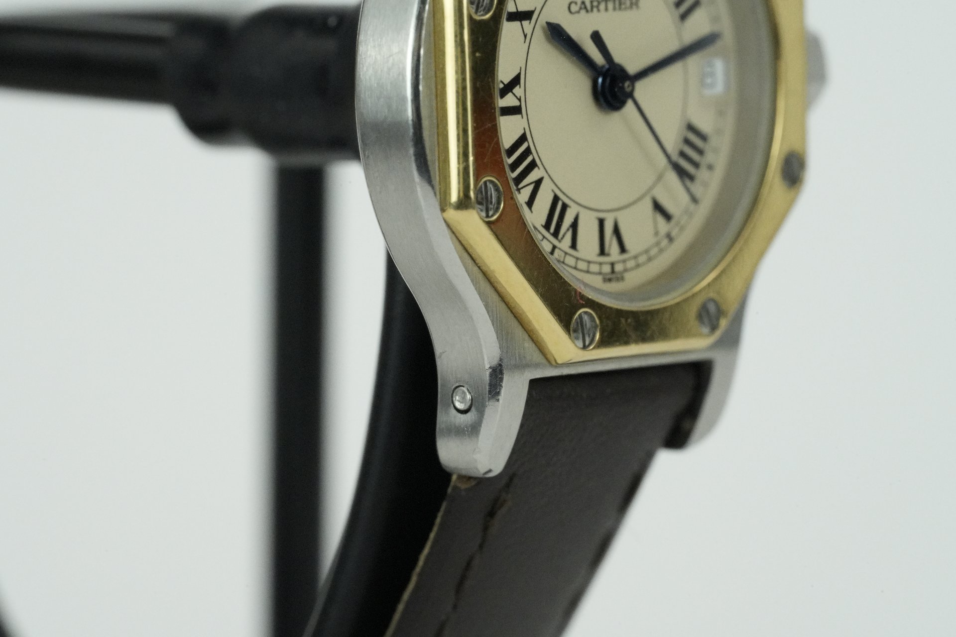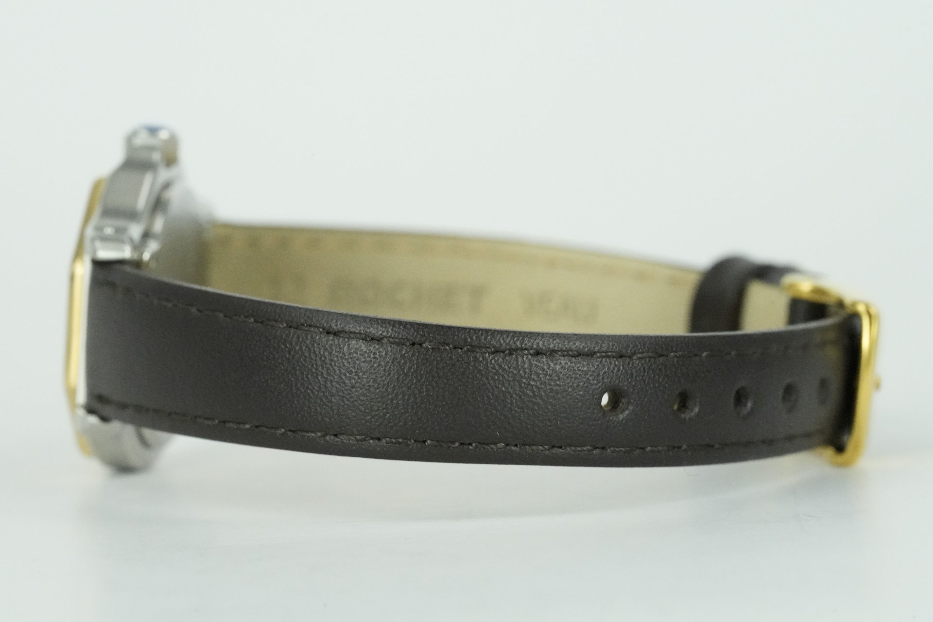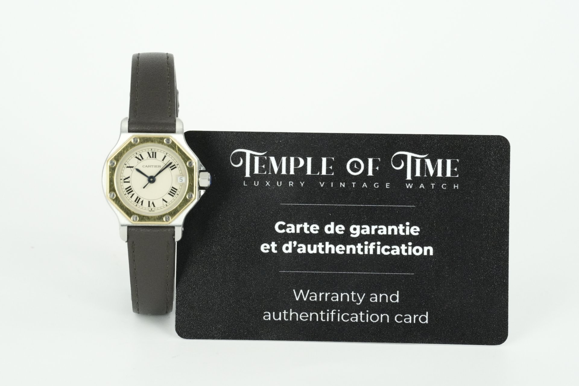 Découvrez la Cartier Santos Octogonale, référence commerciale 187903, une montre qui allie avec raffinement l’élégance classique et une esthétique distinctive. Conçue pour la femme exigeante, cette pièce iconique présente un boîtier octogonal de 25mm en or et acier, avec une fine épaisseur de 6.5mm, soulignant son profil délicat. Animée par un mouvement Quartz, elle assure une précision remarquable au quotidien. Le bracelet en cuir brun non-original, agrémenté d’une boucle ardillon non-originale, confère à cette montre un charme intemporel. Livrée seule, cette Cartier Santos Octogonale est proposée en bon état et bénéficie d’une garantie de 12 mois.