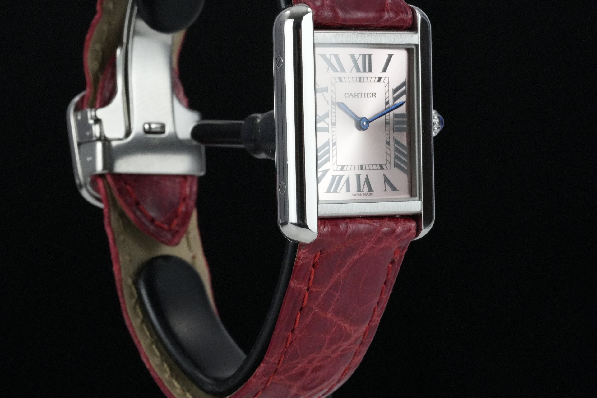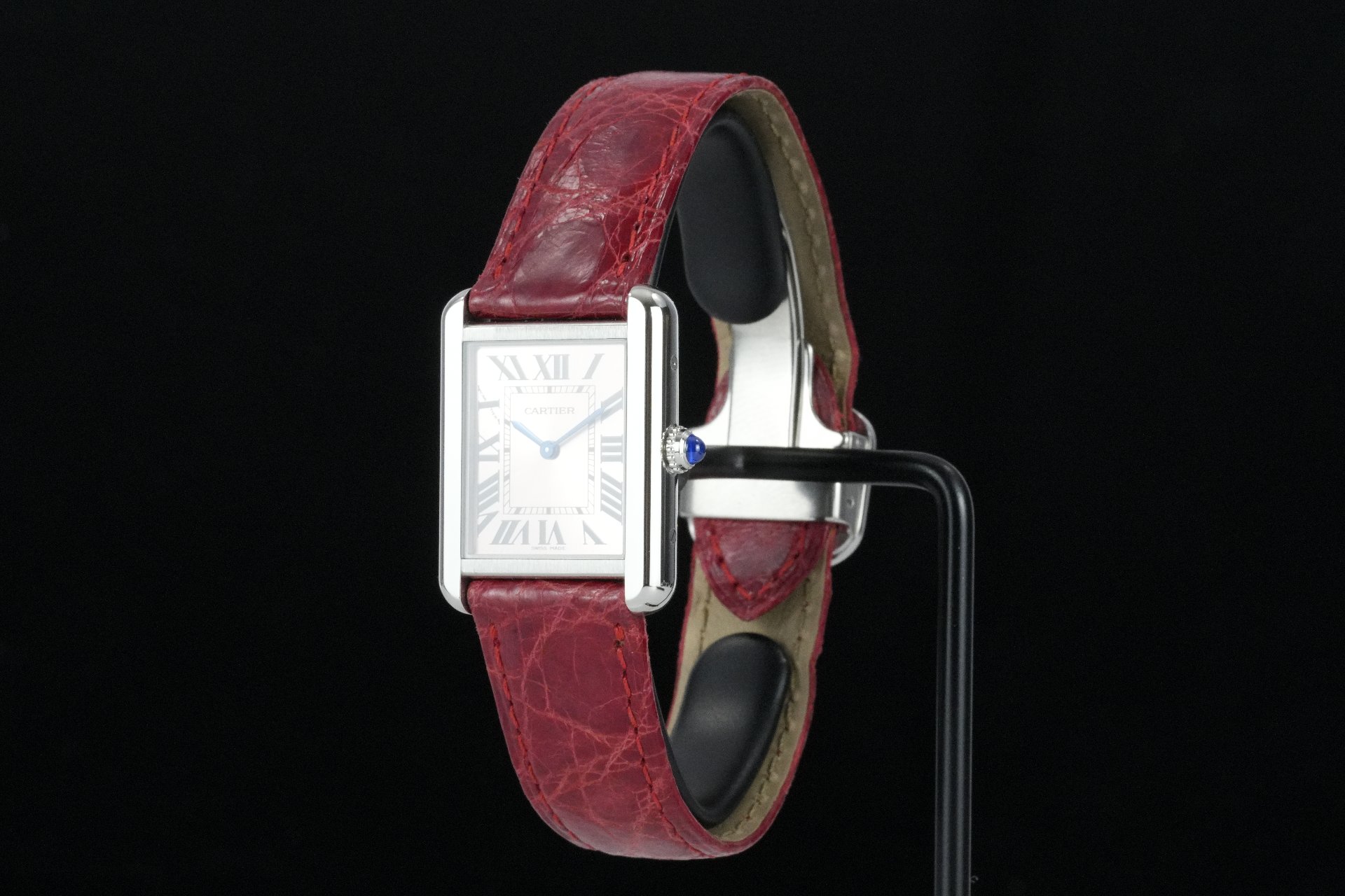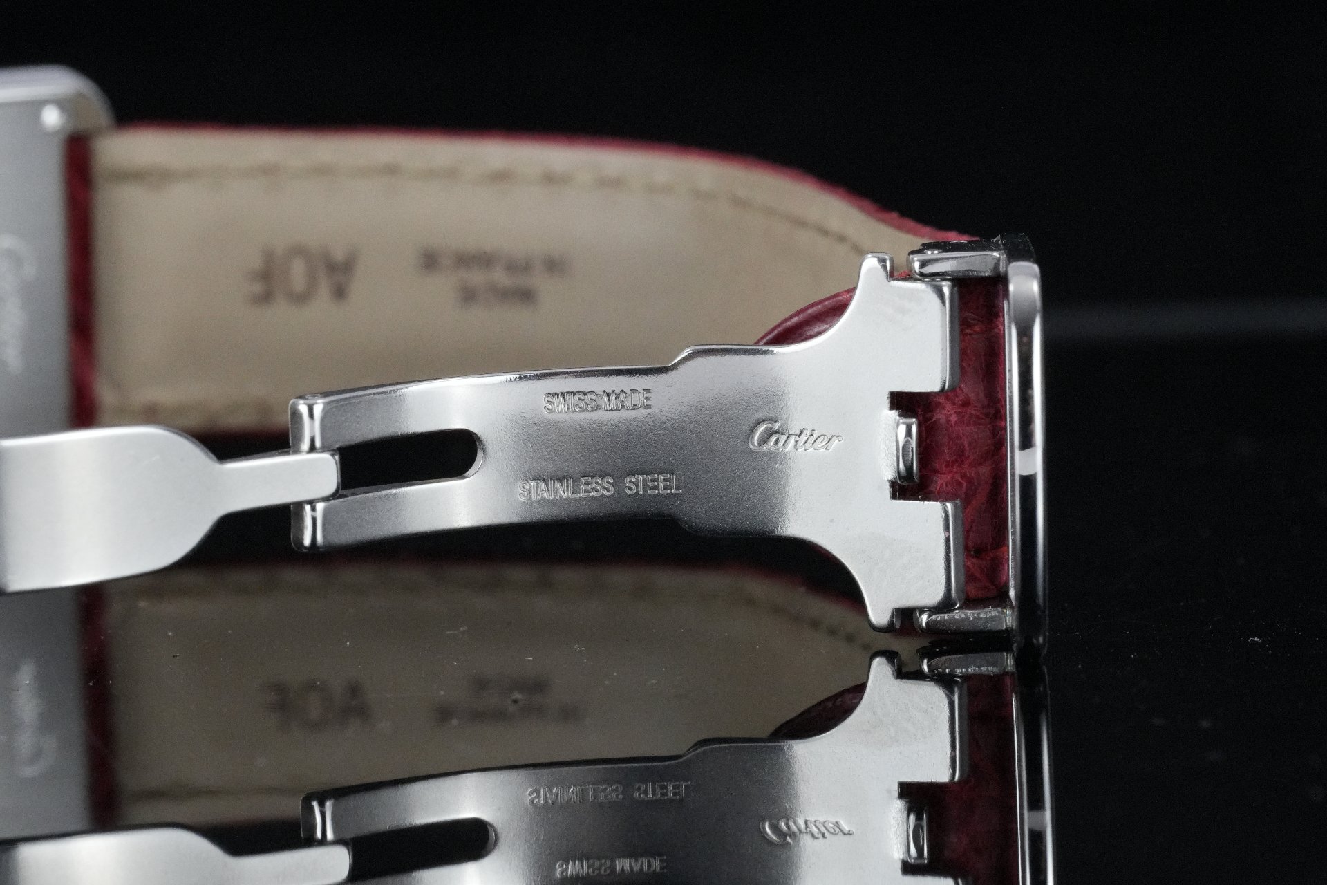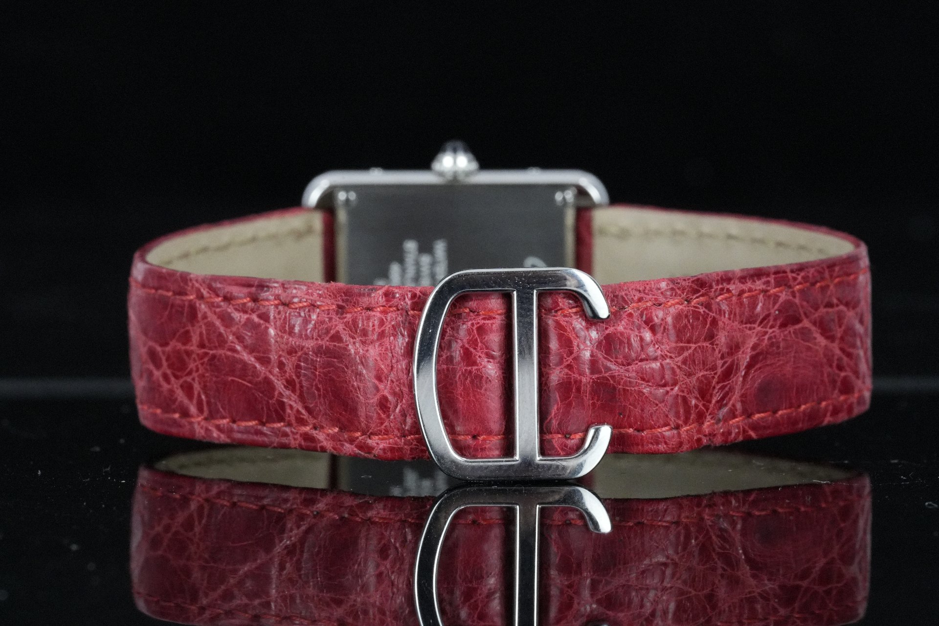 Découvrez l’élégance intemporelle de la Cartier Tank Solo, référence commerciale 3170 (TOT-01803). Cette montre femme, au design raffiné, est animée par un mouvement à Quartz précis. Son boîtier en acier de 24x31mm de diamètre et 5.5mm d’épaisseur abrite un cadran épuré. Elle est sublimée par son bracelet en cuir rouge original et sa boucle déployante d’origine. Étanche jusqu’à 3 ATM, cette pièce est livrée seule. En très bon état, elle est accompagnée d’une garantie de 12 mois.
