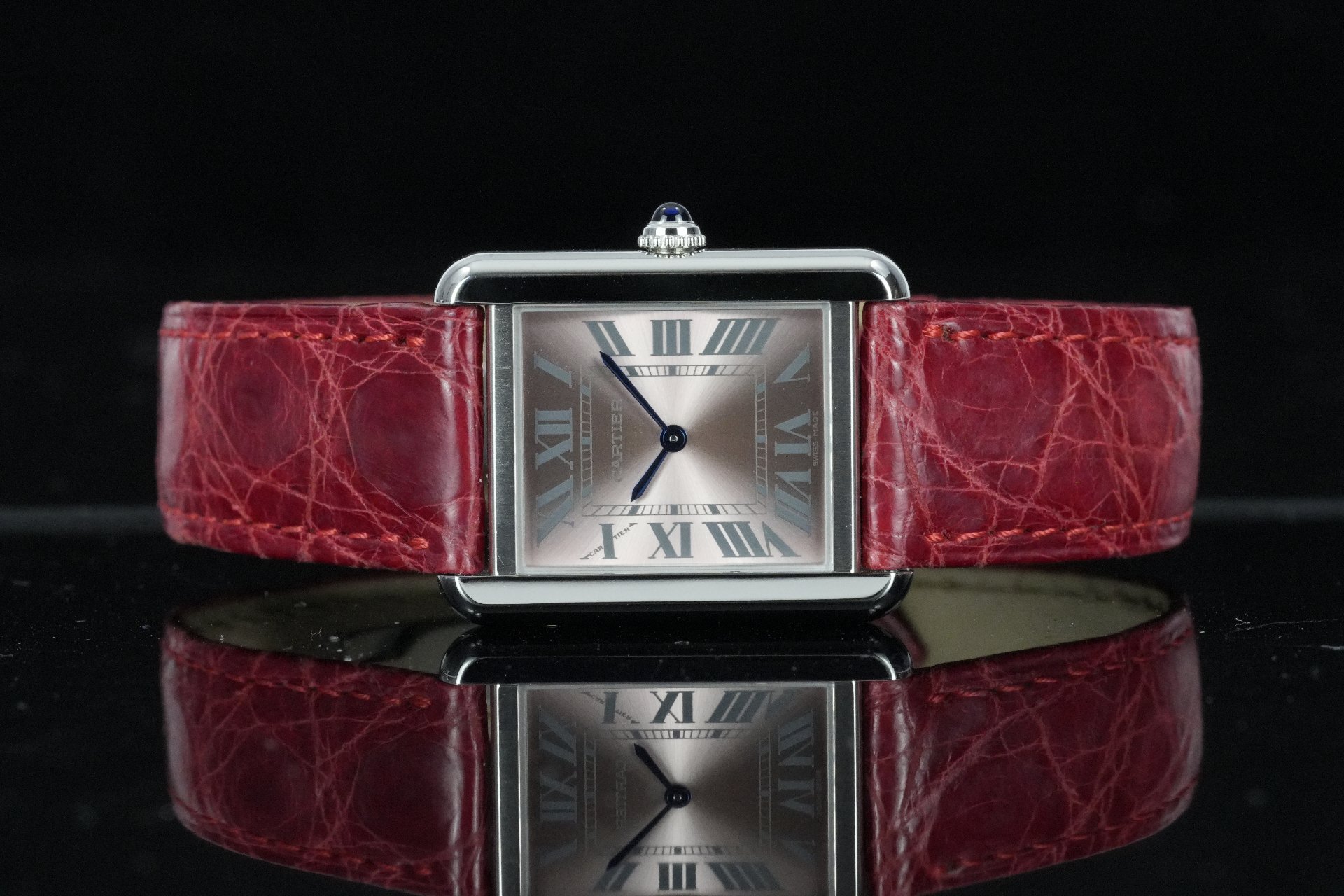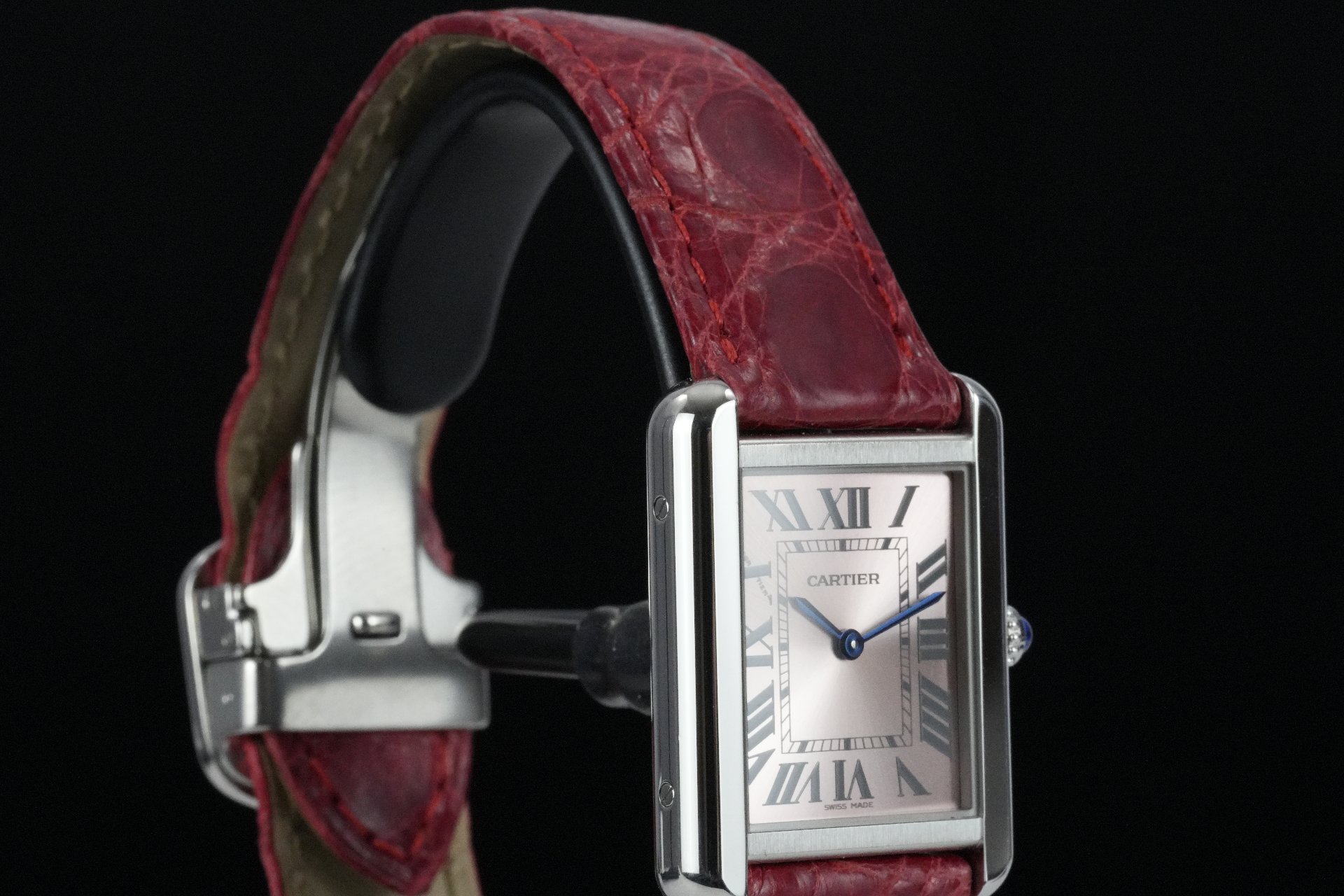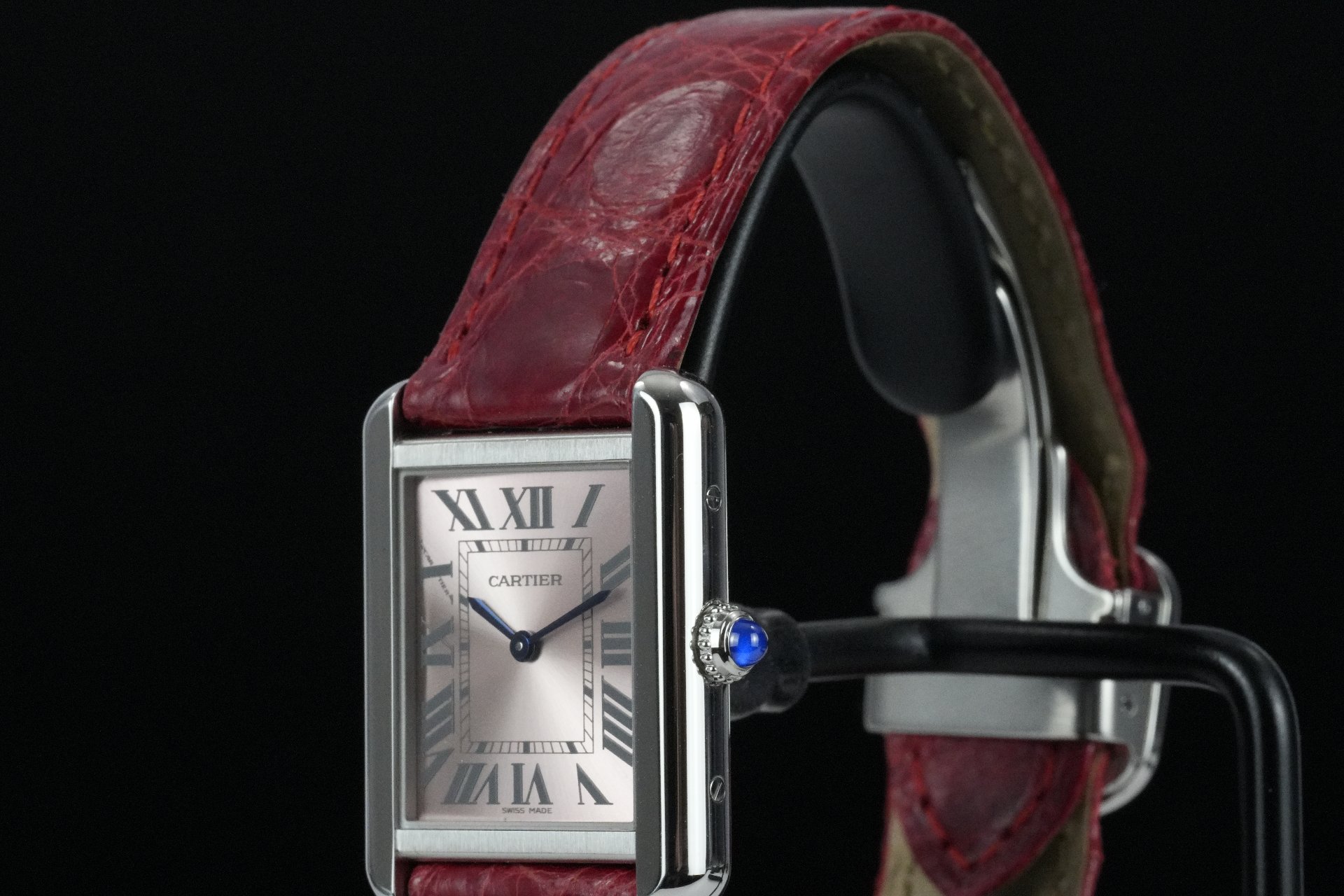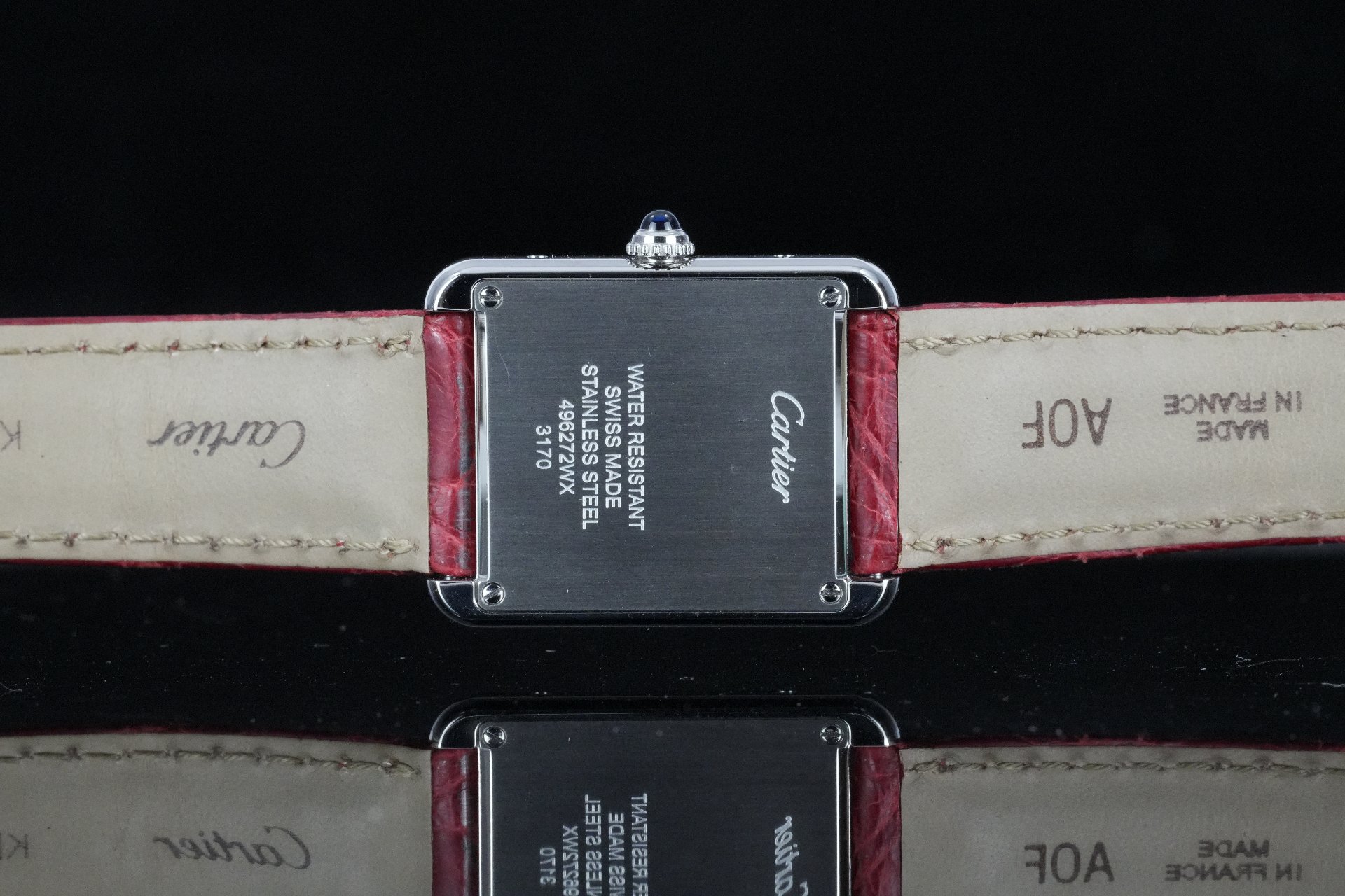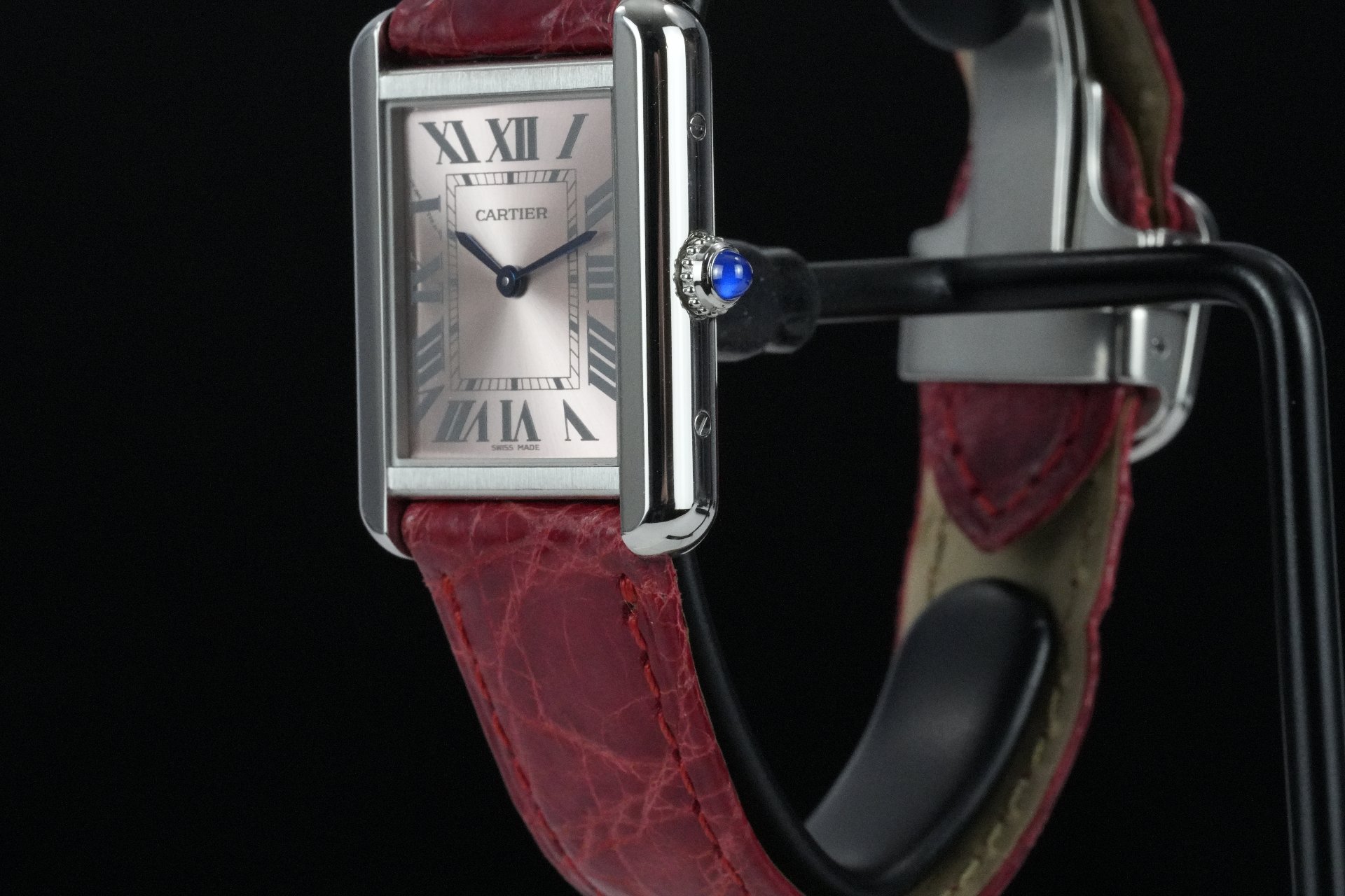 Découvrez l’élégance intemporelle de la Cartier Tank Solo, référence commerciale 3170 (TOT-01803). Cette montre femme, au design raffiné, est animée par un mouvement à Quartz précis. Son boîtier en acier de 24x31mm de diamètre et 5.5mm d’épaisseur abrite un cadran épuré. Elle est sublimée par son bracelet en cuir rouge original et sa boucle déployante d’origine. Étanche jusqu’à 3 ATM, cette pièce est livrée seule. En très bon état, elle est accompagnée d’une garantie de 12 mois.
