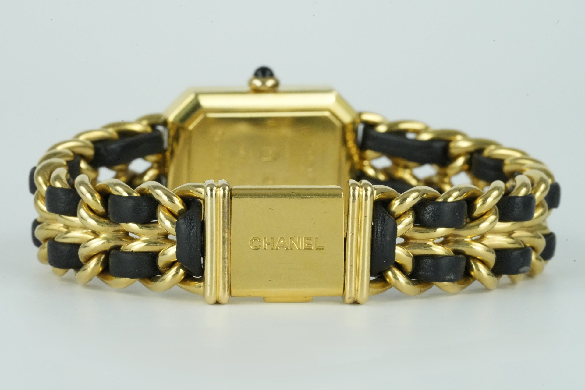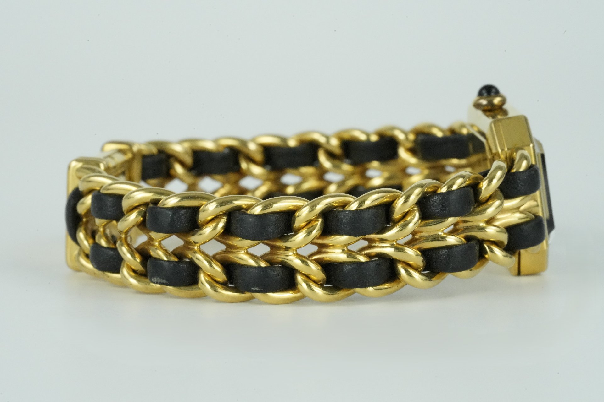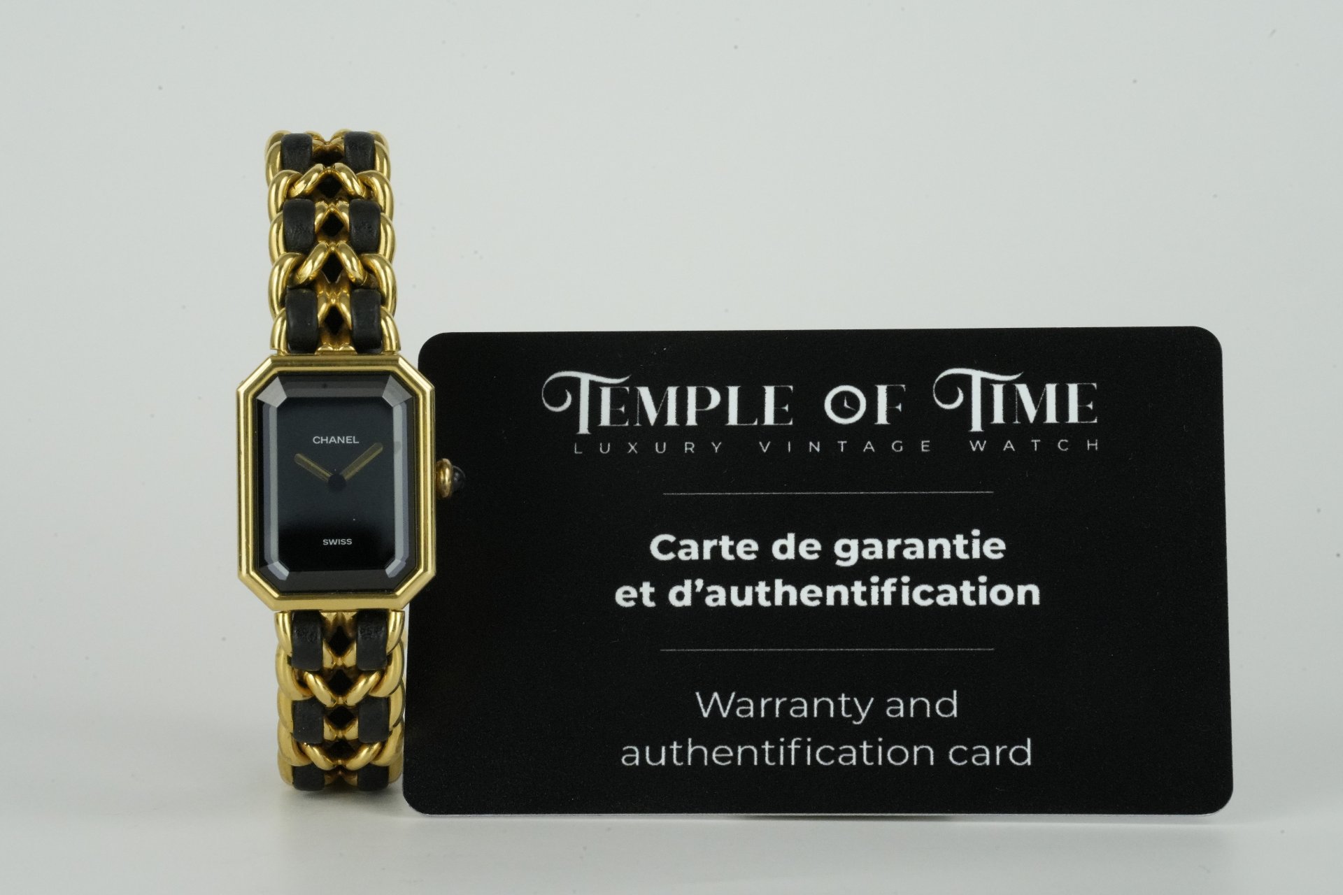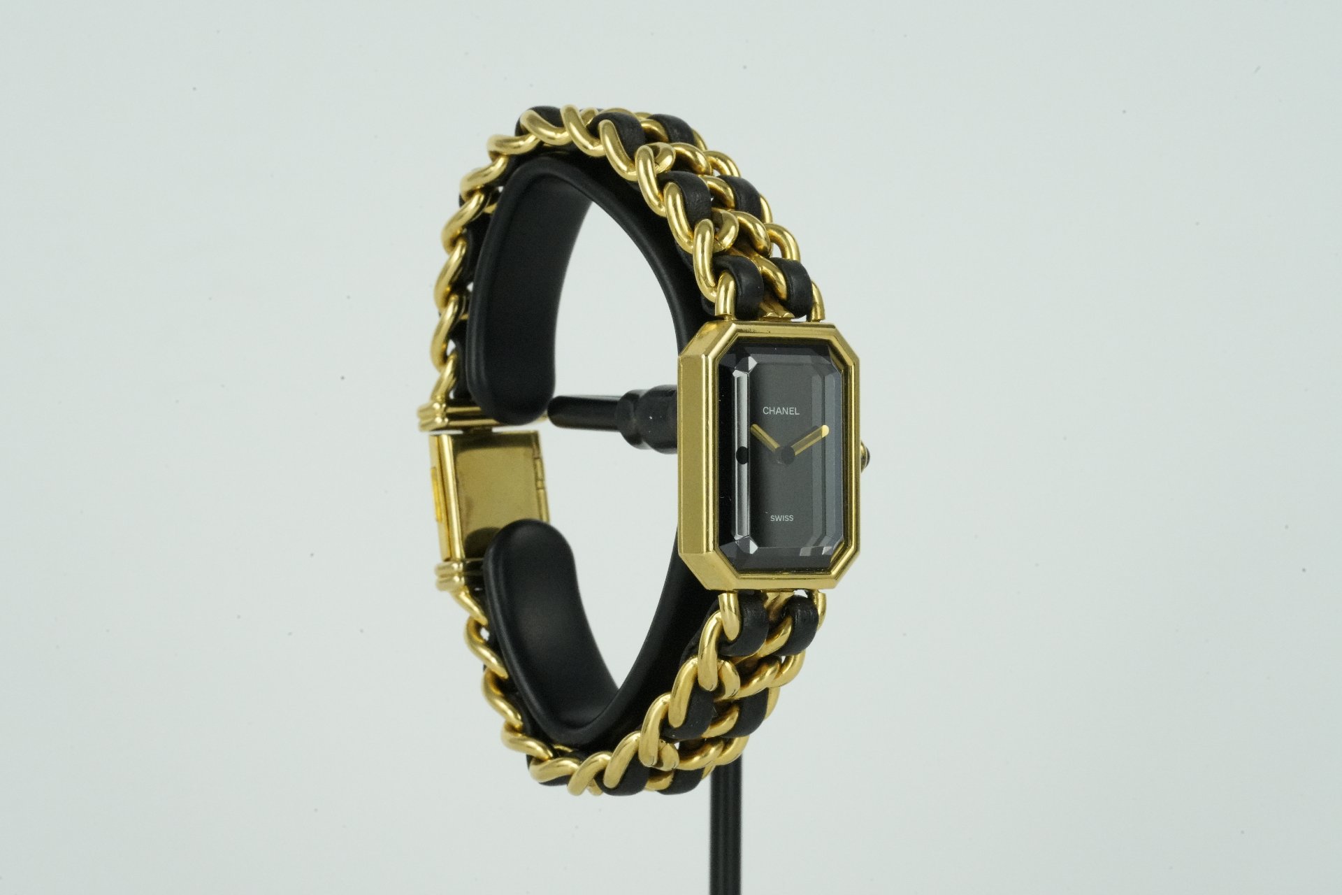 Le bracelet original en acier couleur or, magnifiquement mis en valeur par un fermoir bijoux original, assure un confort et un style distinctifs. Ce modèle est livré seul et bénéficie d’une garantie de 12 mois. La Chanel Première, en bon état, est un témoignage du savoir-faire horloger de la Maison Chanel, parfaite pour sublimer chaque poignet.