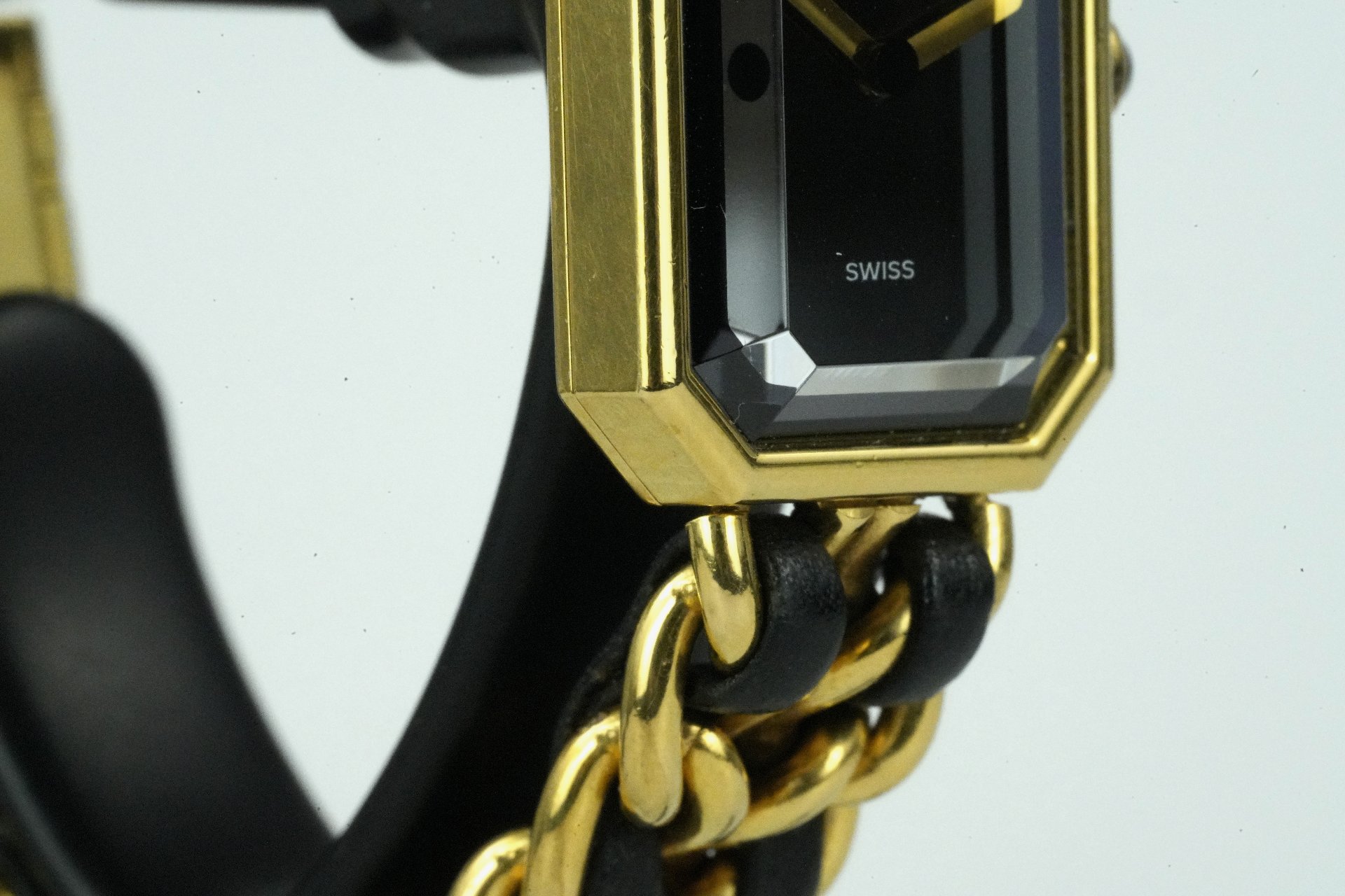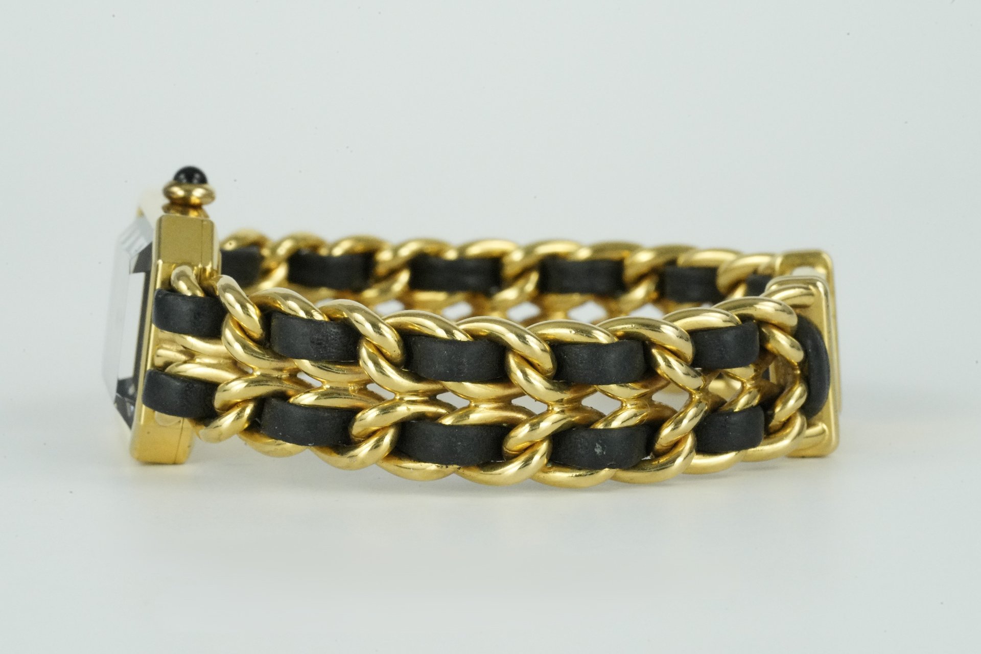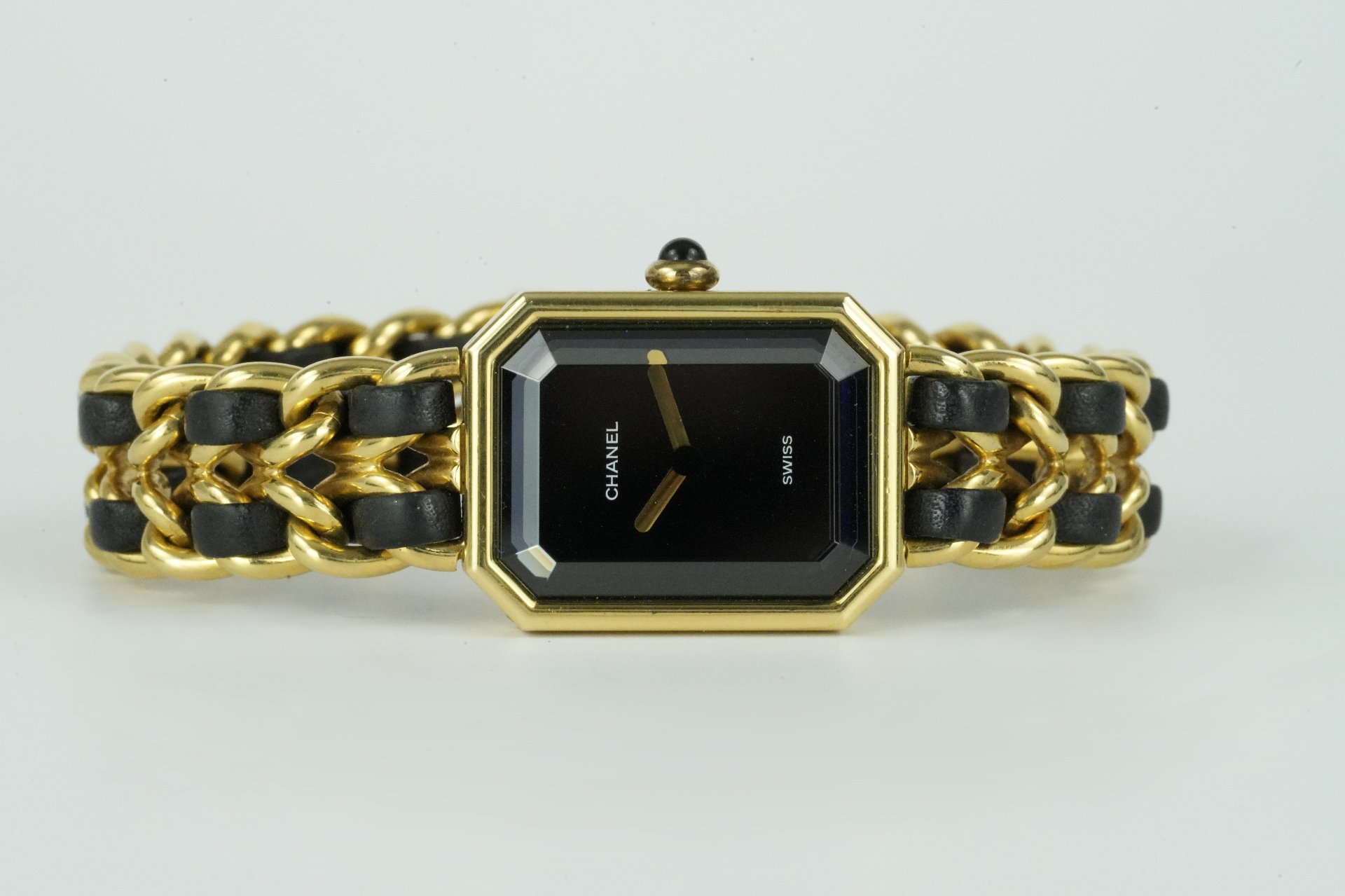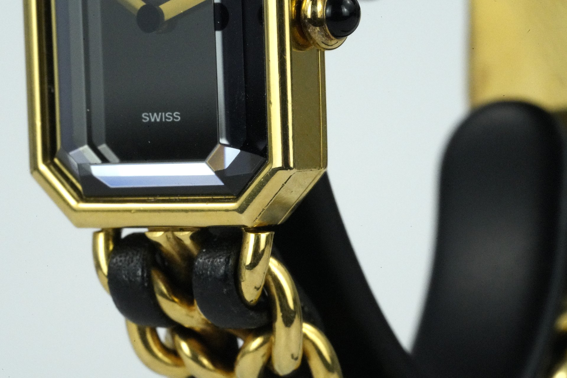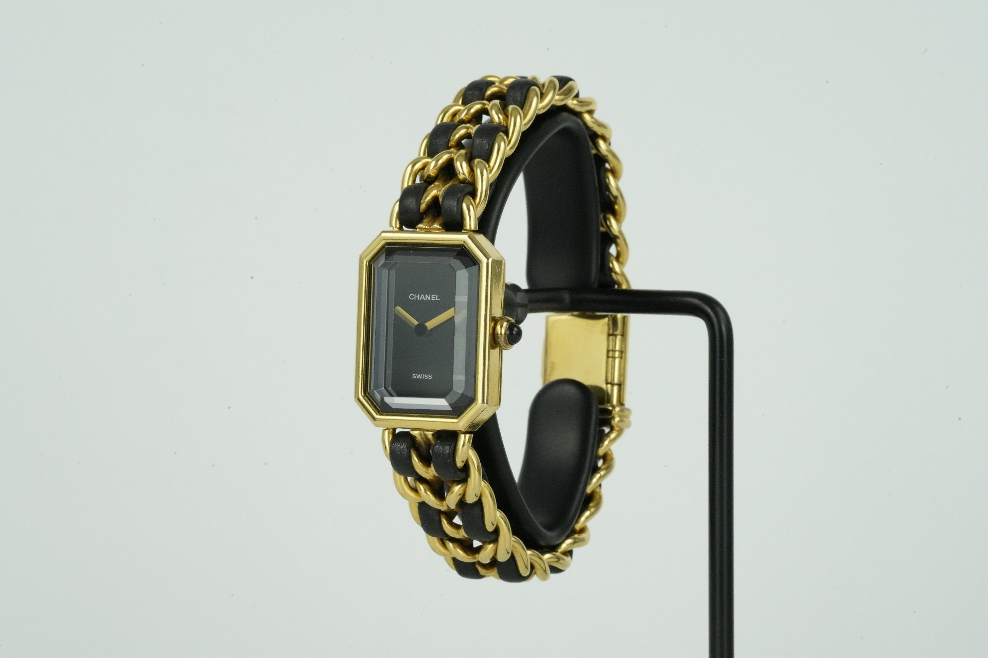 Le bracelet original en acier couleur or, magnifiquement mis en valeur par un fermoir bijoux original, assure un confort et un style distinctifs. Ce modèle est livré seul et bénéficie d’une garantie de 12 mois. La Chanel Première, en bon état, est un témoignage du savoir-faire horloger de la Maison Chanel, parfaite pour sublimer chaque poignet.