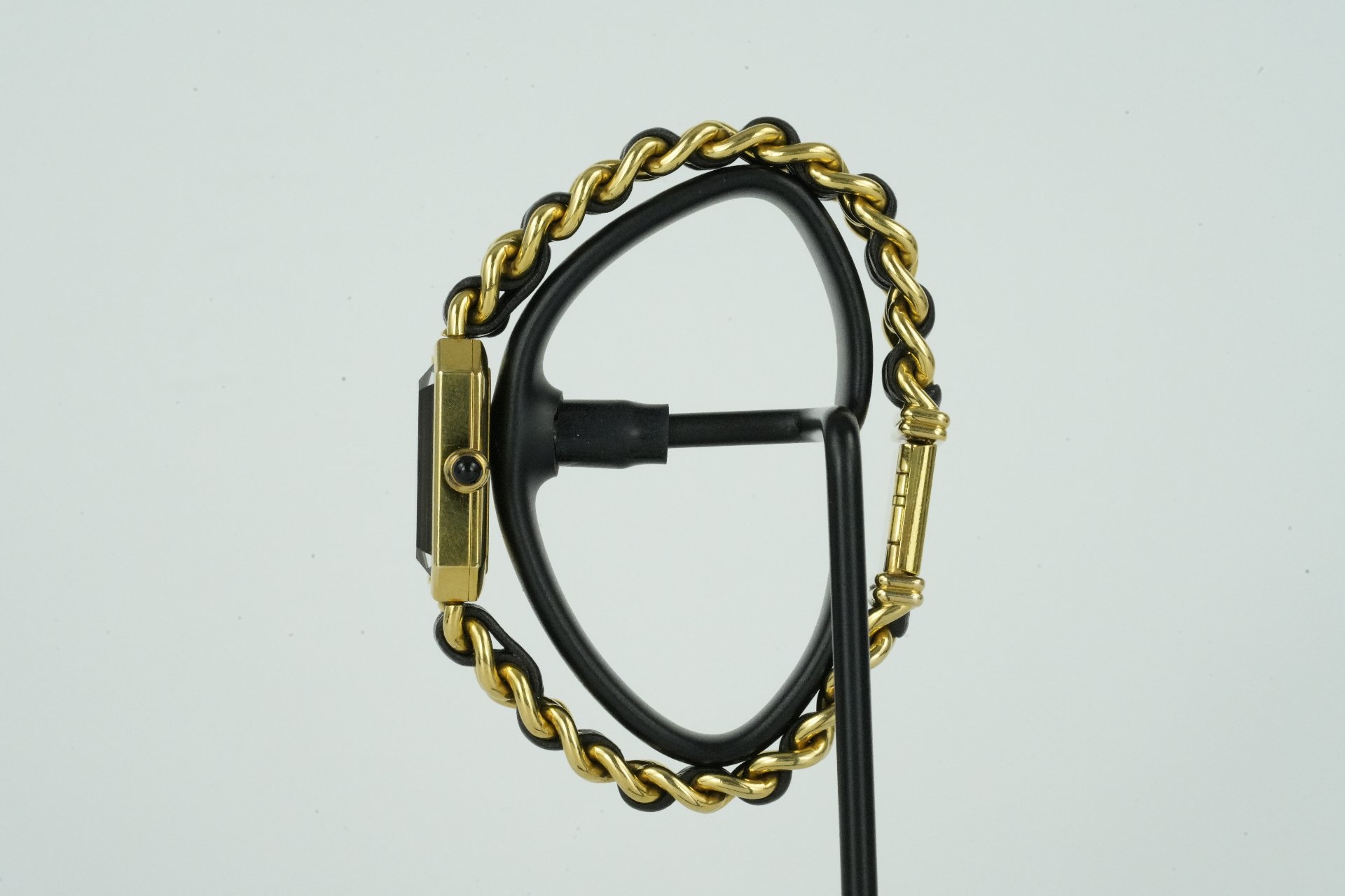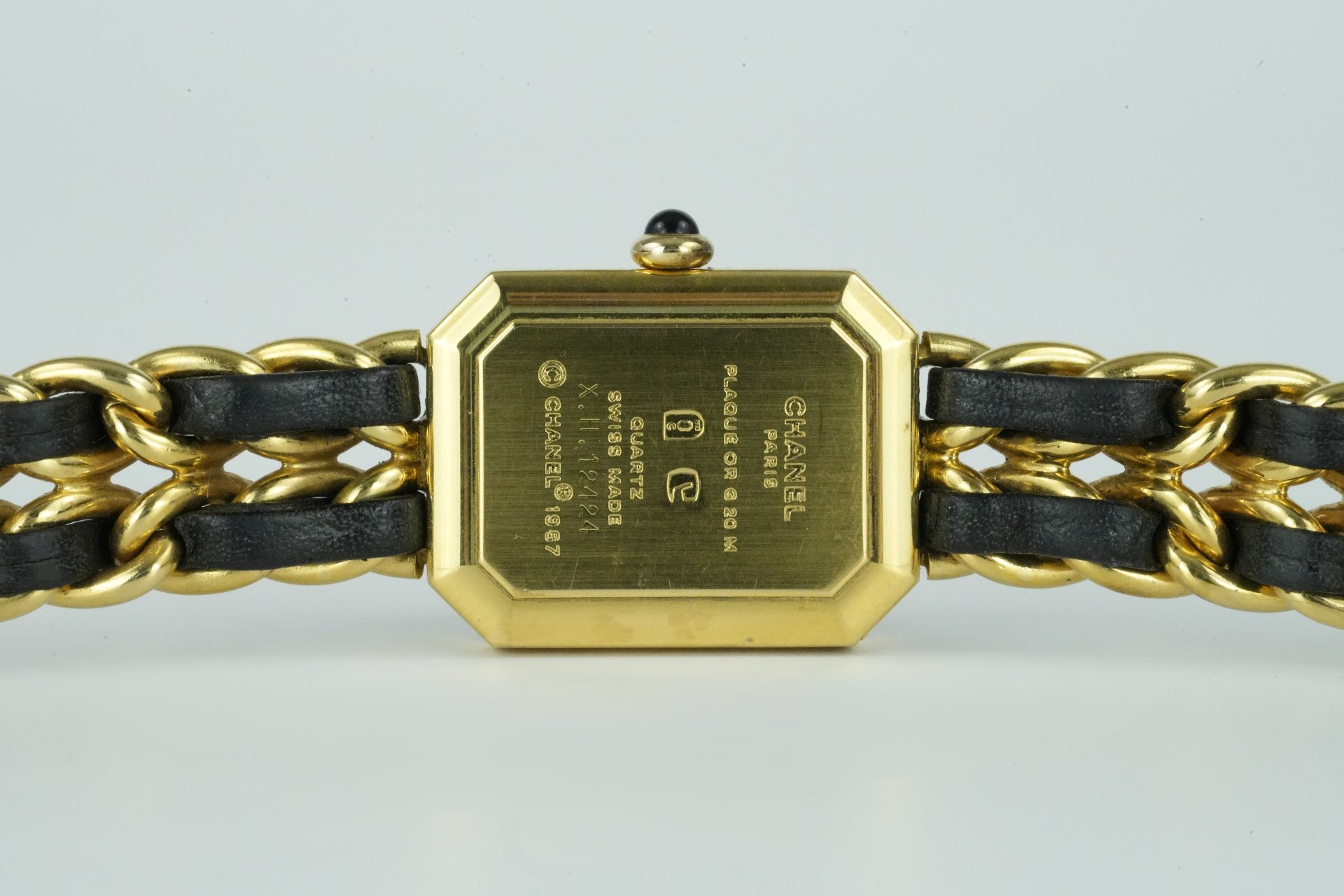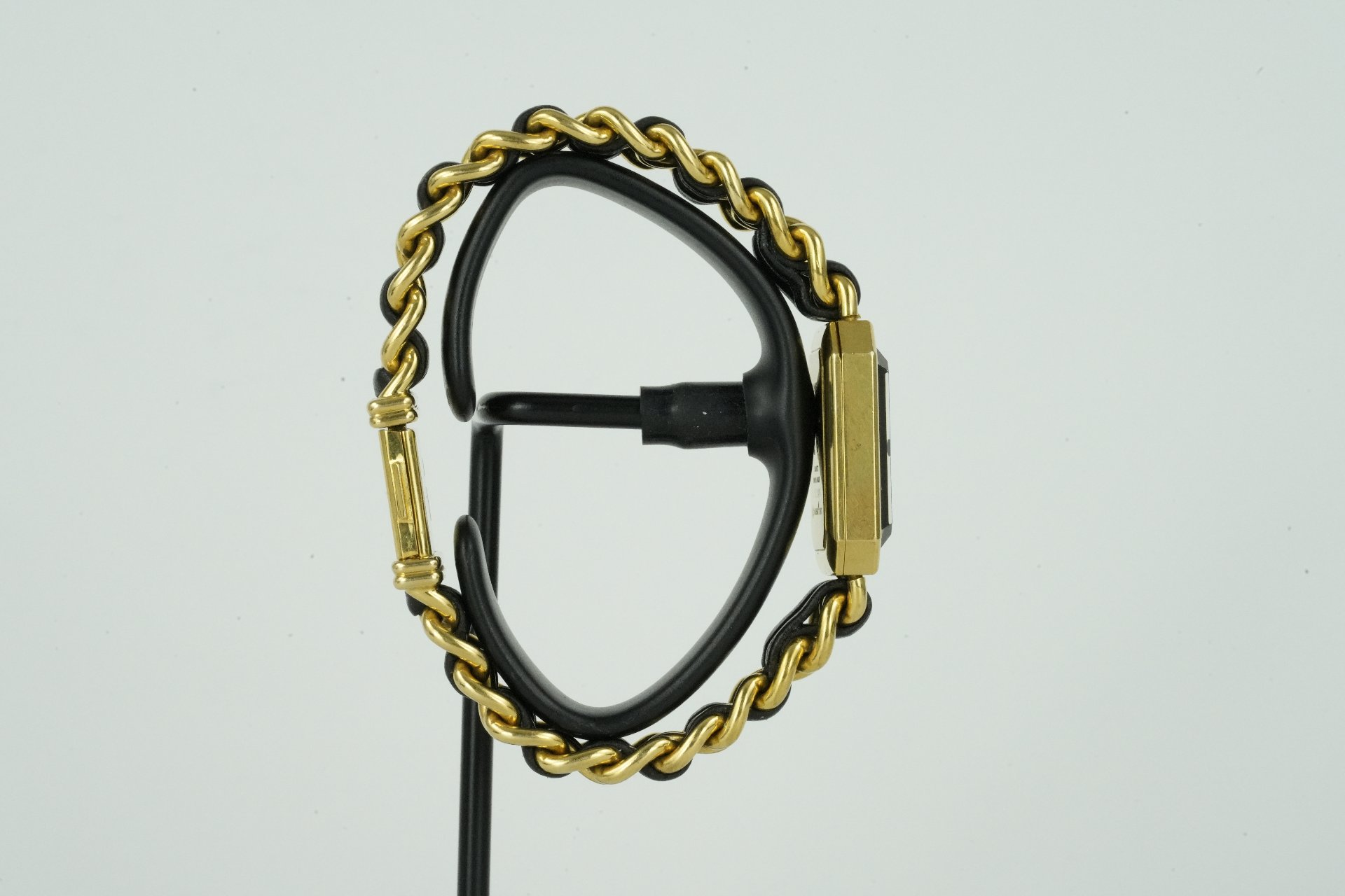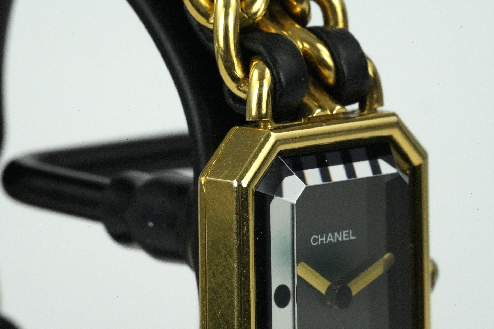 Le bracelet original en acier couleur or, magnifiquement mis en valeur par un fermoir bijoux original, assure un confort et un style distinctifs. Ce modèle est livré seul et bénéficie d’une garantie de 12 mois. La Chanel Première, en bon état, est un témoignage du savoir-faire horloger de la Maison Chanel, parfaite pour sublimer chaque poignet.