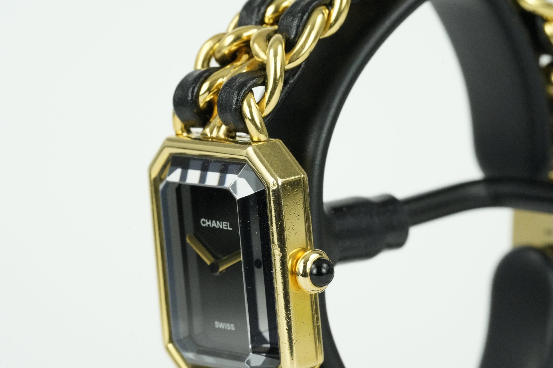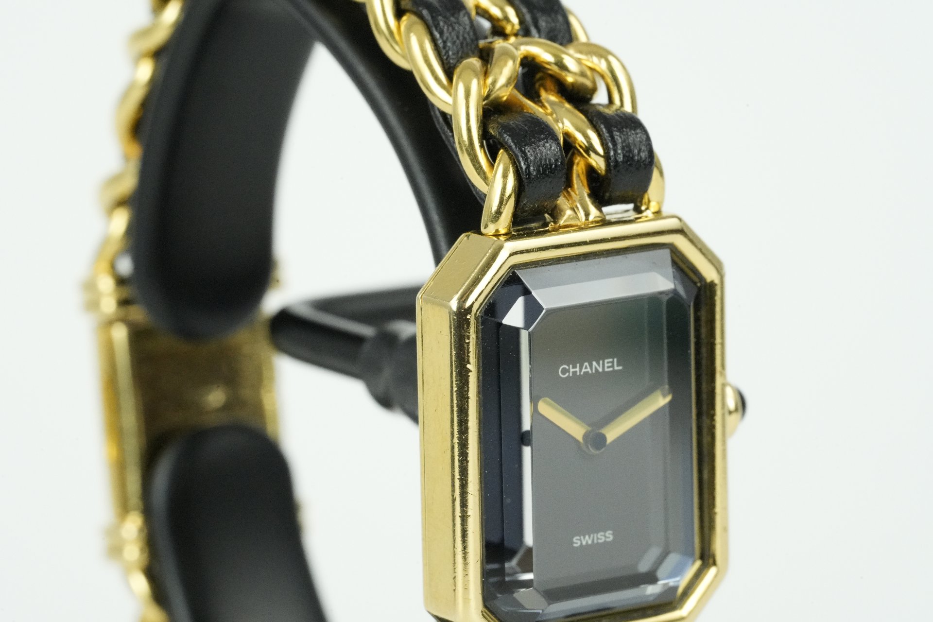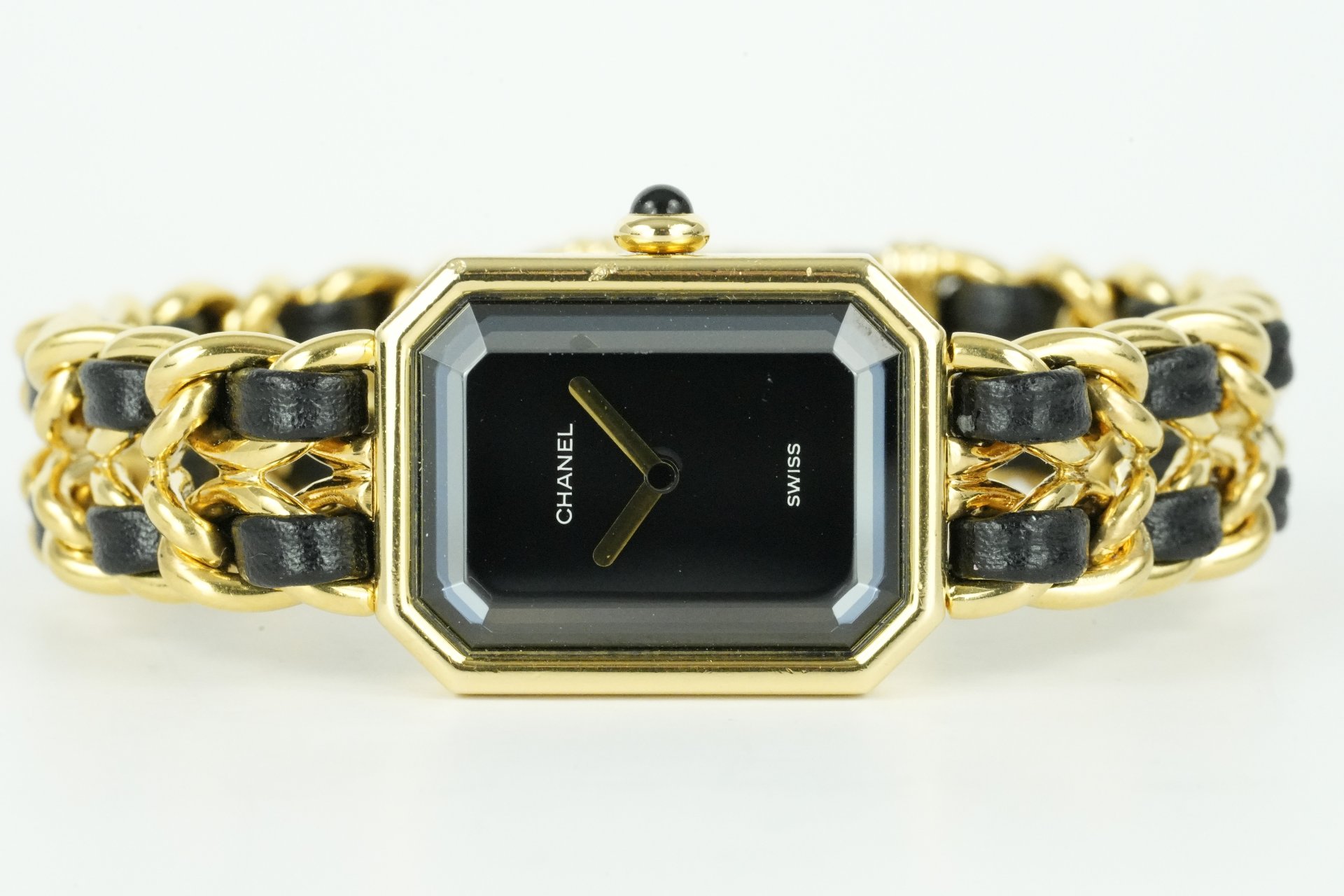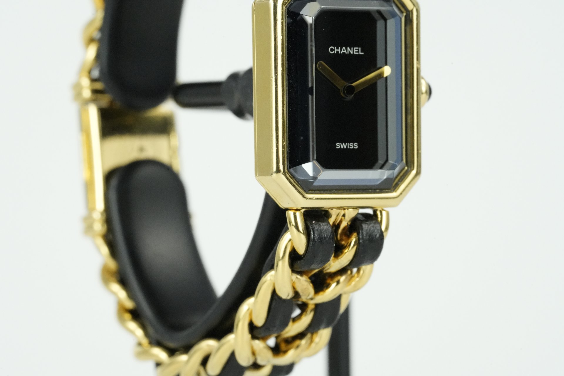 Découvrez l’élégance intemporelle avec cette montre Chanel Première, Référence H0001 (TOT-01671), une icône de raffinement conçue pour la femme moderne. Son boîtier plaqué or de 20 mm de diamètre et 7.1 mm d’épaisseur abrite un mouvement à Quartz précis. Le bracelet en acier doré, original, s’harmonise parfaitement avec le fermoir bijoux également authentique, assurant une allure sophistiquée. Bien que la montre soit livrée seule, son bon état témoigne de son intégrité. Ce garde-temps est accompagné d’une garantie de 12 mois, gage de votre tranquillité.