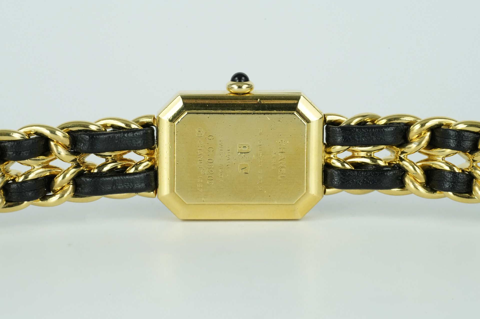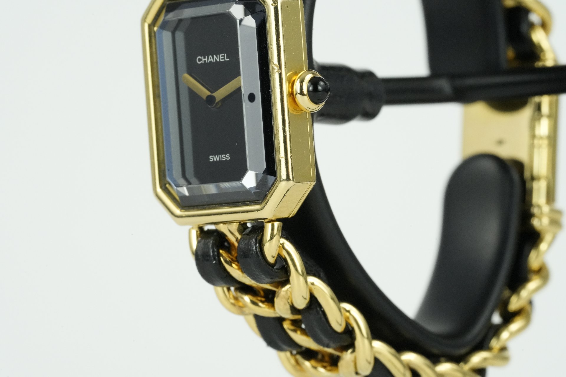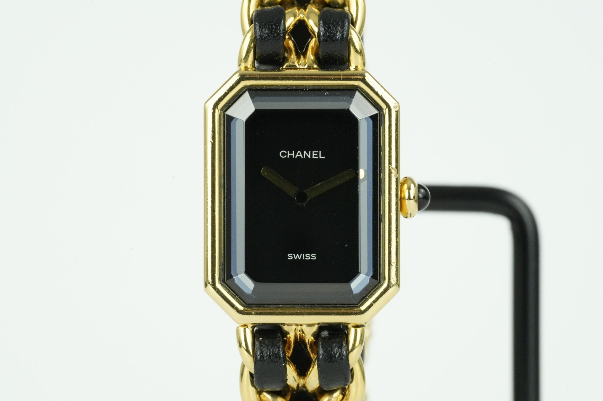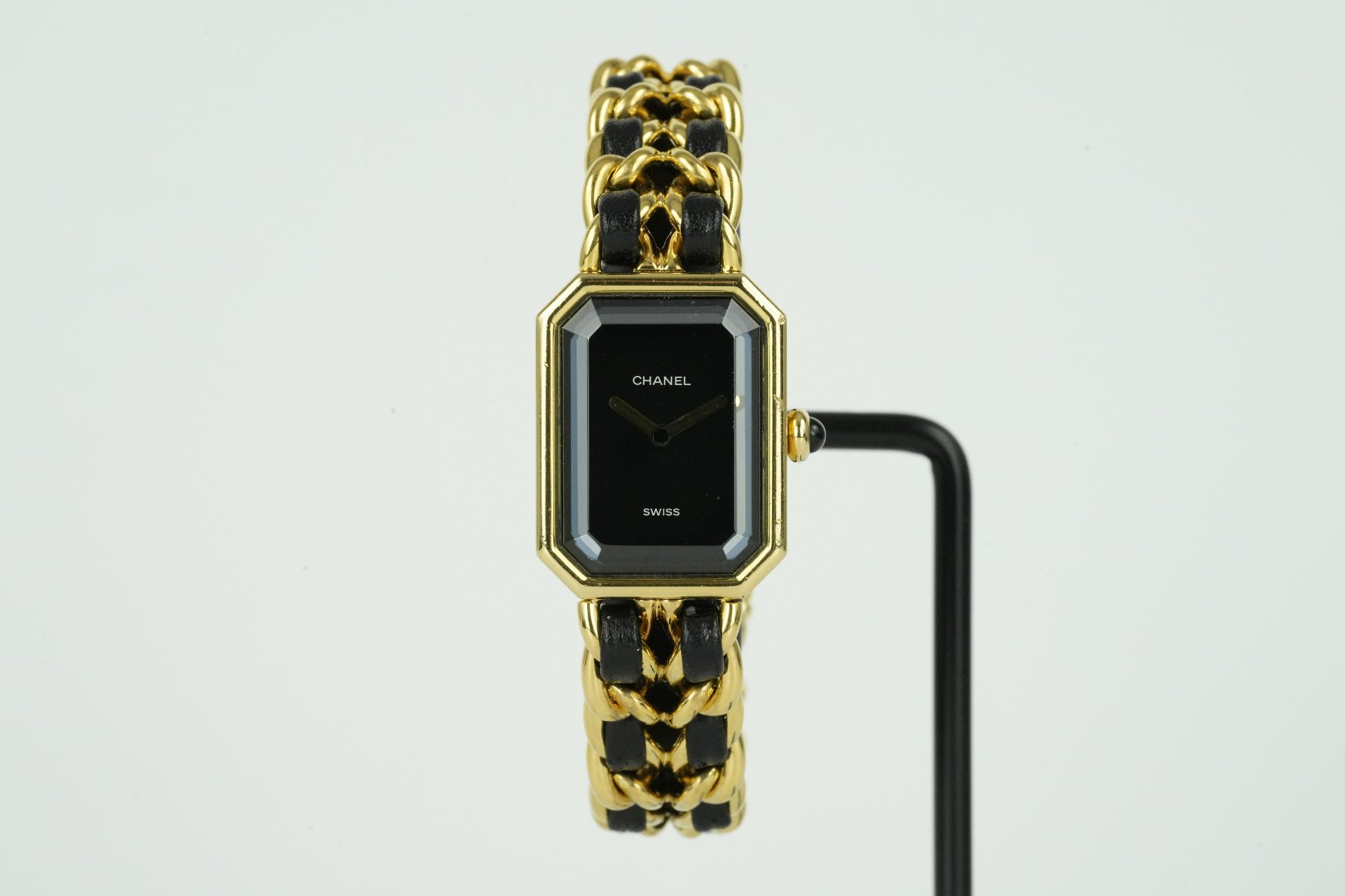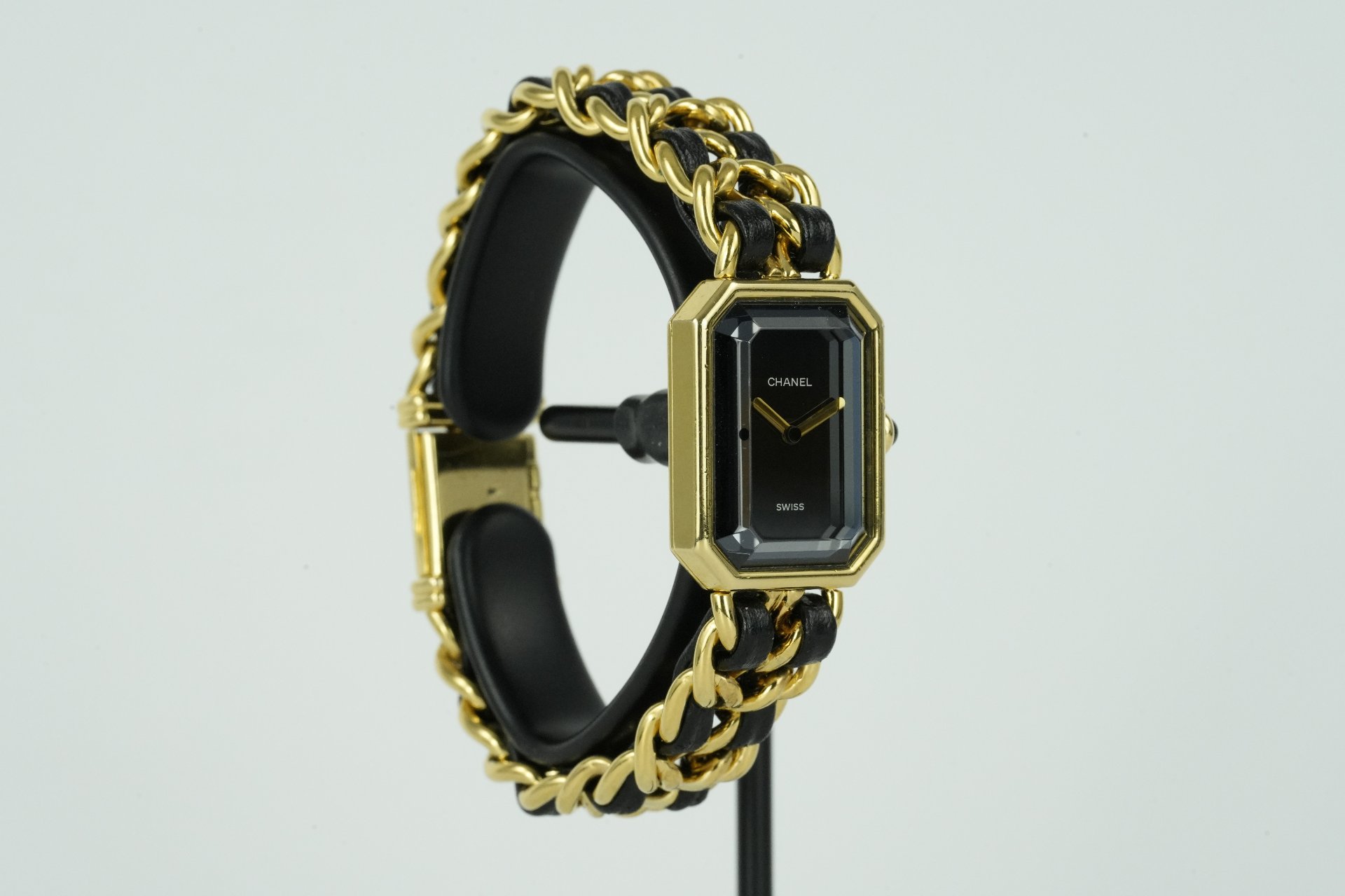 Découvrez l’élégance intemporelle avec cette montre Chanel Première, Référence H0001 (TOT-01671), une icône de raffinement conçue pour la femme moderne. Son boîtier plaqué or de 20 mm de diamètre et 7.1 mm d’épaisseur abrite un mouvement à Quartz précis. Le bracelet en acier doré, original, s’harmonise parfaitement avec le fermoir bijoux également authentique, assurant une allure sophistiquée. Bien que la montre soit livrée seule, son bon état témoigne de son intégrité. Ce garde-temps est accompagné d’une garantie de 12 mois, gage de votre tranquillité.