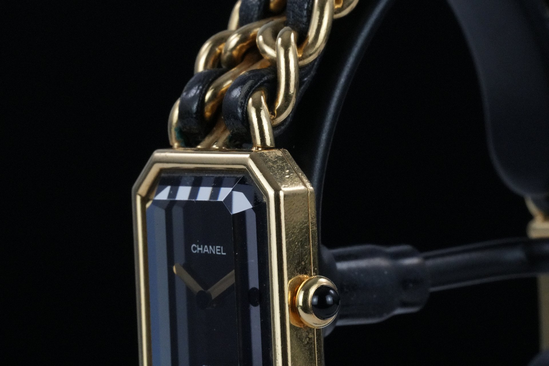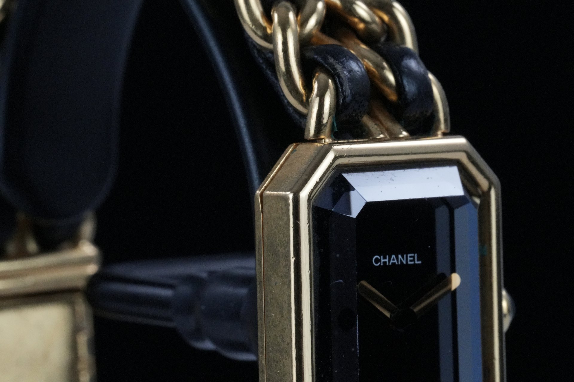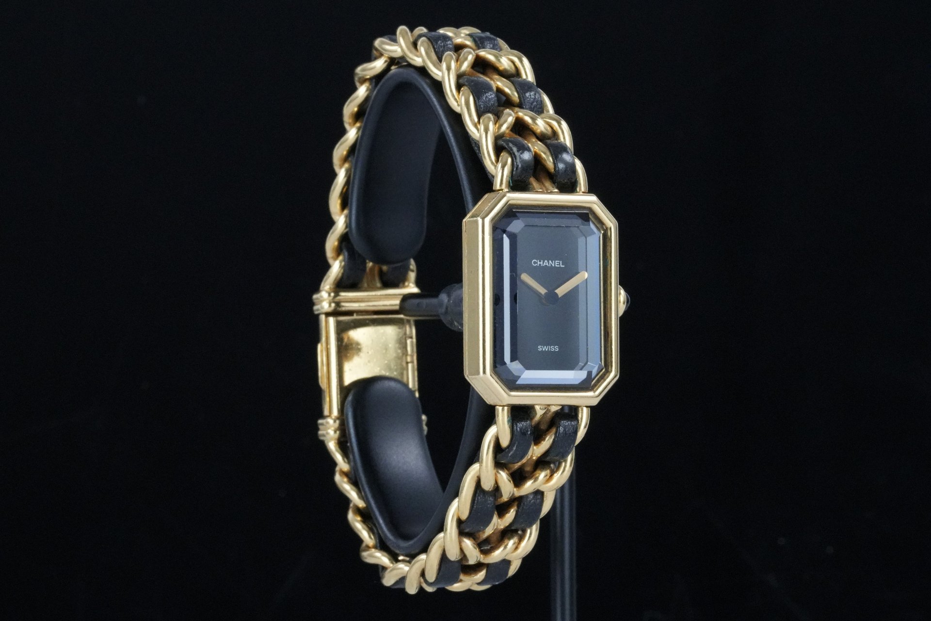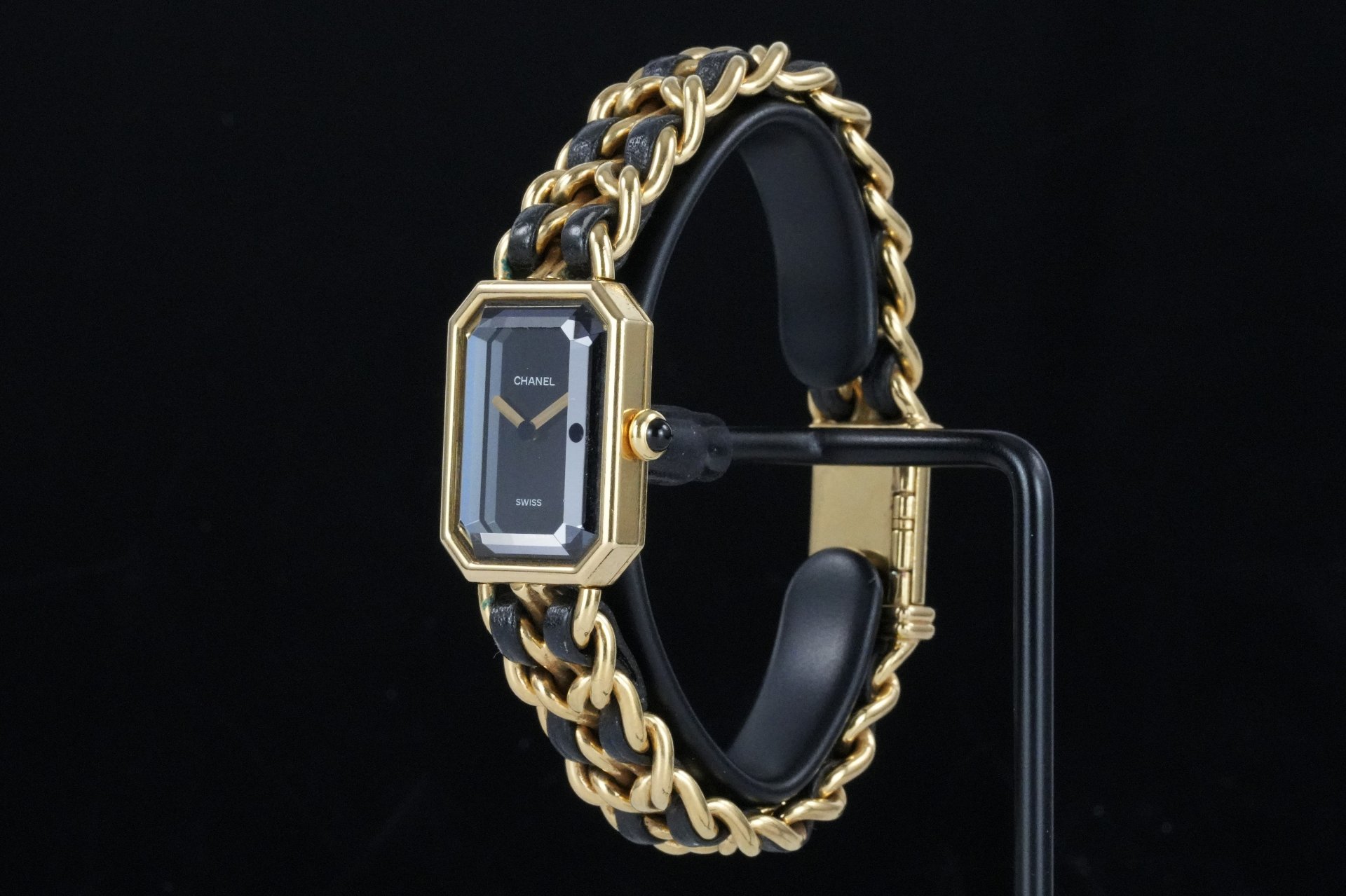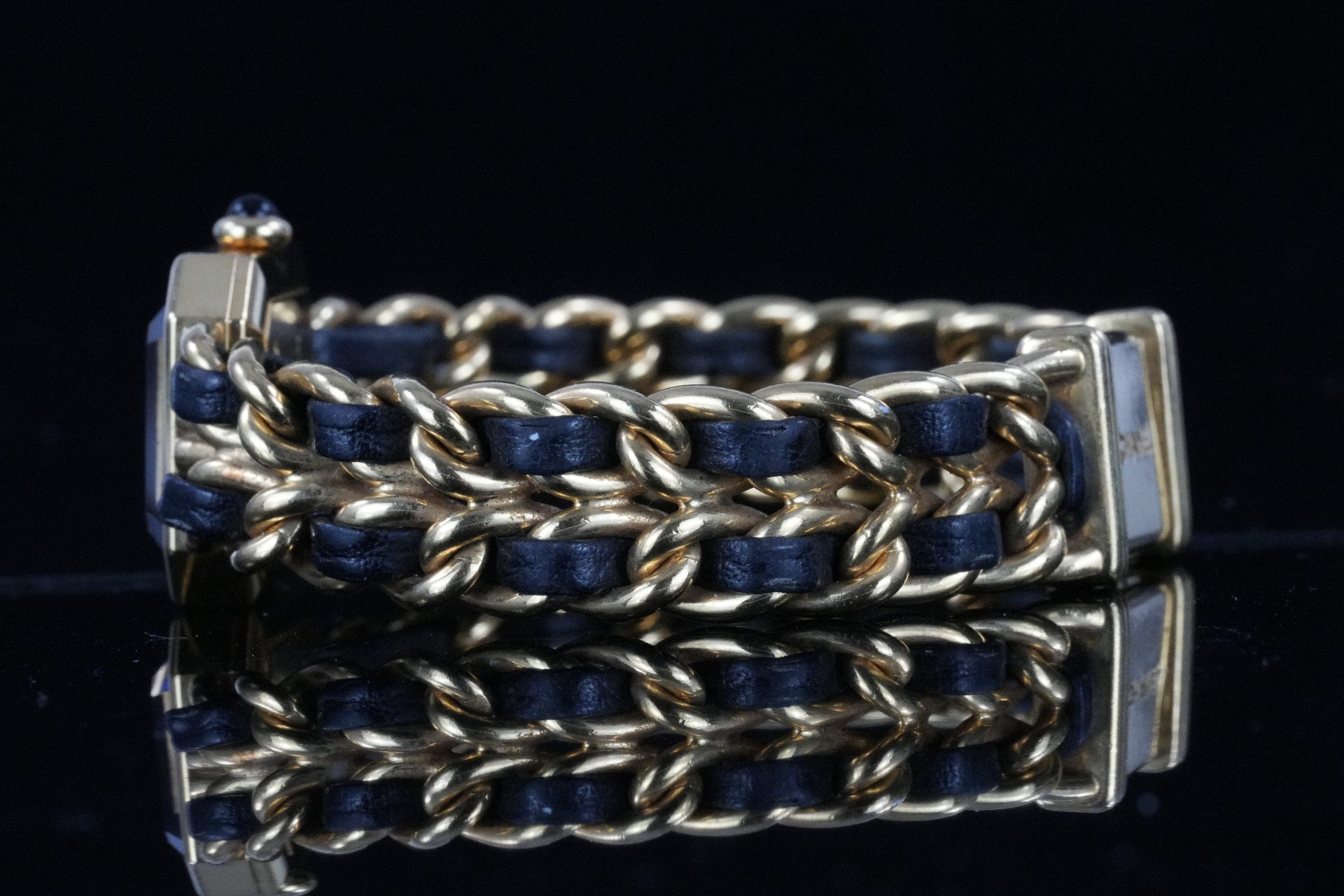 Découvrez l’élégance intemporelle de la montre Chanel Première, référence commerciale H0001 et TOT-01744. Ce modèle féminin, empreint du style iconique de la Maison Chanel, est animé par un mouvement à Quartz. Son boîtier plaqué or de 20.1mm de diamètre confère à cette pièce une prestance délicate et raffinée. Le bracelet en acier plaqué or, d’une longueur de 16.5 cm, est d’origine, tout comme son fermoir bijoux, soulignant l’authenticité de cette montre. Malgré son état bon, elle sera couverte par une garantie de 12 mois.