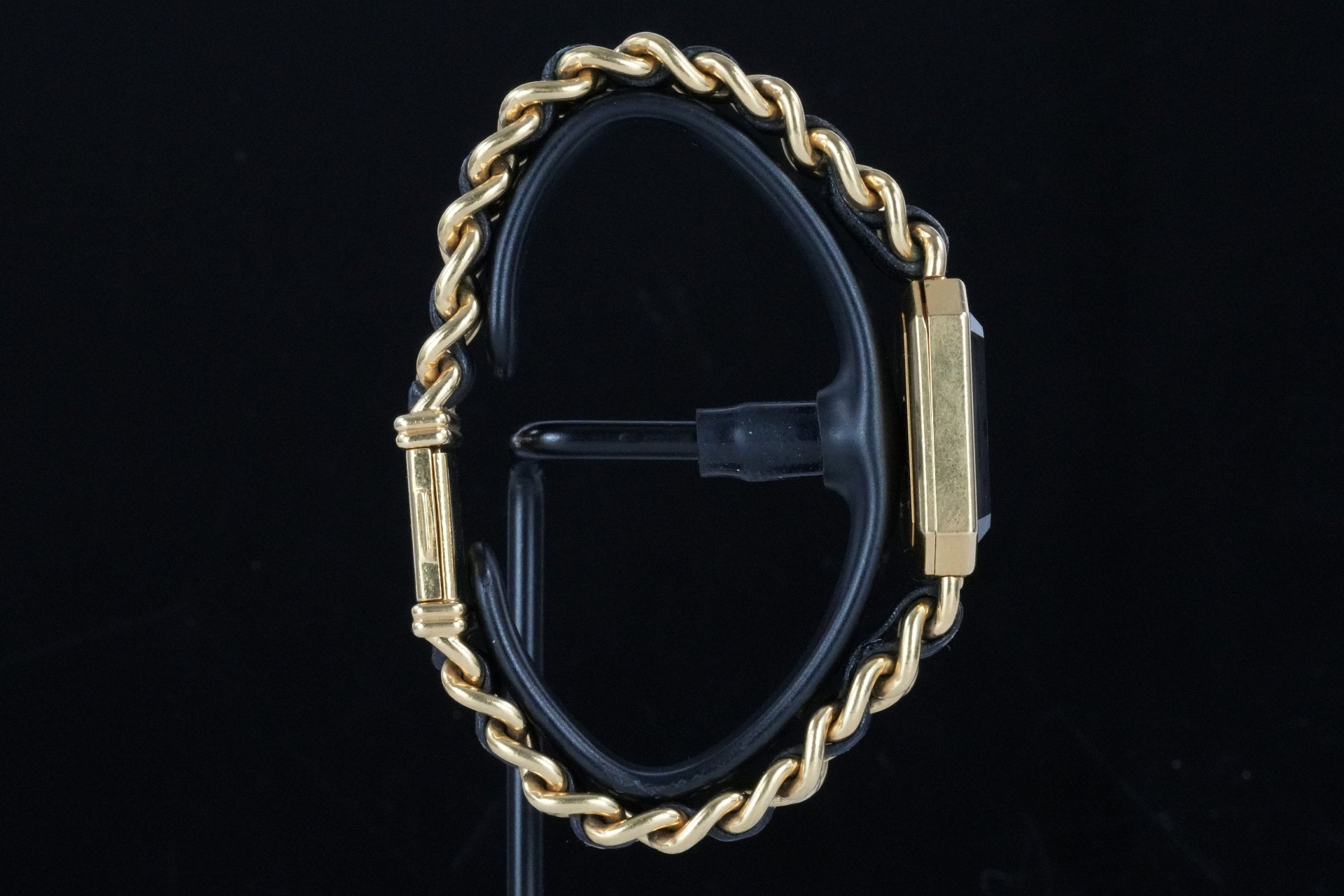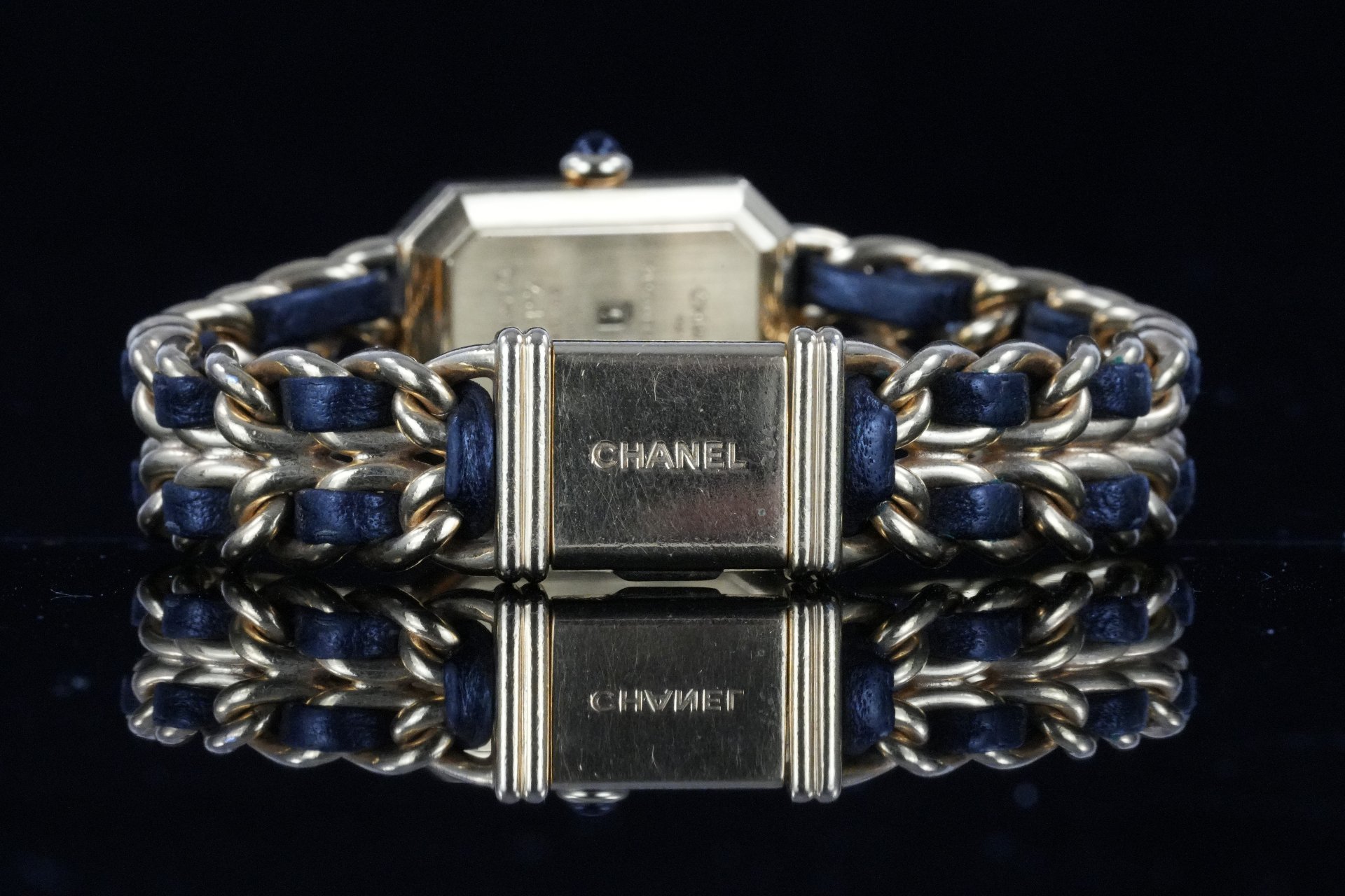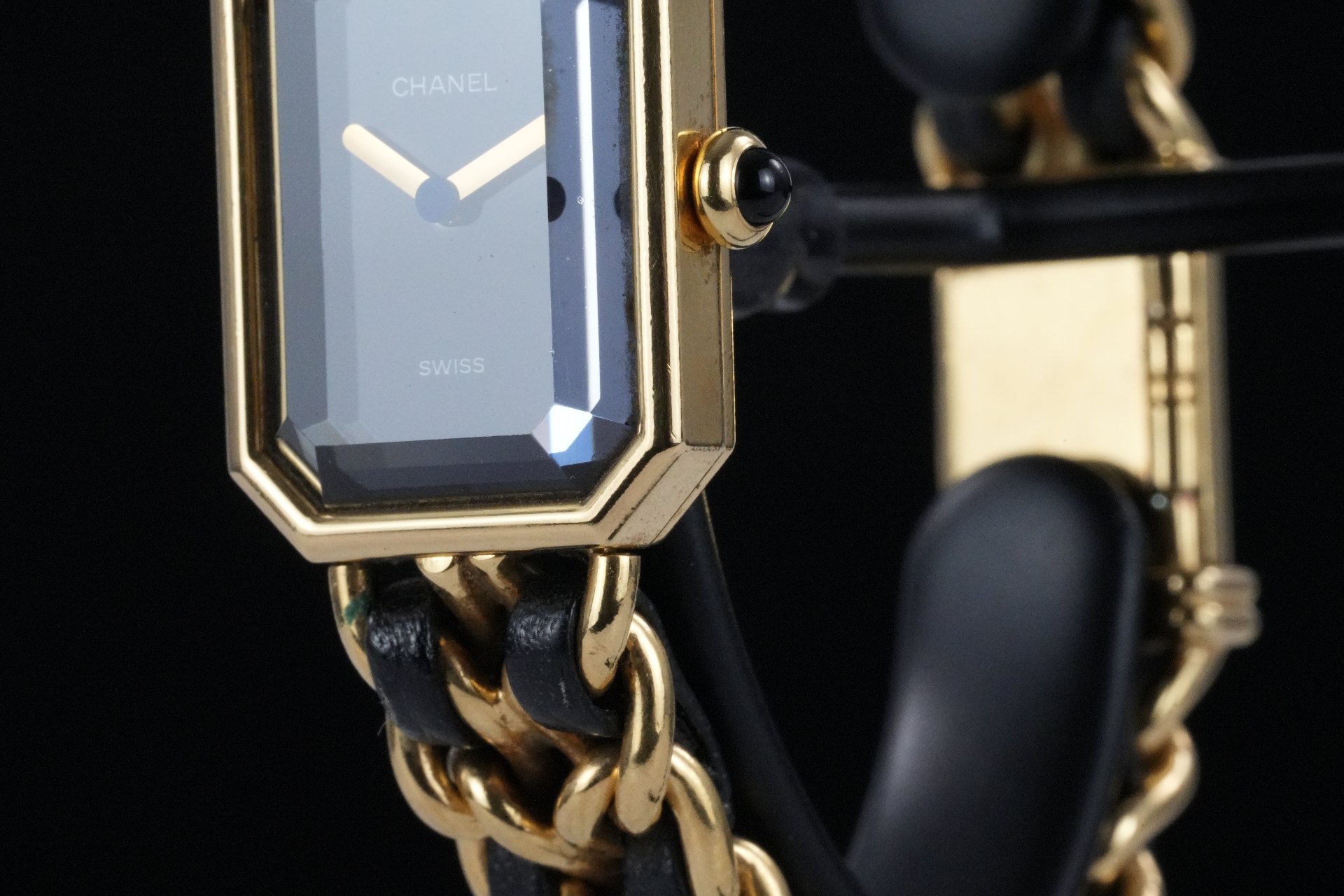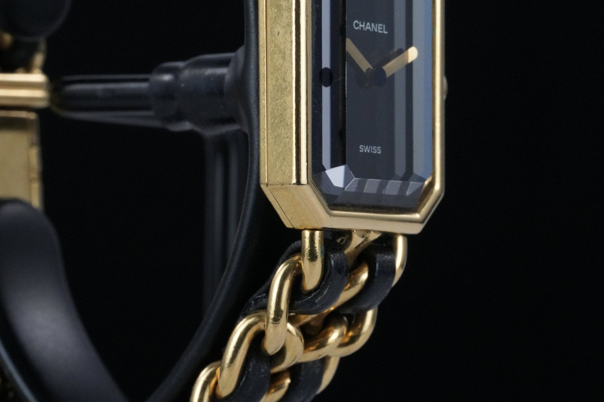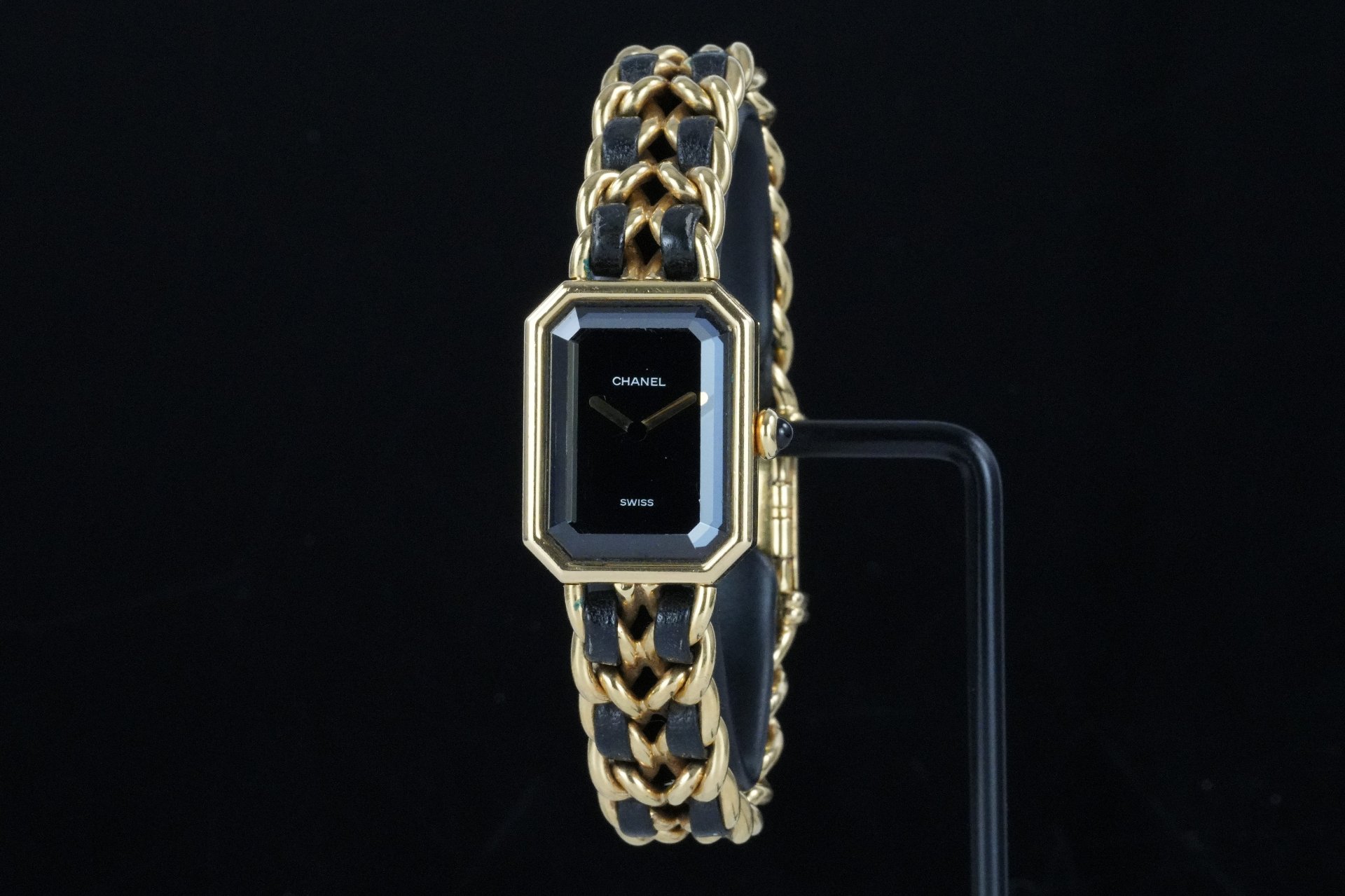 Découvrez l’élégance intemporelle de la montre Chanel Première, référence commerciale H0001 et TOT-01744. Ce modèle féminin, empreint du style iconique de la Maison Chanel, est animé par un mouvement à Quartz. Son boîtier plaqué or de 20.1mm de diamètre confère à cette pièce une prestance délicate et raffinée. Le bracelet en acier plaqué or, d’une longueur de 16.5 cm, est d’origine, tout comme son fermoir bijoux, soulignant l’authenticité de cette montre. Malgré son état bon, elle sera couverte par une garantie de 12 mois.