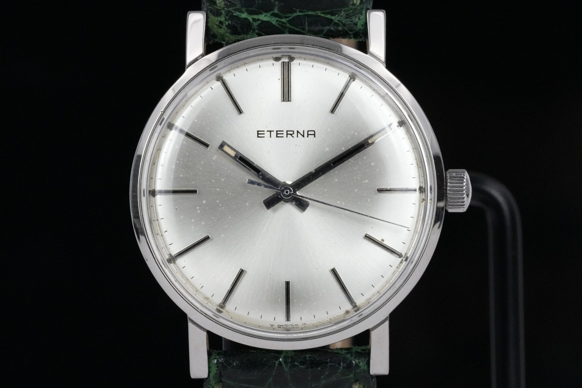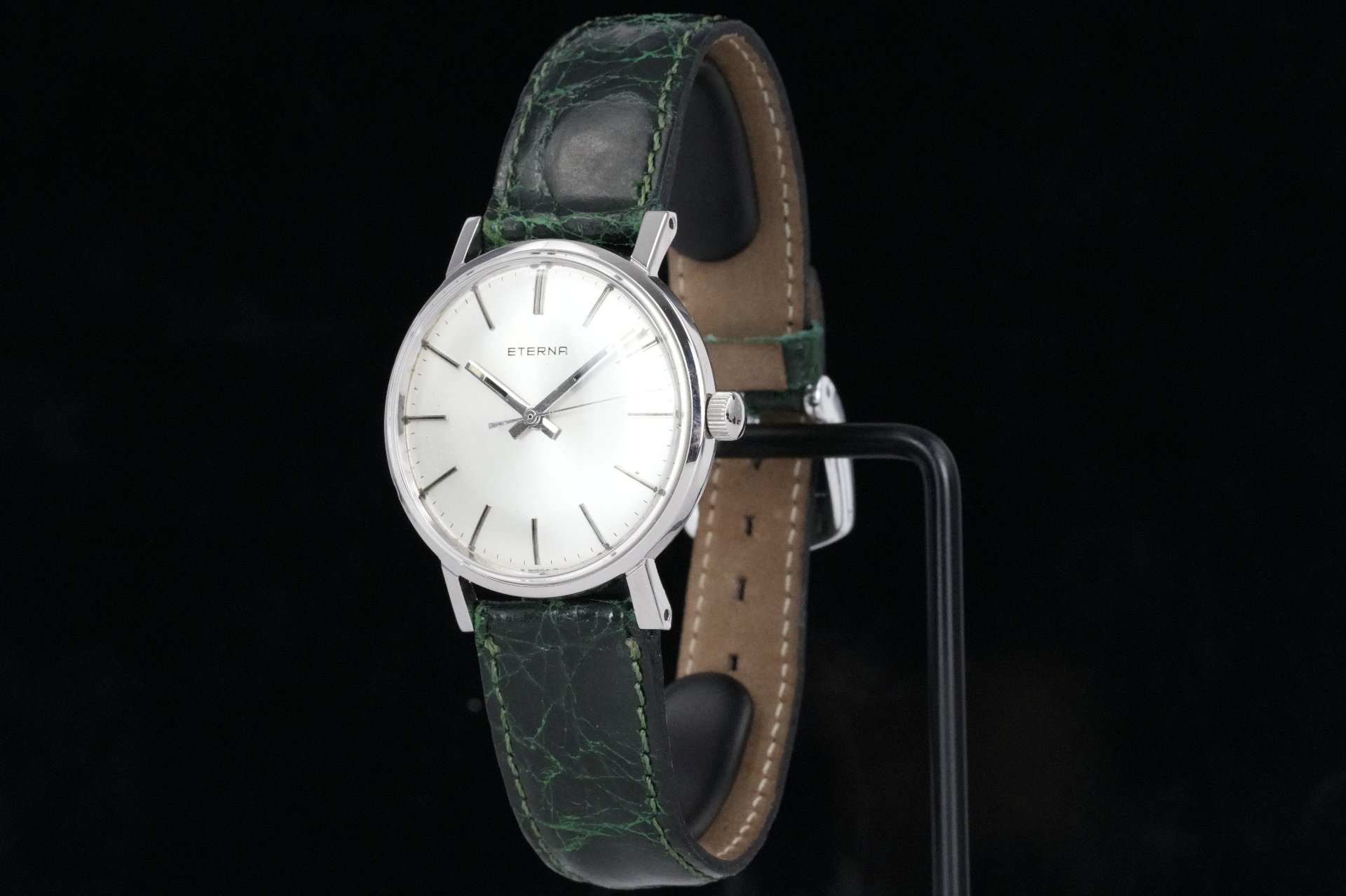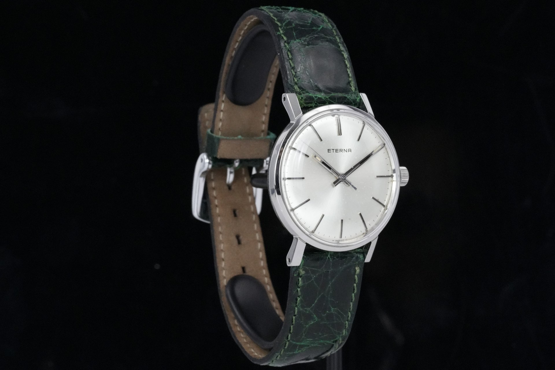Découvrez l’élégance intemporelle de cette montre Eterna Mechanical (Réf. 138T), une pièce unisexe au charme discret et raffiné. Son boîtier en acier de 32 mm de diamètre et 8.7 mm d’épaisseur abrite un mouvement à remontage manuel, témoignage d’une horlogerie traditionnelle et précise. Le cadran, d’une grande sobriété, est complété par un bracelet en cuir vert non-original, doté d’une boucle ardillon non-originale qui assure un port confortable et stylé. Cette montre, livrée seule, est en très bon état général, prête à sublimer votre poignet. Une garantie de 12 mois accompagne cette acquisition, vous offrant tranquillité et confiance. Référence TOT-01832.