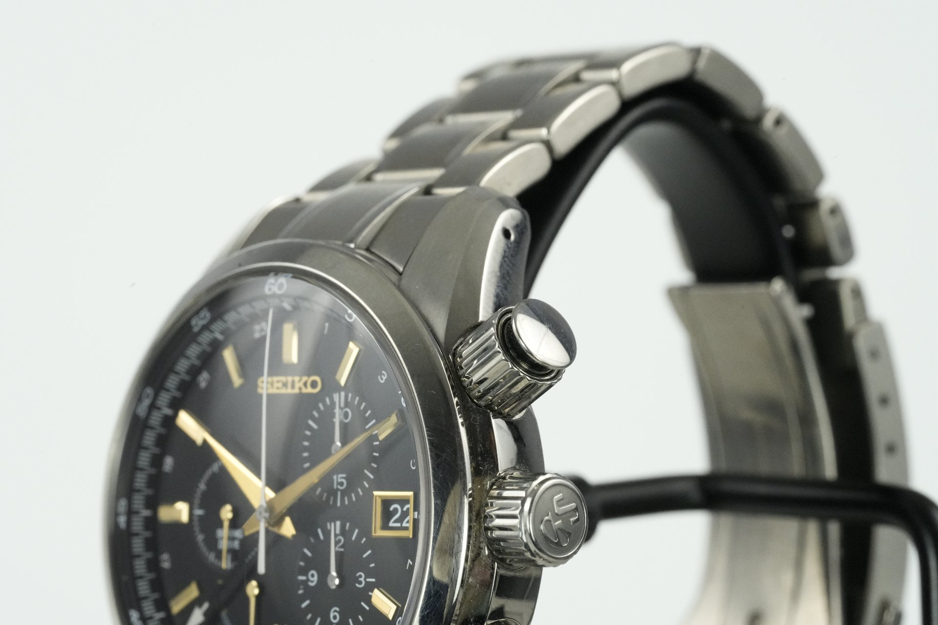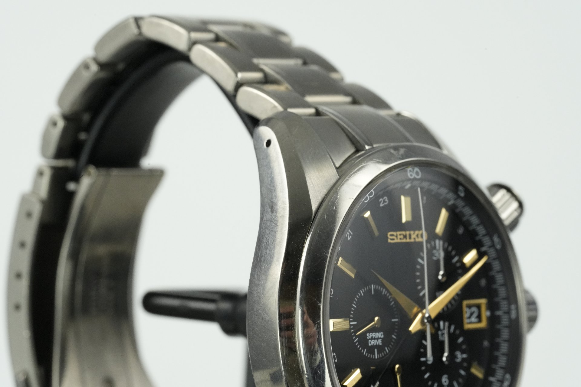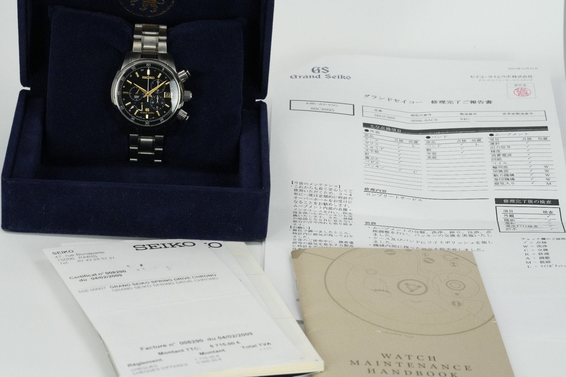 Découvrez la Grand Seiko Spring Drive Chronograph, référence commerciale SBGC005, une montre pour homme livrée complète et datant de 2009. Son mouvement à remontage automatique incarne une prouesse horlogère, gage d’une précision remarquable. Le boîtier en titane de 13 mm x 16 mm et le bracelet original assorti en titane de couleur acier offrent une légèreté et une robustesse exceptionnelles, tandis que sa boucle déployante originale assure un maintien parfait. Cette pièce, en bon état, est couverte par une garantie de 12 mois.