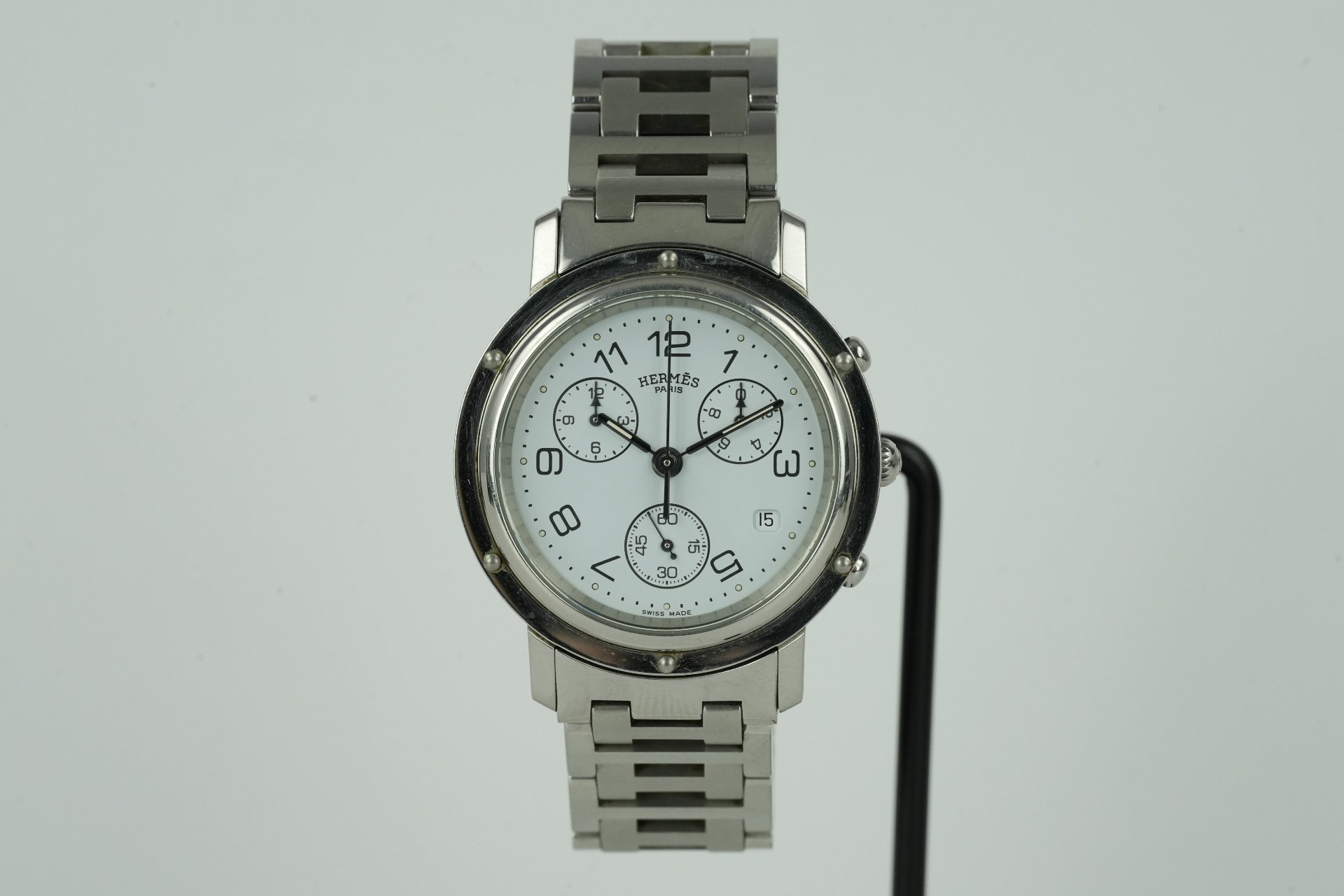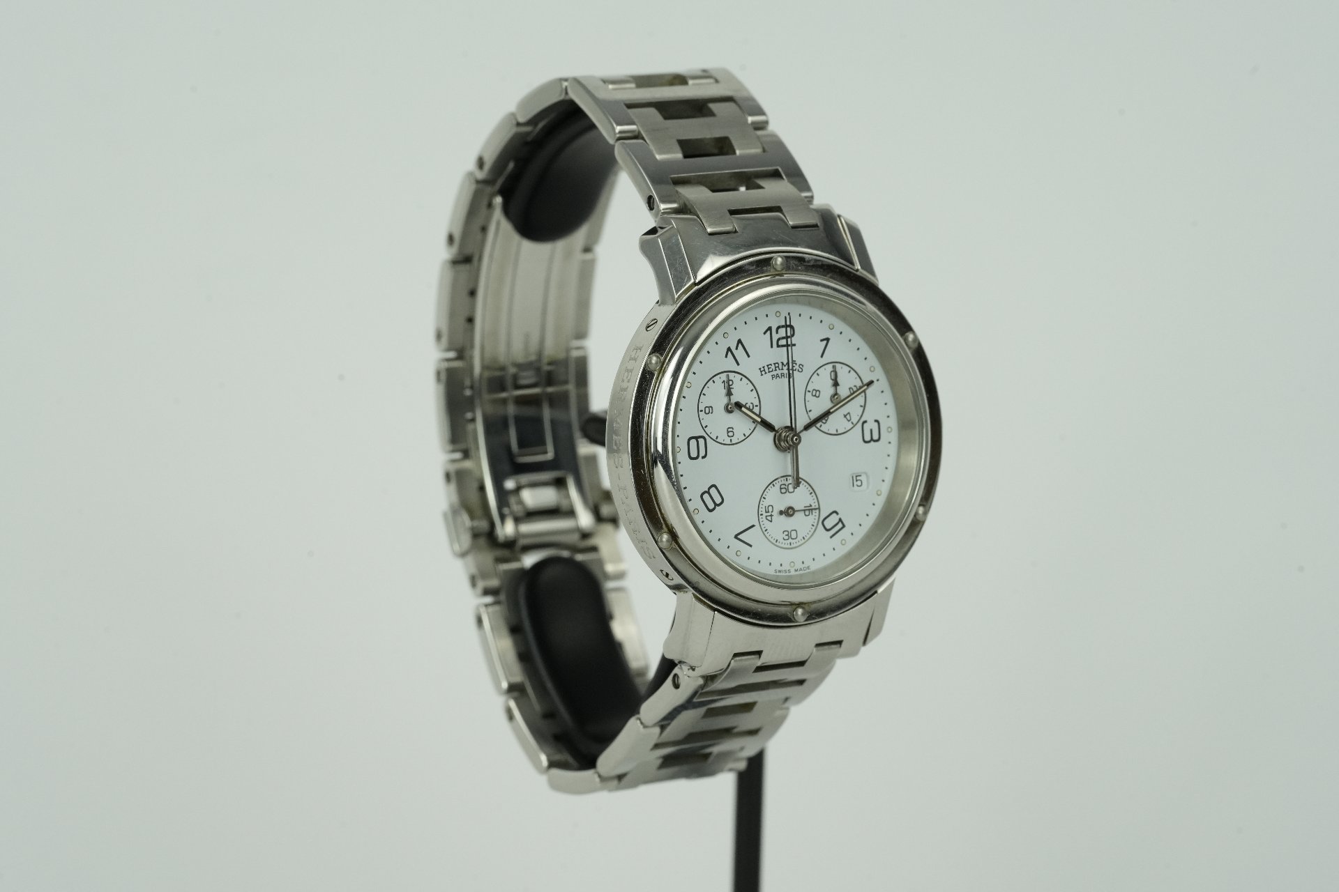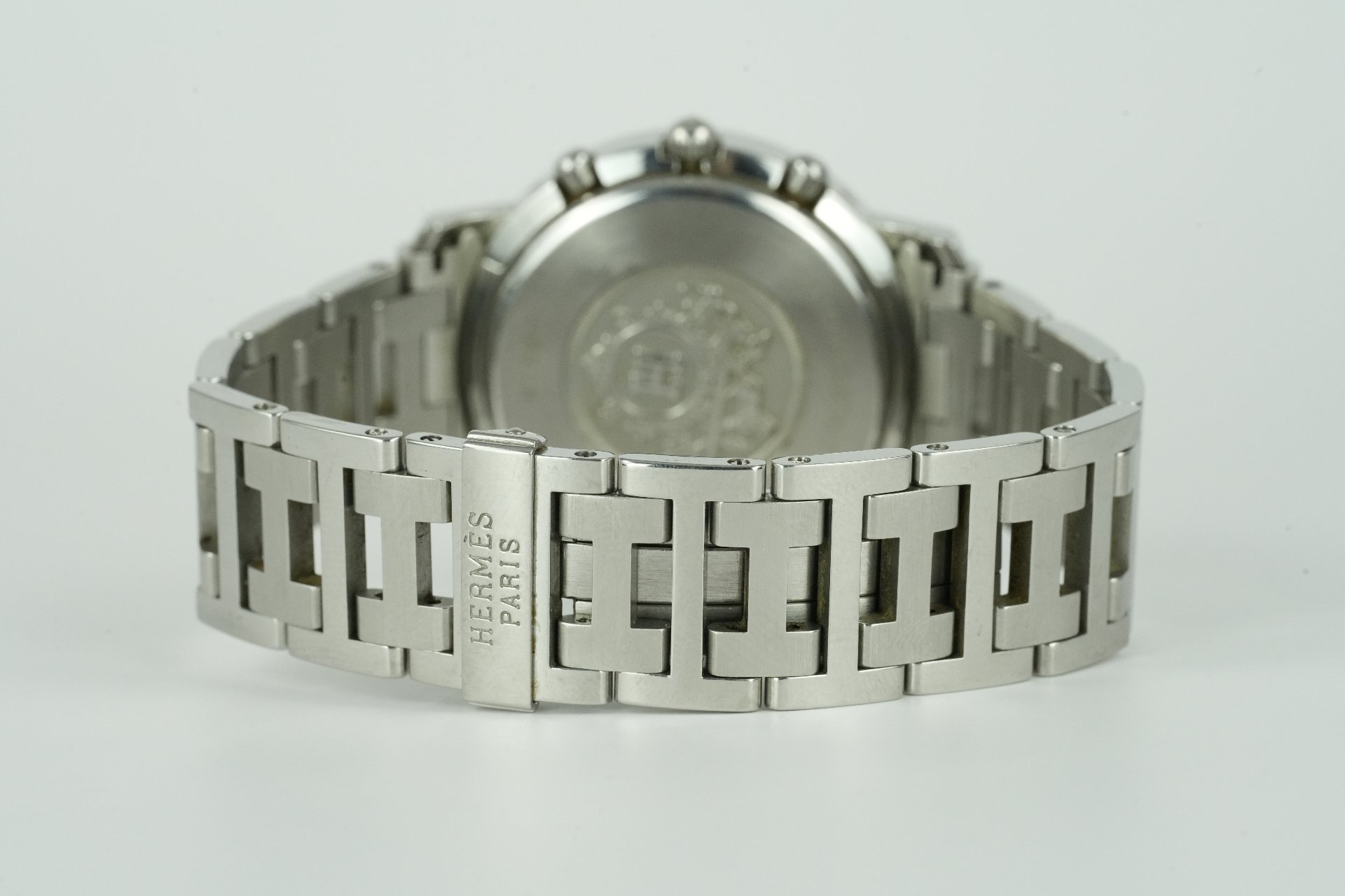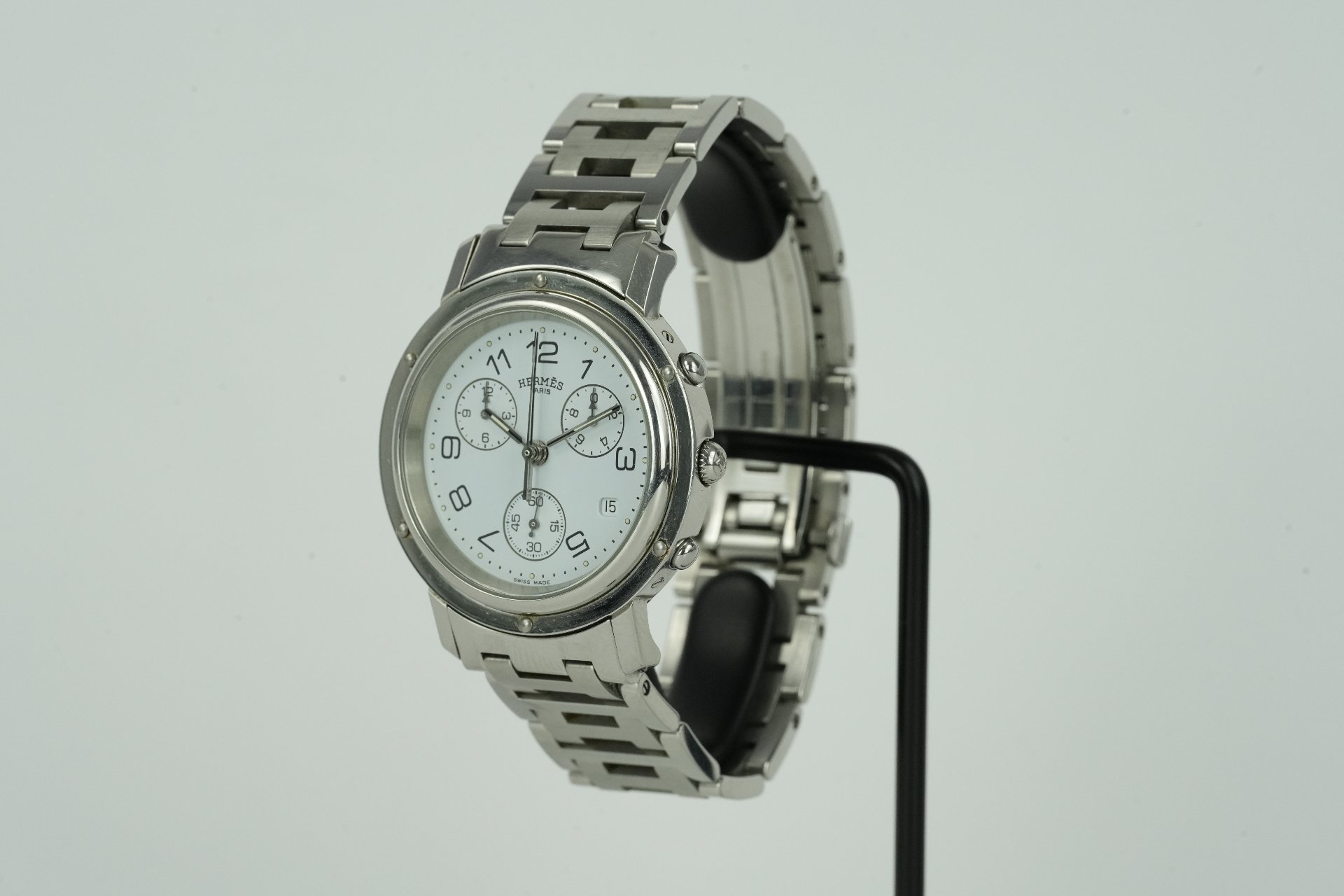 Plongez dans l’univers de l’élégance intemporelle avec ce chronographe Hermès Clipper, référence commerciale CL1.910. Cette pièce unisexe d’une grande polyvalence est animée par un mouvement Quartz d’une précision irréprochable. Son boîtier en acier de 38 mm de diamètre et 10.4 mm d’épaisseur abrite un cadran sophistiqué. Le bracelet en acier d’origine, complété par sa boucle déployante d’origine, assure un confort optimal et une esthétique harmonieuse. Affichant un bon état général, cette montre est étanche jusqu’à 3 ATM. Elle est proposée dans sa configuration seule et bénéficie d’une garantie de 12 mois.