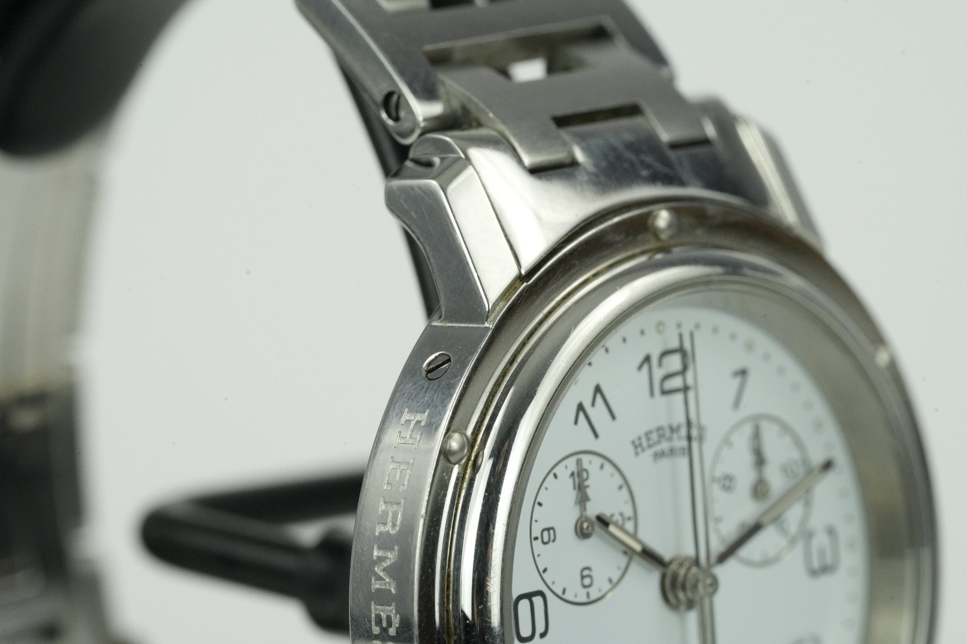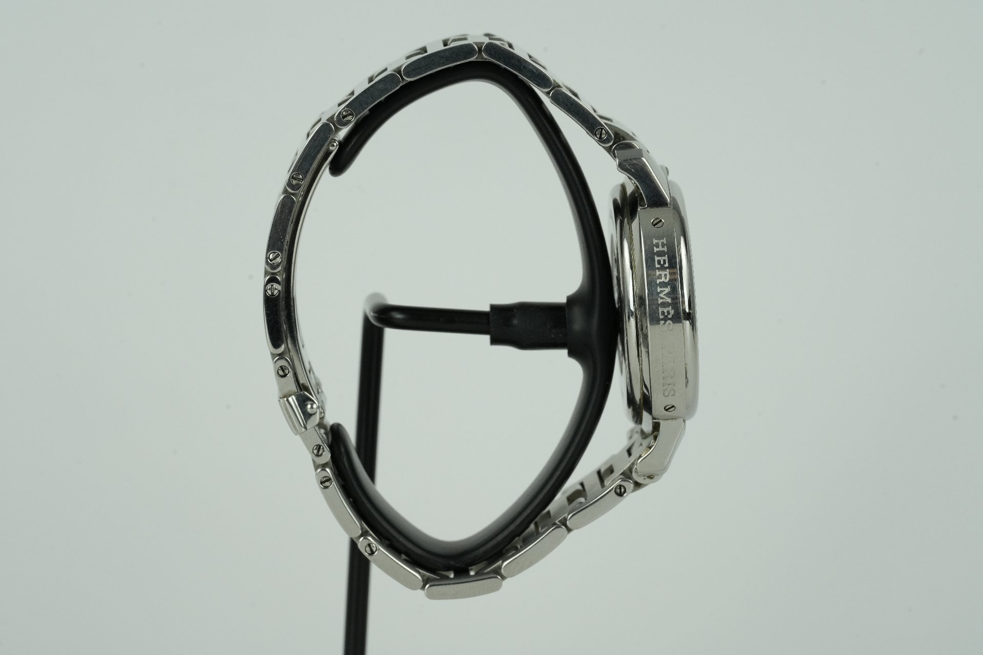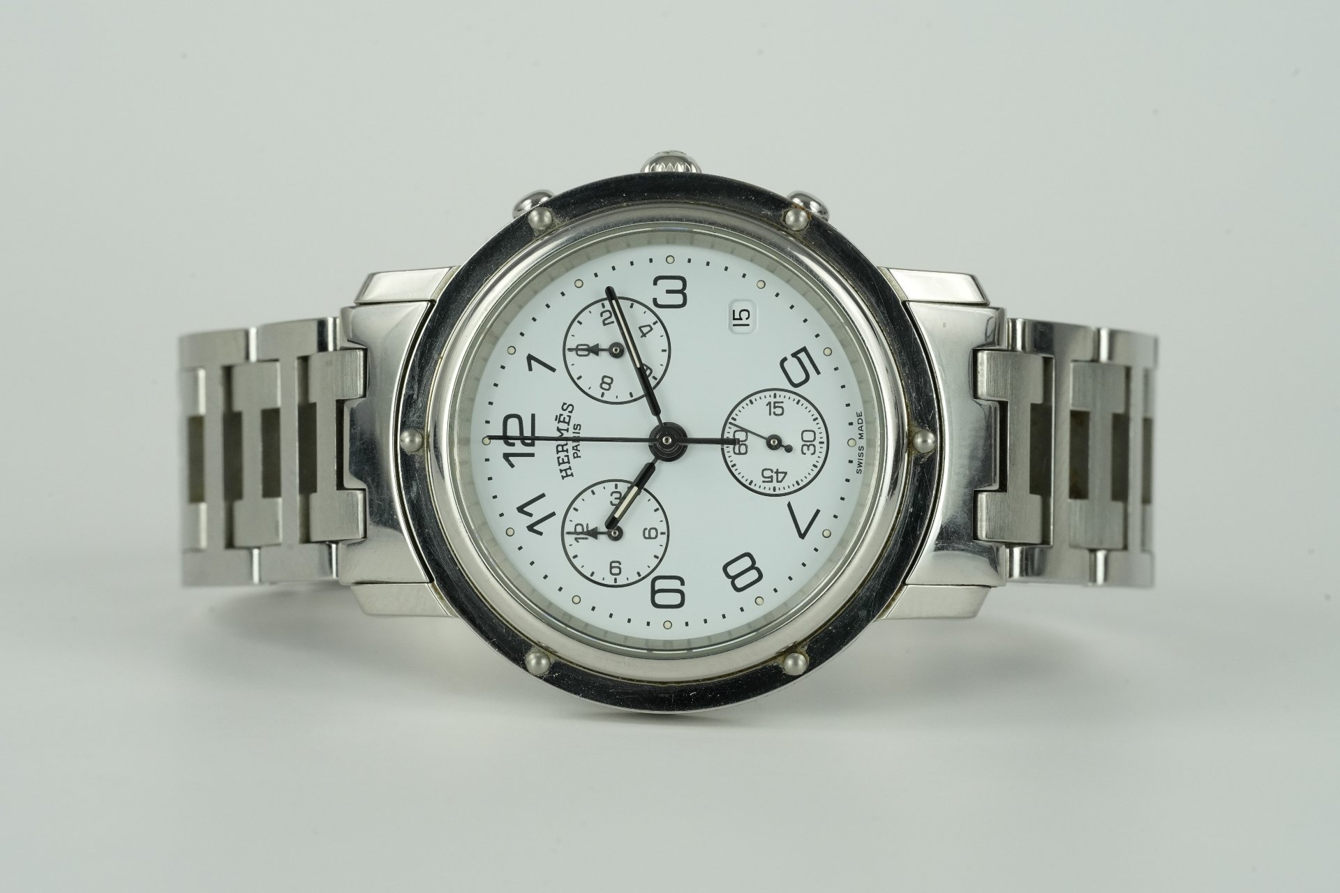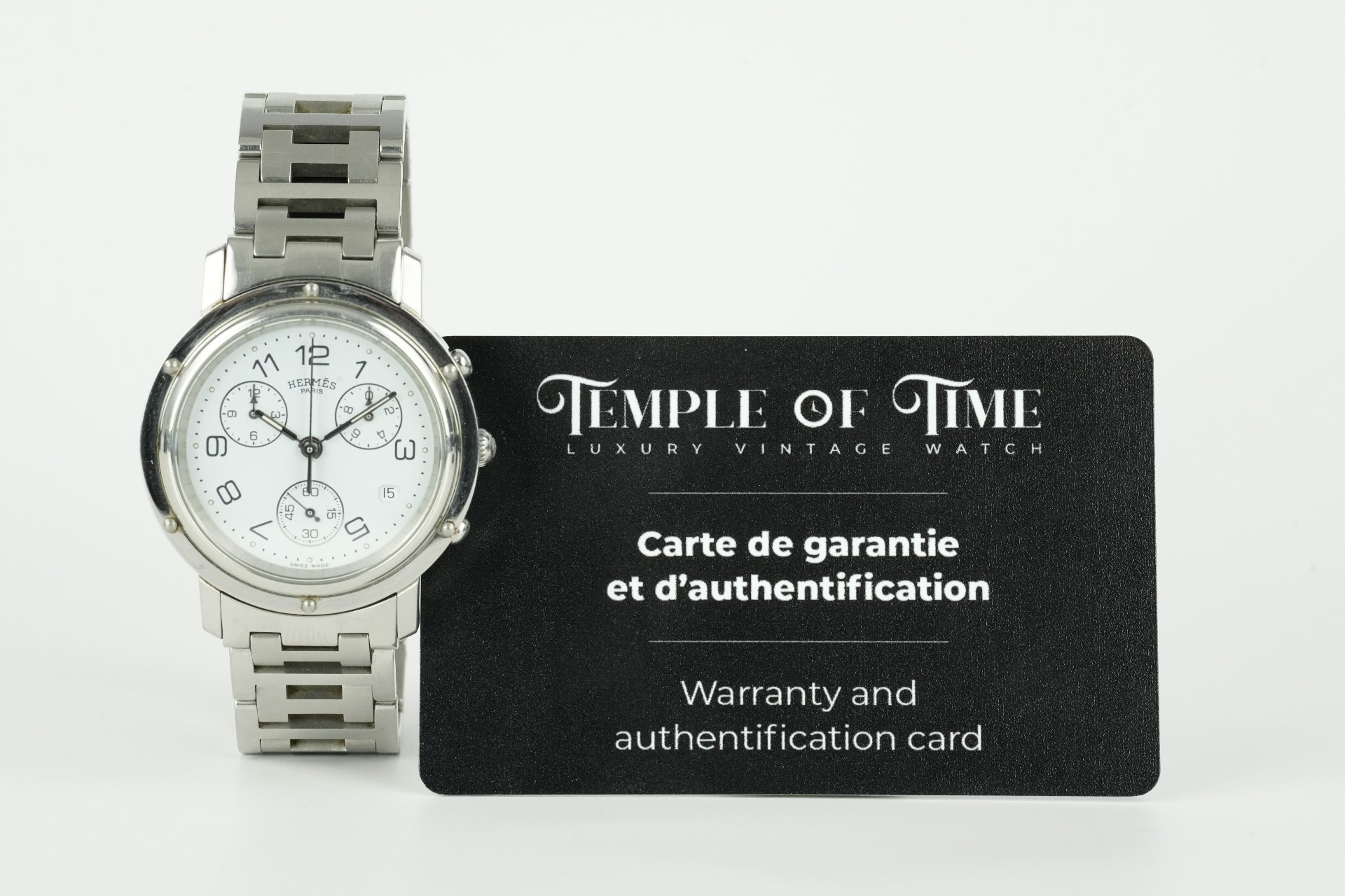 Plongez dans l’univers de l’élégance intemporelle avec ce chronographe Hermès Clipper, référence commerciale CL1.910. Cette pièce unisexe d’une grande polyvalence est animée par un mouvement Quartz d’une précision irréprochable. Son boîtier en acier de 38 mm de diamètre et 10.4 mm d’épaisseur abrite un cadran sophistiqué. Le bracelet en acier d’origine, complété par sa boucle déployante d’origine, assure un confort optimal et une esthétique harmonieuse. Affichant un bon état général, cette montre est étanche jusqu’à 3 ATM. Elle est proposée dans sa configuration seule et bénéficie d’une garantie de 12 mois.