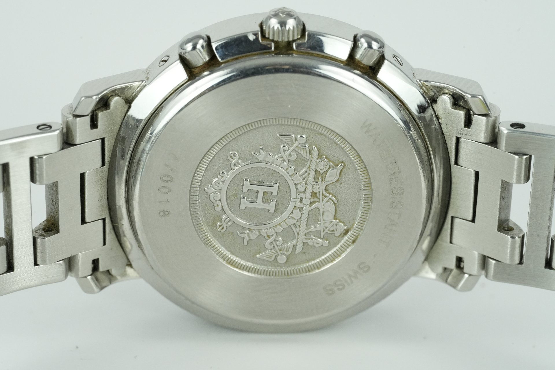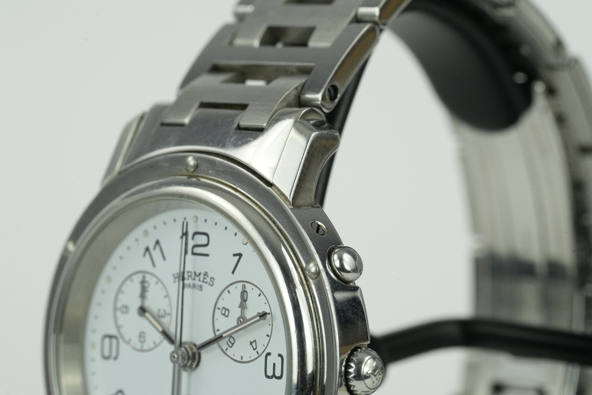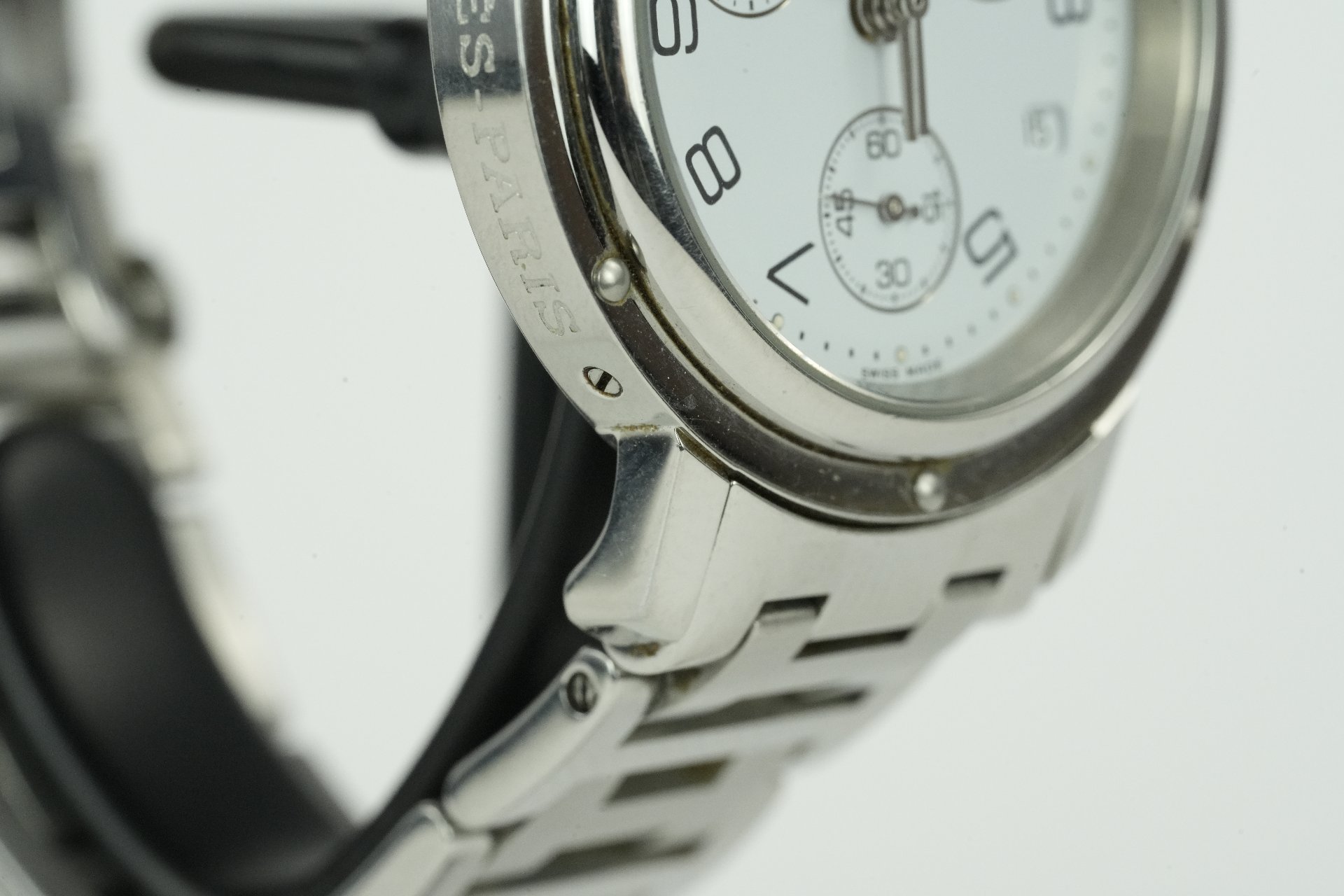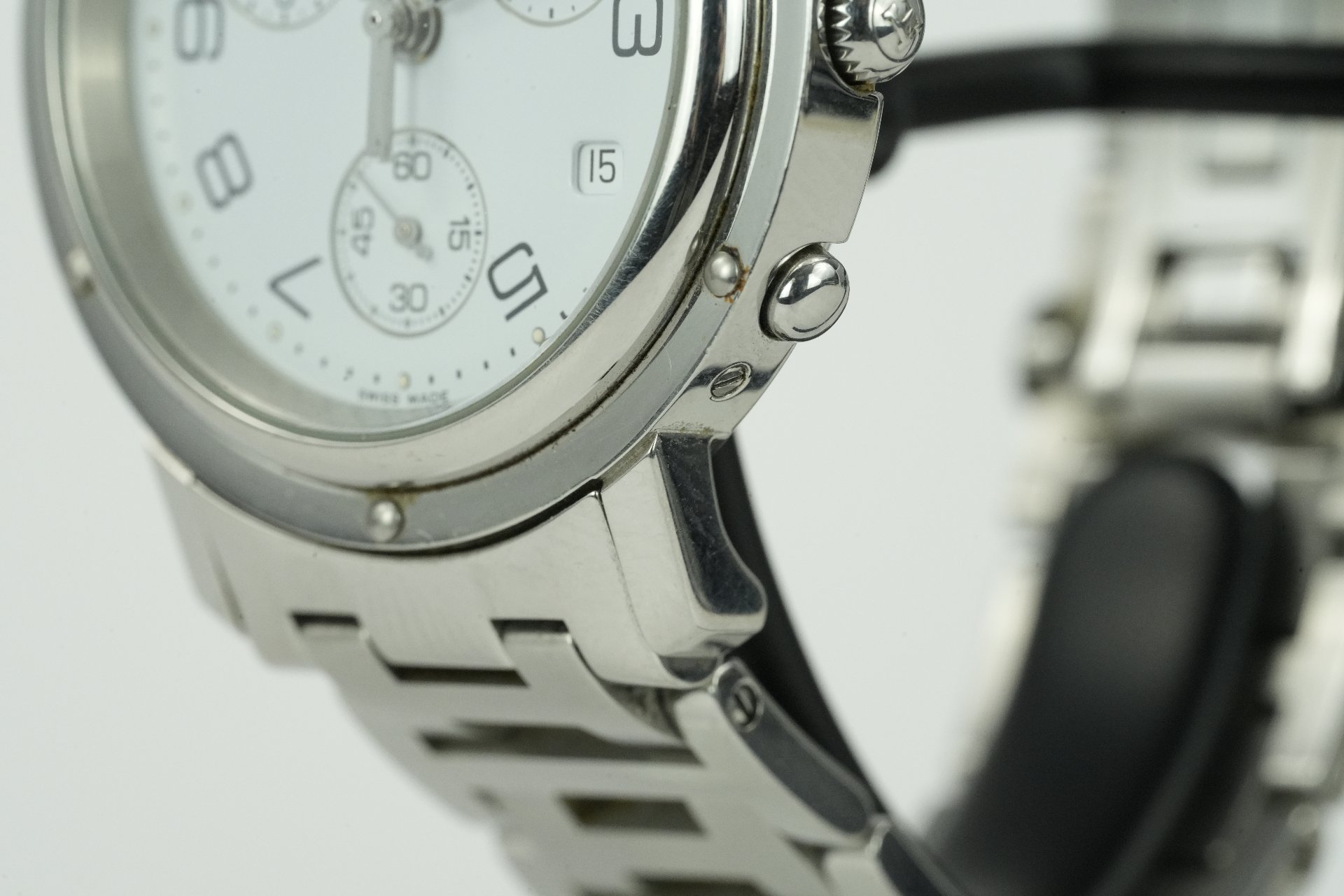Plongez dans l’univers de l’élégance intemporelle avec ce chronographe Hermès Clipper, référence commerciale CL1.910. Cette pièce unisexe d’une grande polyvalence est animée par un mouvement Quartz d’une précision irréprochable. Son boîtier en acier de 38 mm de diamètre et 10.4 mm d’épaisseur abrite un cadran sophistiqué. Le bracelet en acier d’origine, complété par sa boucle déployante d’origine, assure un confort optimal et une esthétique harmonieuse. Affichant un bon état général, cette montre est étanche jusqu’à 3 ATM. Elle est proposée dans sa configuration seule et bénéficie d’une garantie de 12 mois.