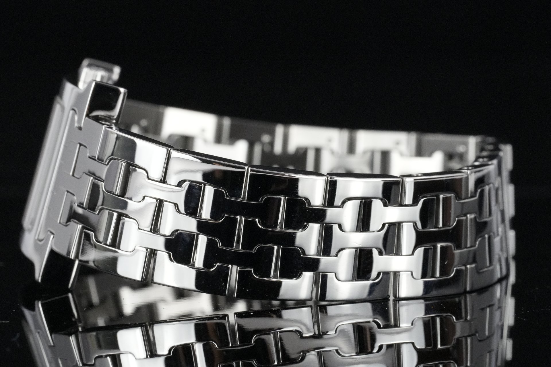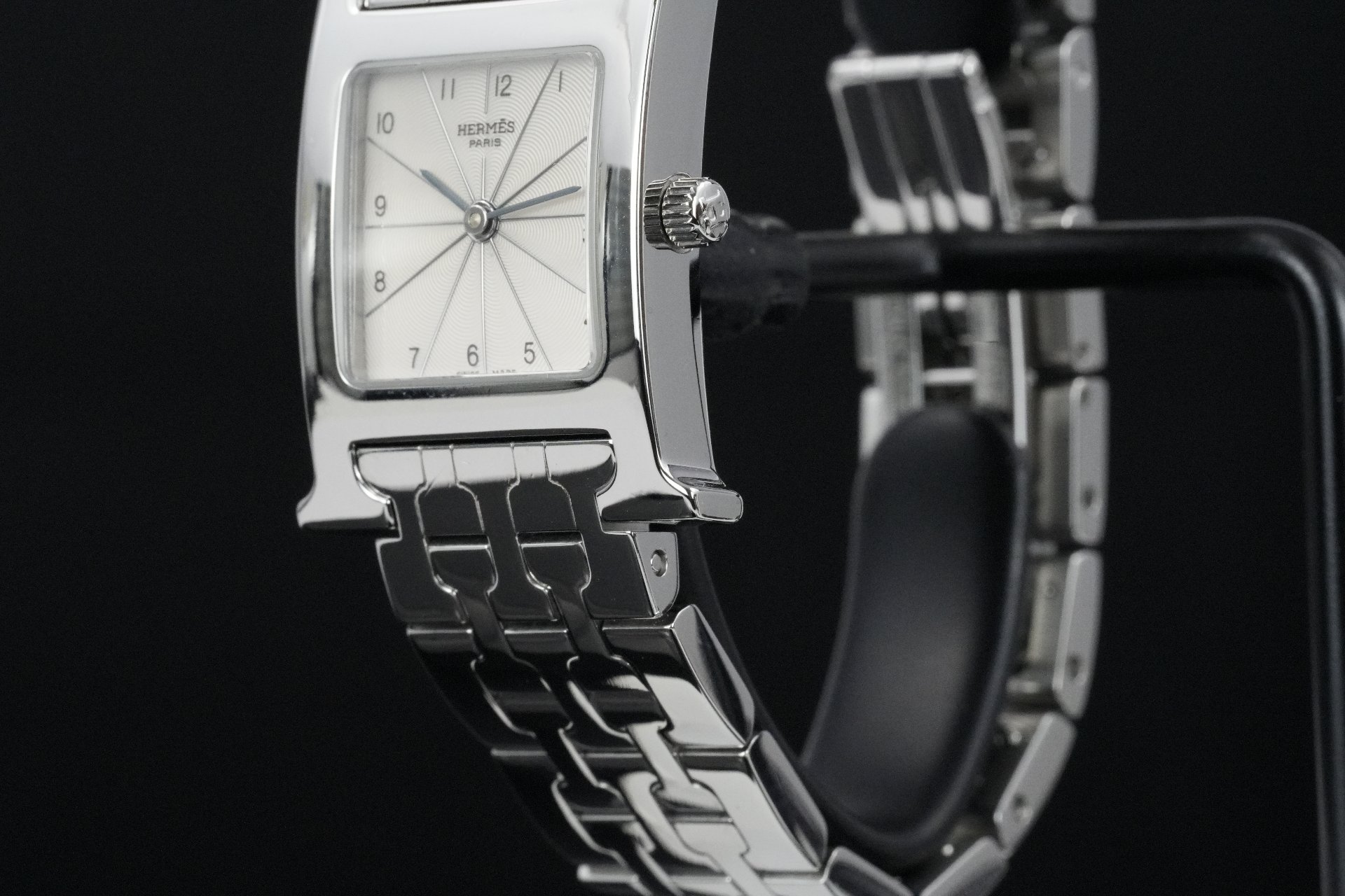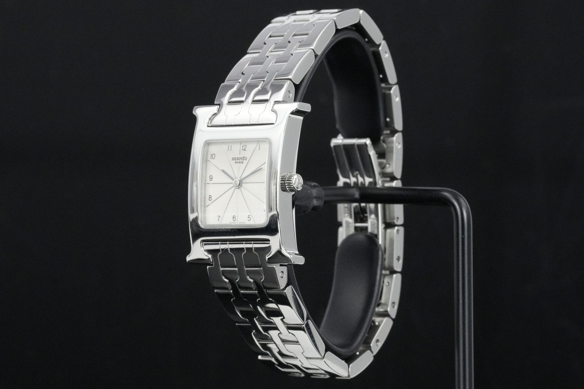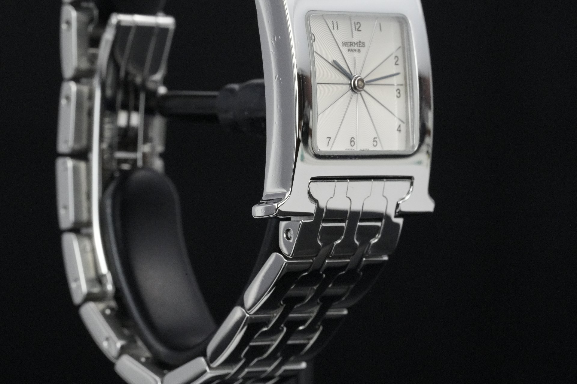 Élégance intemporelle pour le poignet féminin, cette montre Hermès Heure H, référence HH1.210, incarne la sophistication discrète. Son boîtier en acier de 21mm, d’une épaisseur délicate de 6.5mm, abrite un mouvement à quartz d’une grande précision. Le bracelet en acier, d’une longueur de 16.5 cm, est original et s’accorde parfaitement avec la boucle déployante double plis, également originale. Ce modèle, livré en montre seule, est en très bon état et s’accompagne d’une garantie de 12 mois. Référence TOT-01725