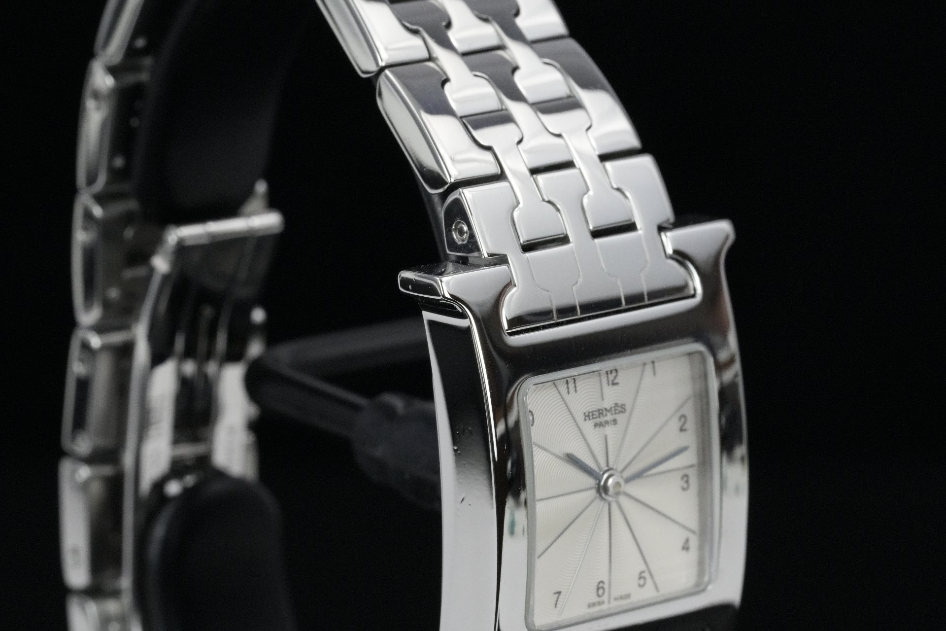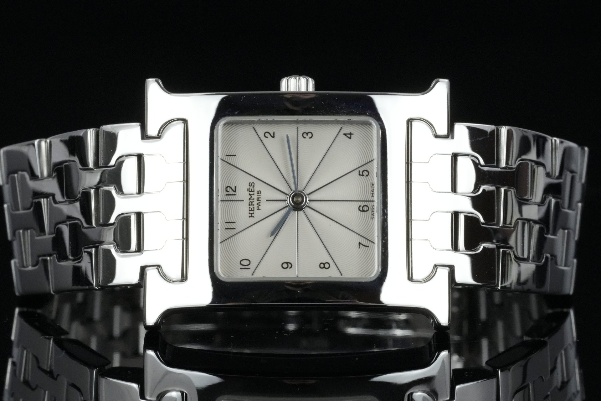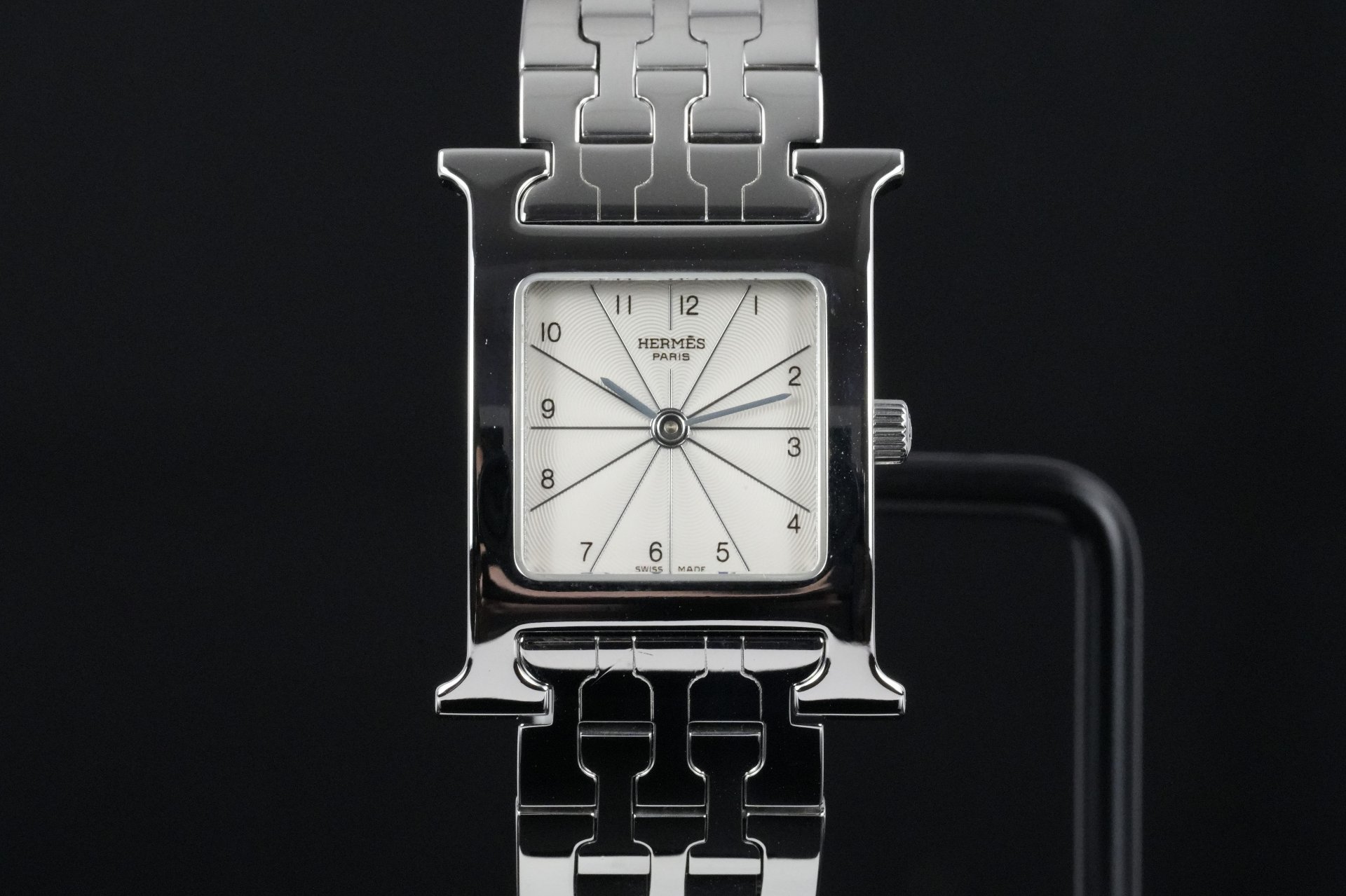 Élégance intemporelle pour le poignet féminin, cette montre Hermès Heure H, référence HH1.210, incarne la sophistication discrète. Son boîtier en acier de 21mm, d’une épaisseur délicate de 6.5mm, abrite un mouvement à quartz d’une grande précision. Le bracelet en acier, d’une longueur de 16.5 cm, est original et s’accorde parfaitement avec la boucle déployante double plis, également originale. Ce modèle, livré en montre seule, est en très bon état et s’accompagne d’une garantie de 12 mois. Référence TOT-01725
