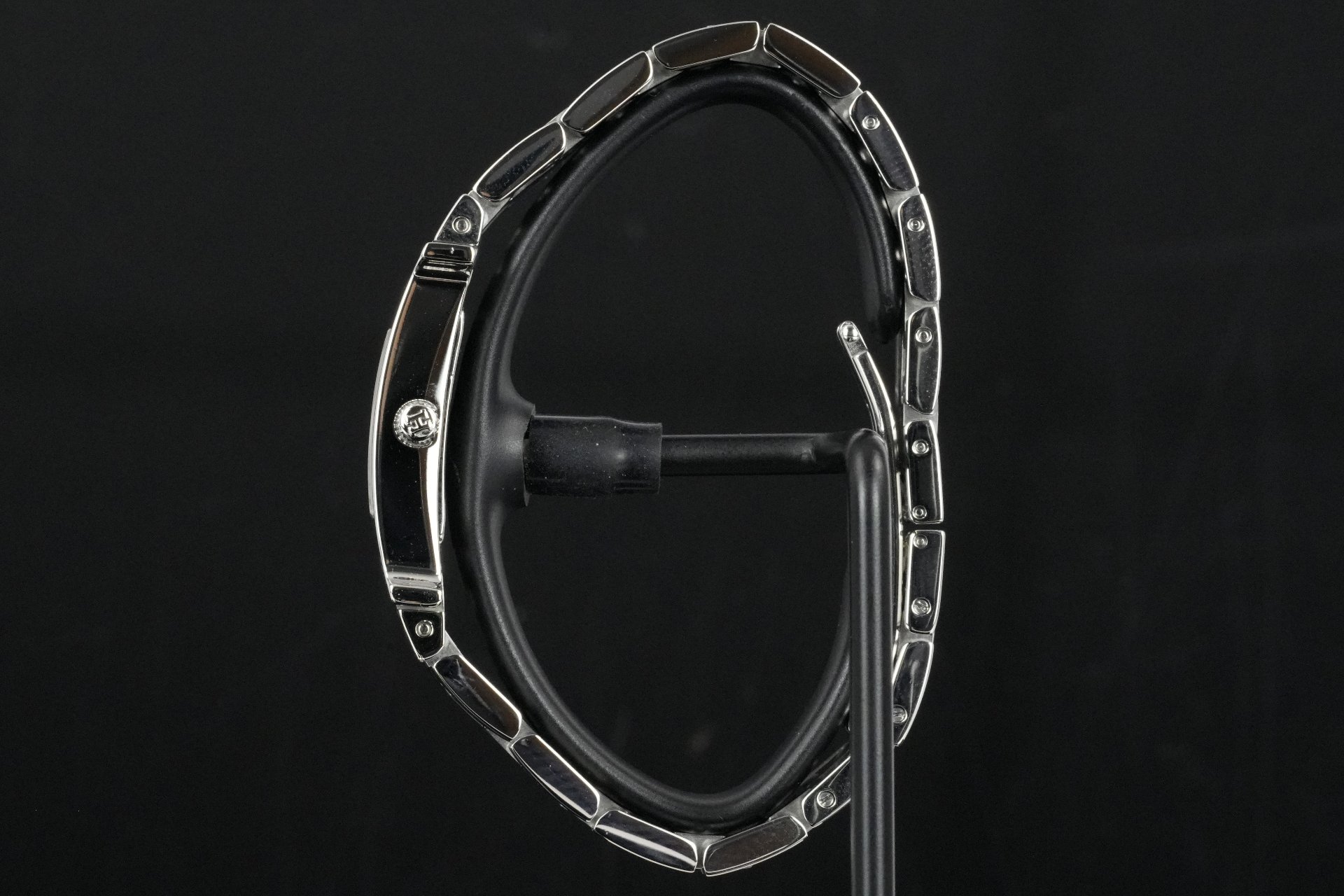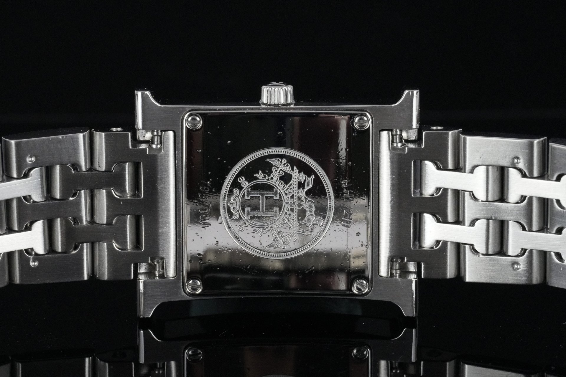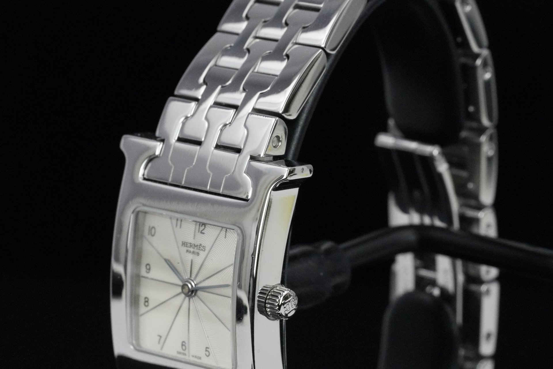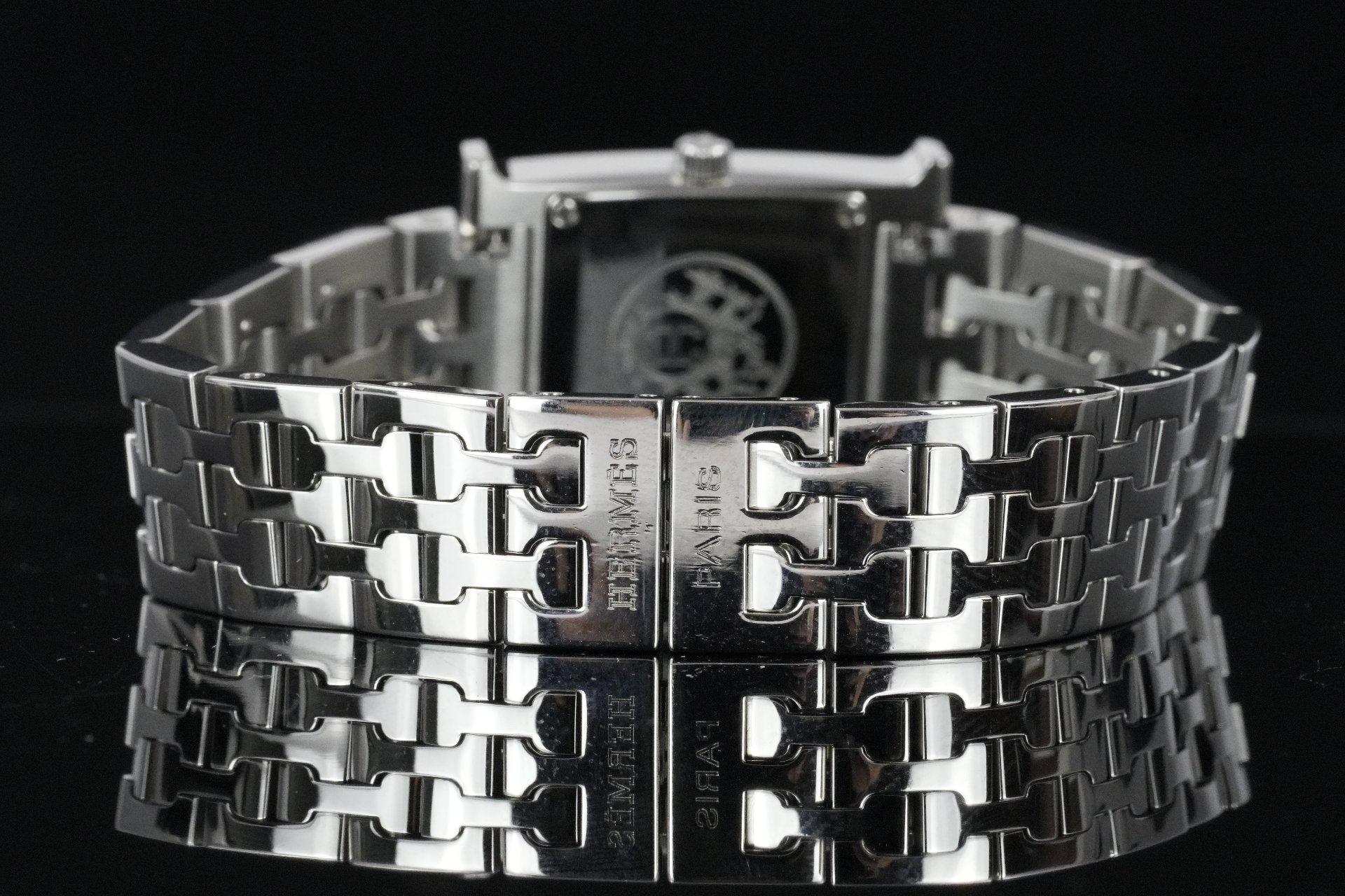 Élégance intemporelle pour le poignet féminin, cette montre Hermès Heure H, référence HH1.210, incarne la sophistication discrète. Son boîtier en acier de 21mm, d’une épaisseur délicate de 6.5mm, abrite un mouvement à quartz d’une grande précision. Le bracelet en acier, d’une longueur de 16.5 cm, est original et s’accorde parfaitement avec la boucle déployante double plis, également originale. Ce modèle, livré en montre seule, est en très bon état et s’accompagne d’une garantie de 12 mois. Référence TOT-01725