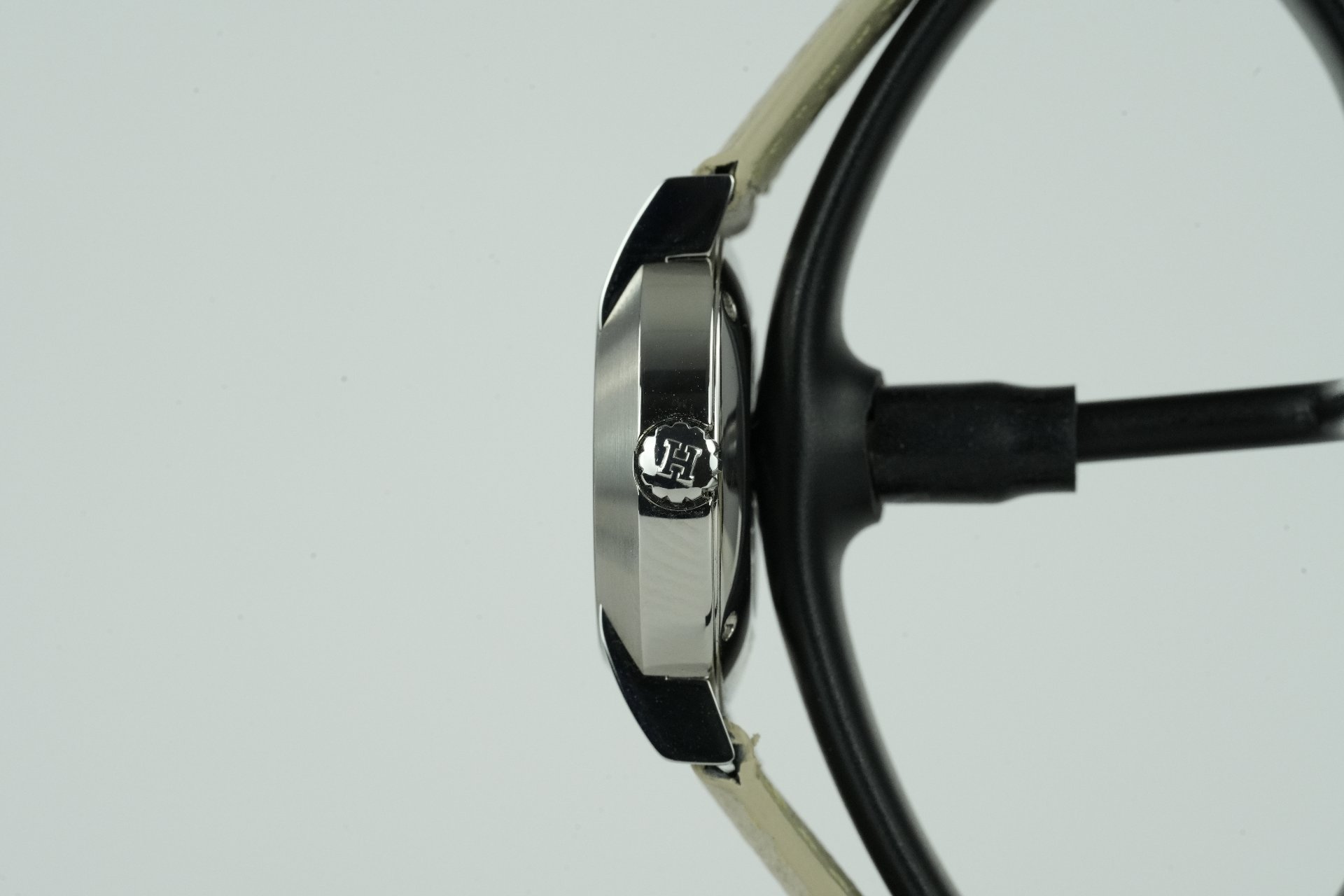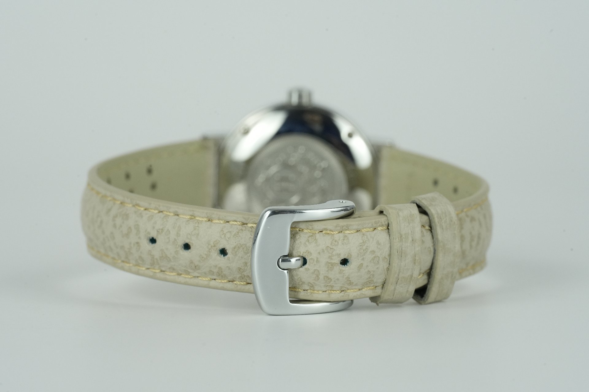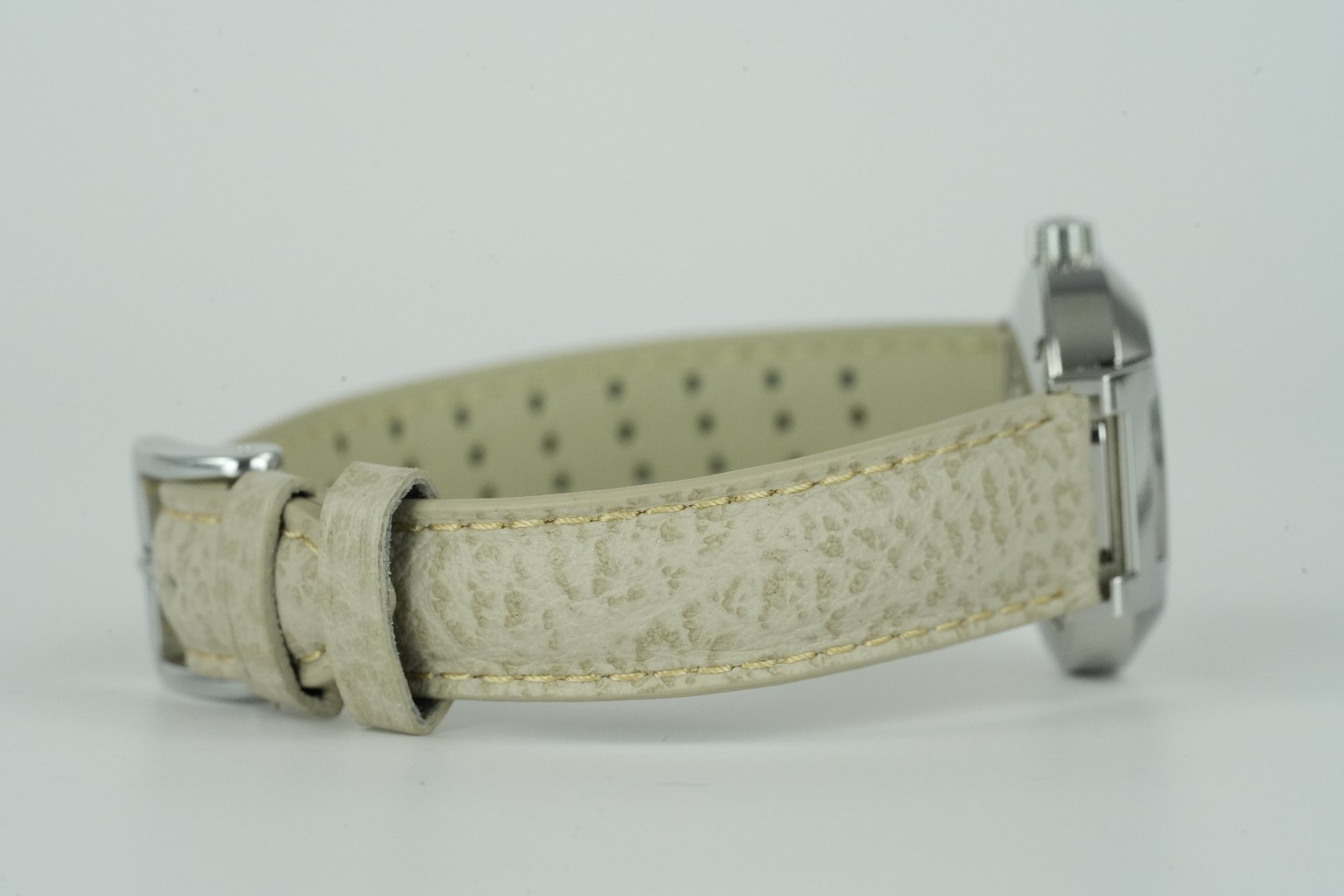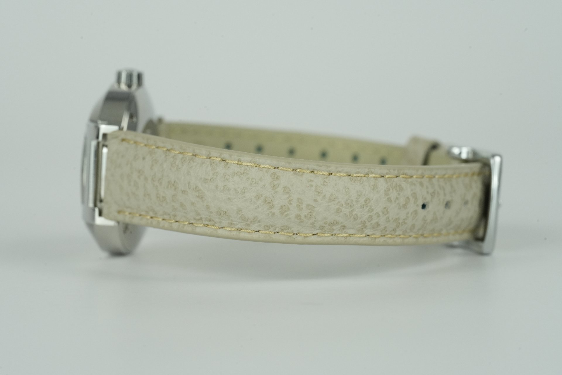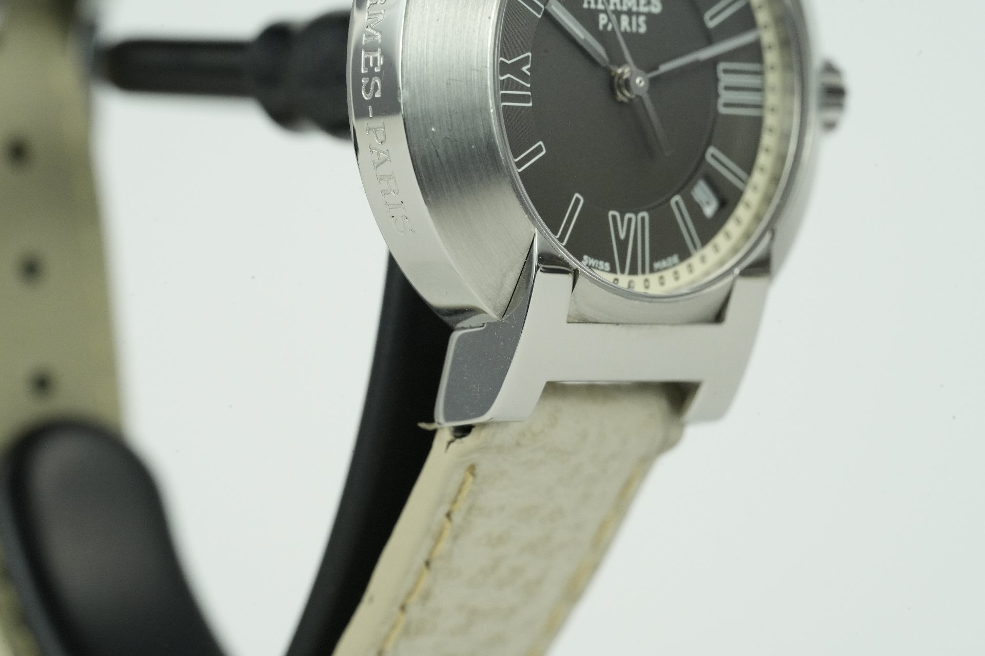 Découvrez l’élégance intemporelle avec cette montre Hermès Nomade, référence commerciale NO1.210 (TOT-01351). Conçue pour la femme moderne, elle incarne la discrétion et le raffinement. Animée par un mouvement à remontage automatique, elle offre une précision et une fiabilité irréprochables. Son boîtier en acier de 27.5mm de diamètre et 8.5mm d’épaisseur garantit un confort optimal au poignet. L’étanchéité de 5 ATM assure une résistance à l’eau pour un usage quotidien. Cette montre, en très bon état, est livrée seule. La révision et le polissage datant de novembre 2025, réalisé par Hermès, assure une garantie de 24 mois. Son bracelet en cuir blanc et sa boucle ardillon, bien que non originaux, complètent harmonieusement son design épuré.