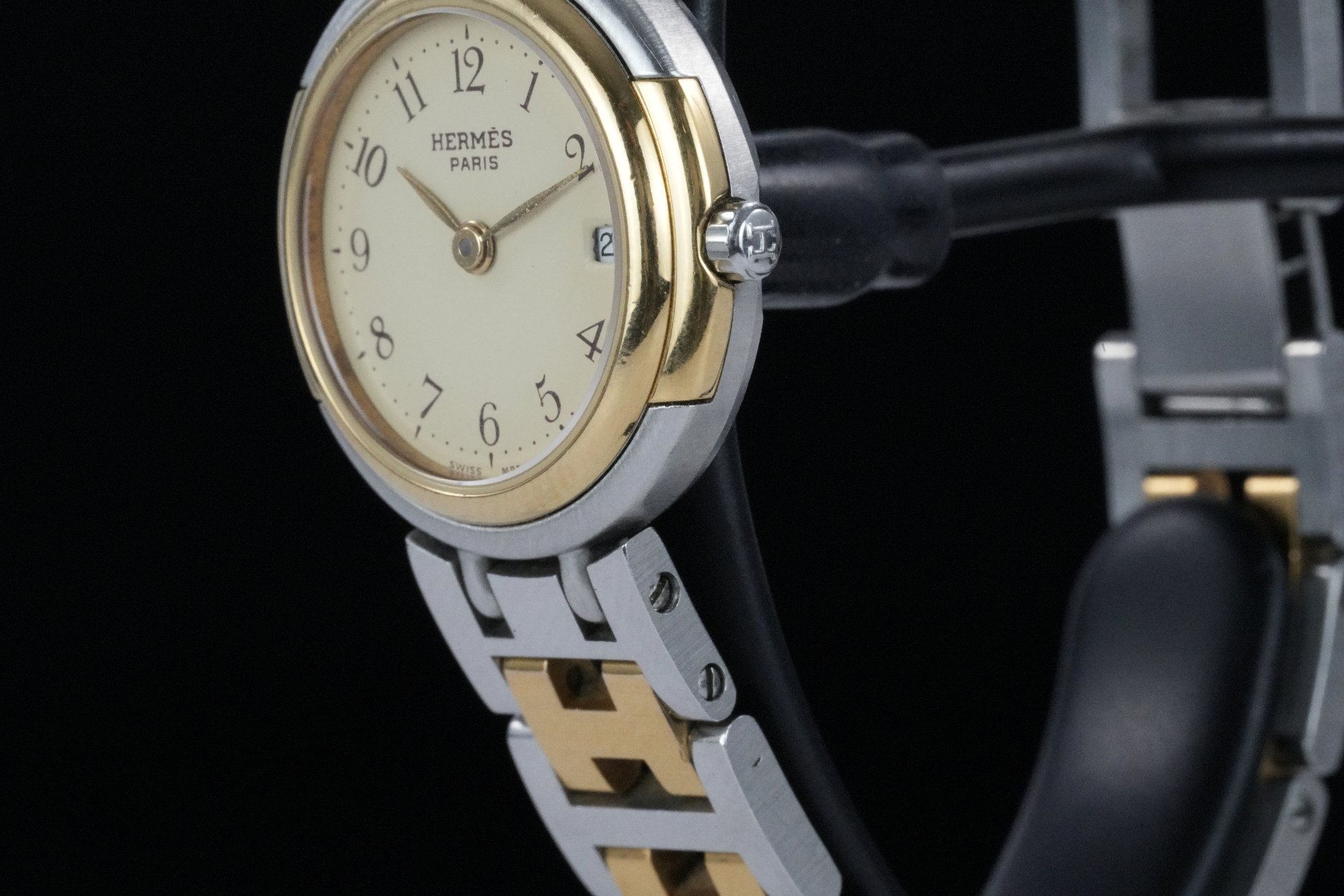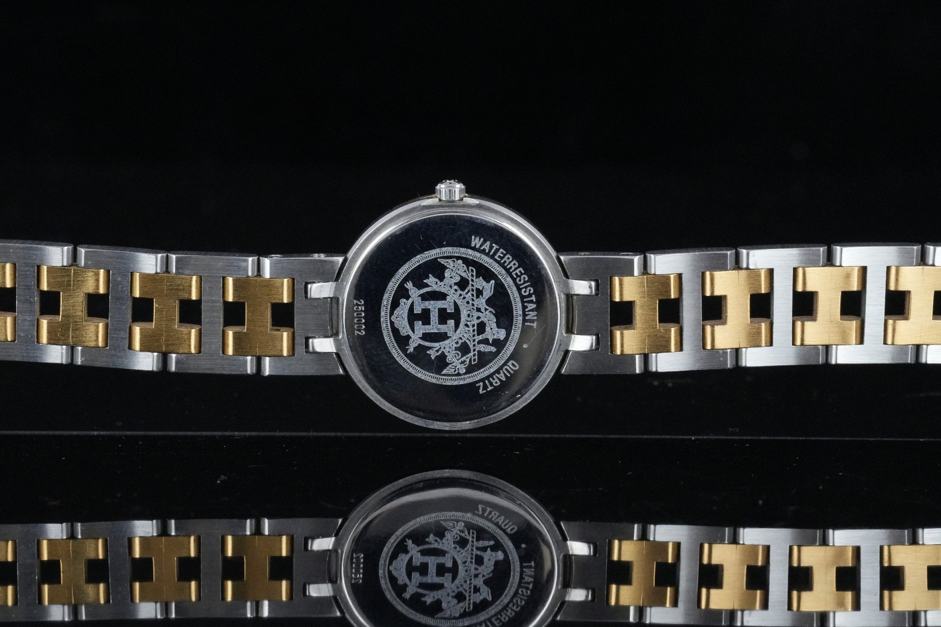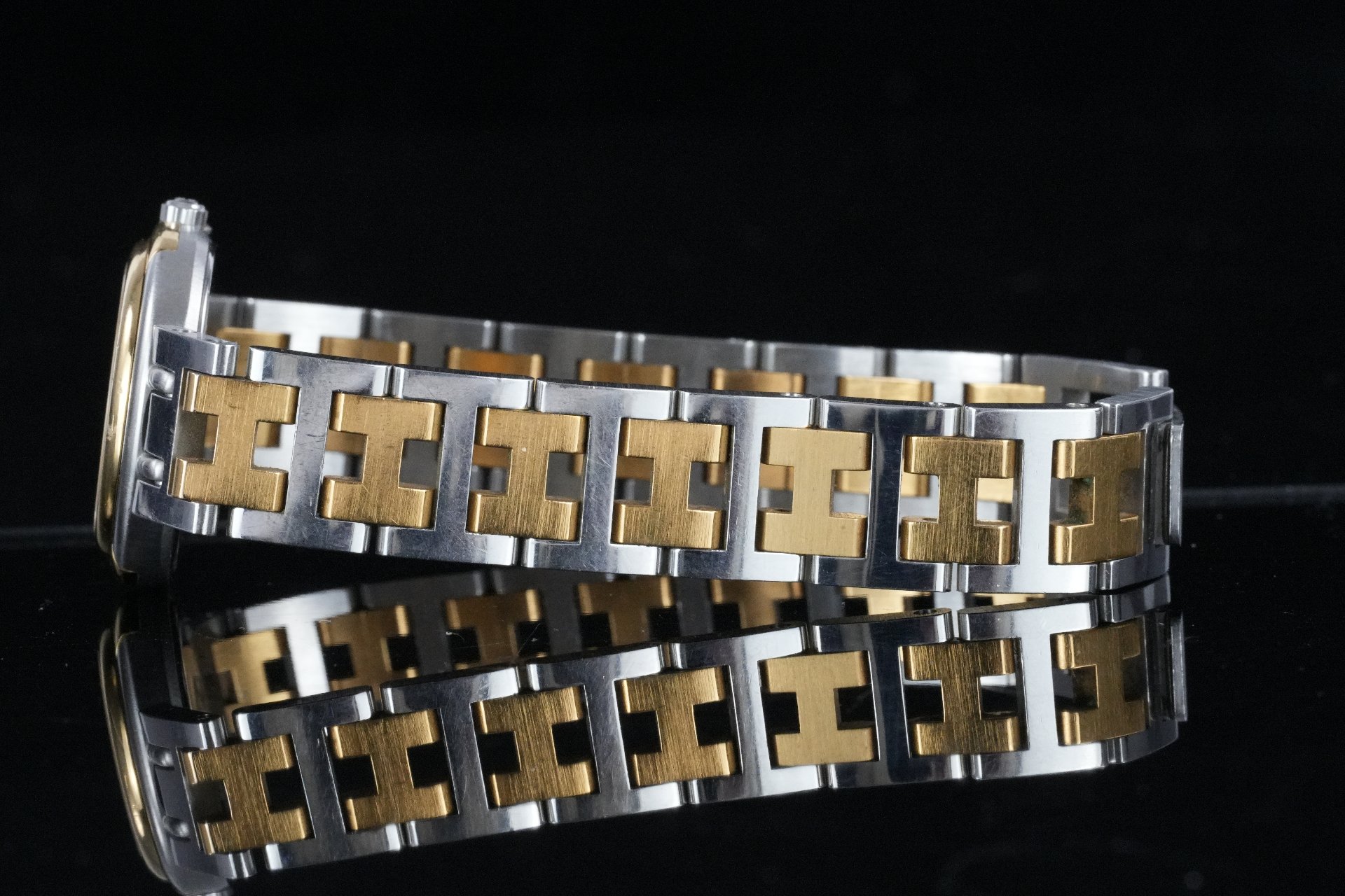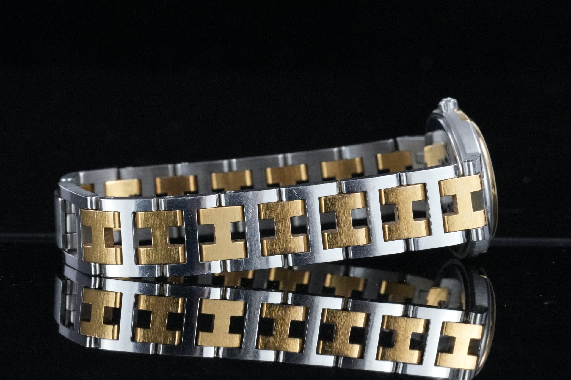 Découvrez l’élégance intemporelle de la montre Hermès Windsor, référence commerciale 62.03. Destinée à la femme raffinée, cette pièce emblématique allie discrétion et sophistication. Son boîtier en acier de 24mm de diamètre et 5.6mm d’épaisseur abrite un mouvement à Quartz précis. Le bracelet original en acier bicolore Or/Acier, d’une longueur de 17 cm, se ferme par une boucle joaillère également d’origine, garantissant une esthétique cohérente. Étanche jusqu’à 3 ATM, cette montre bénéficie d’une garantie de 12 mois, confirmant son bon état. Référence TOT-01810.