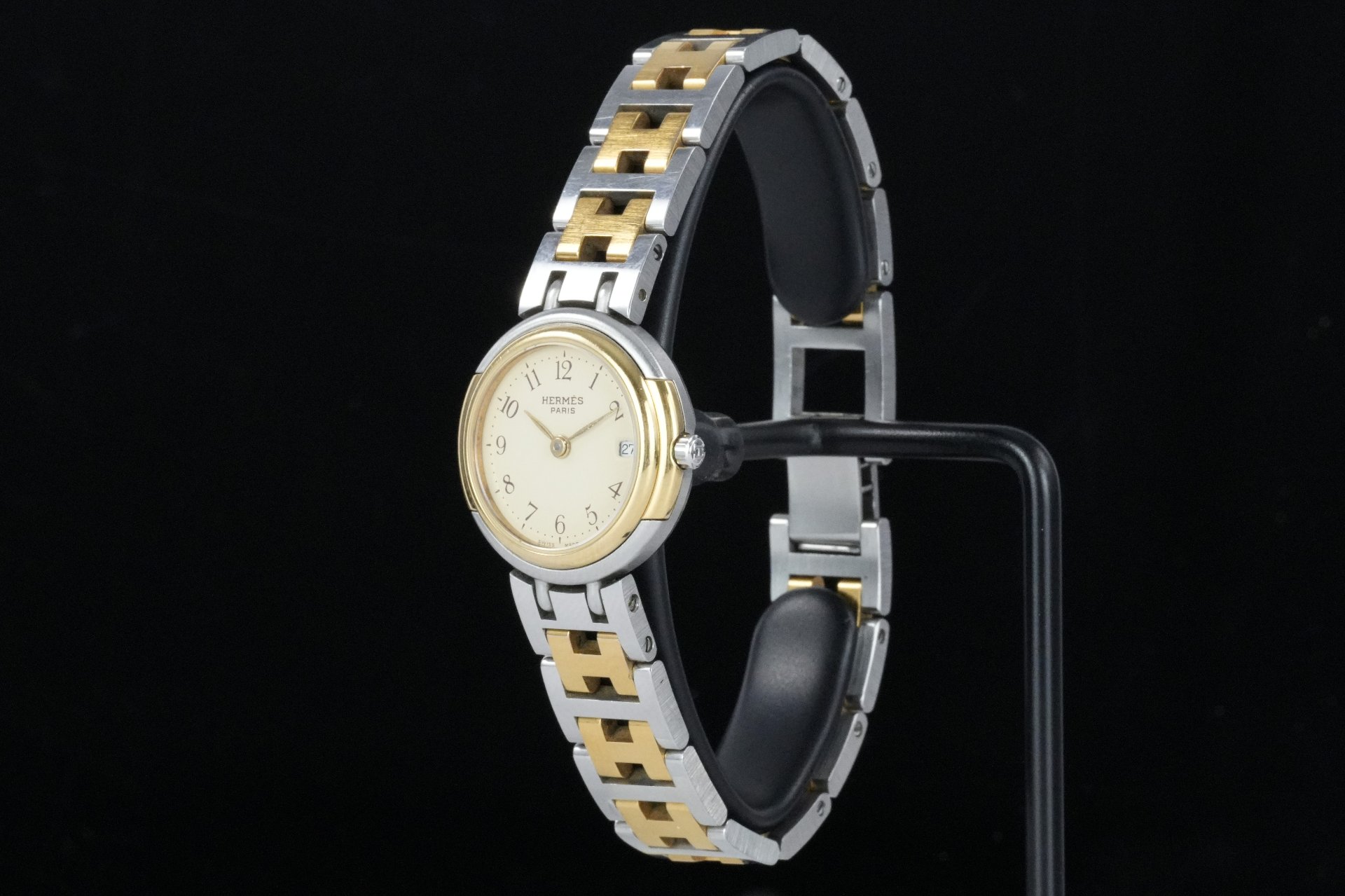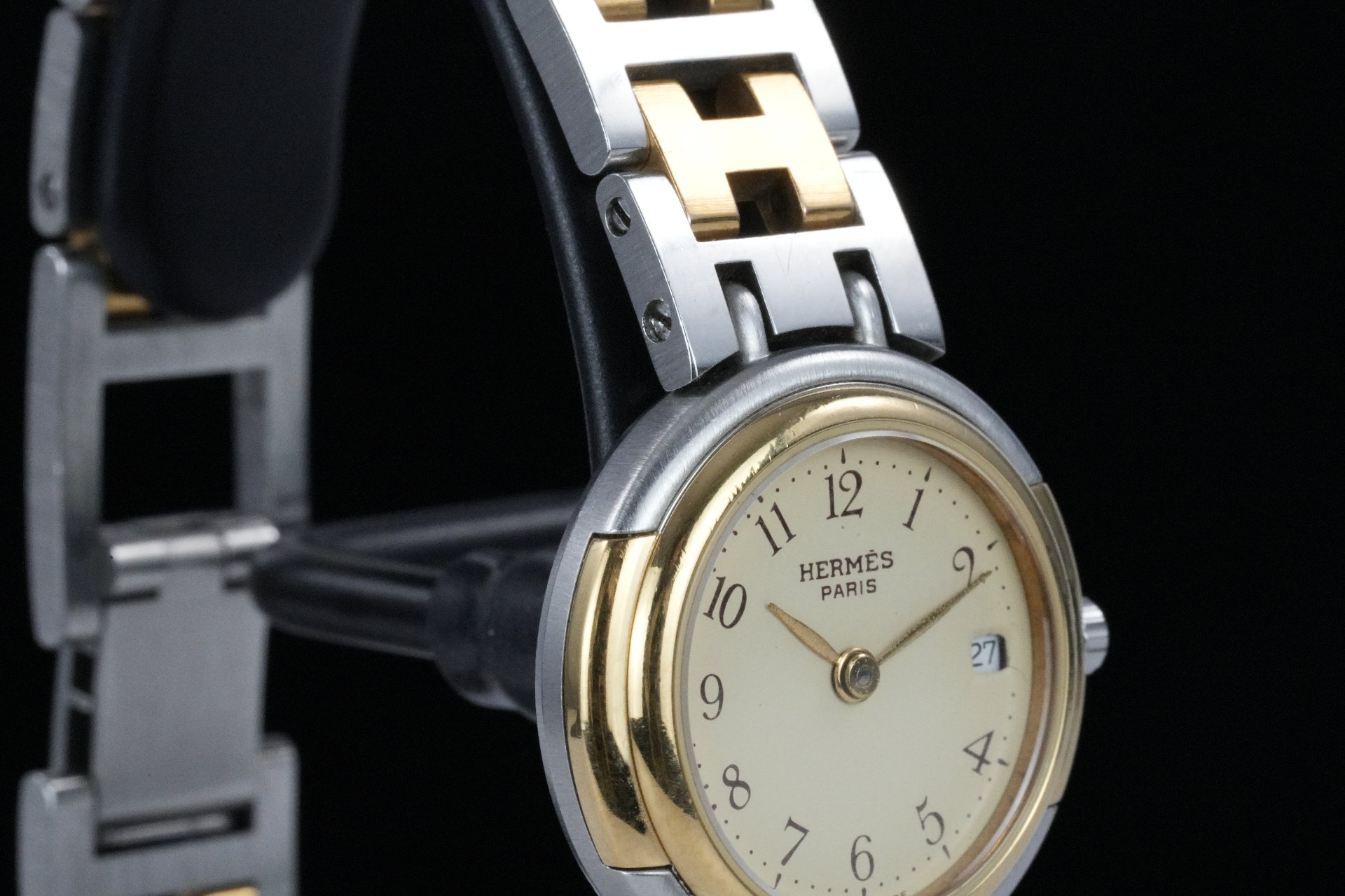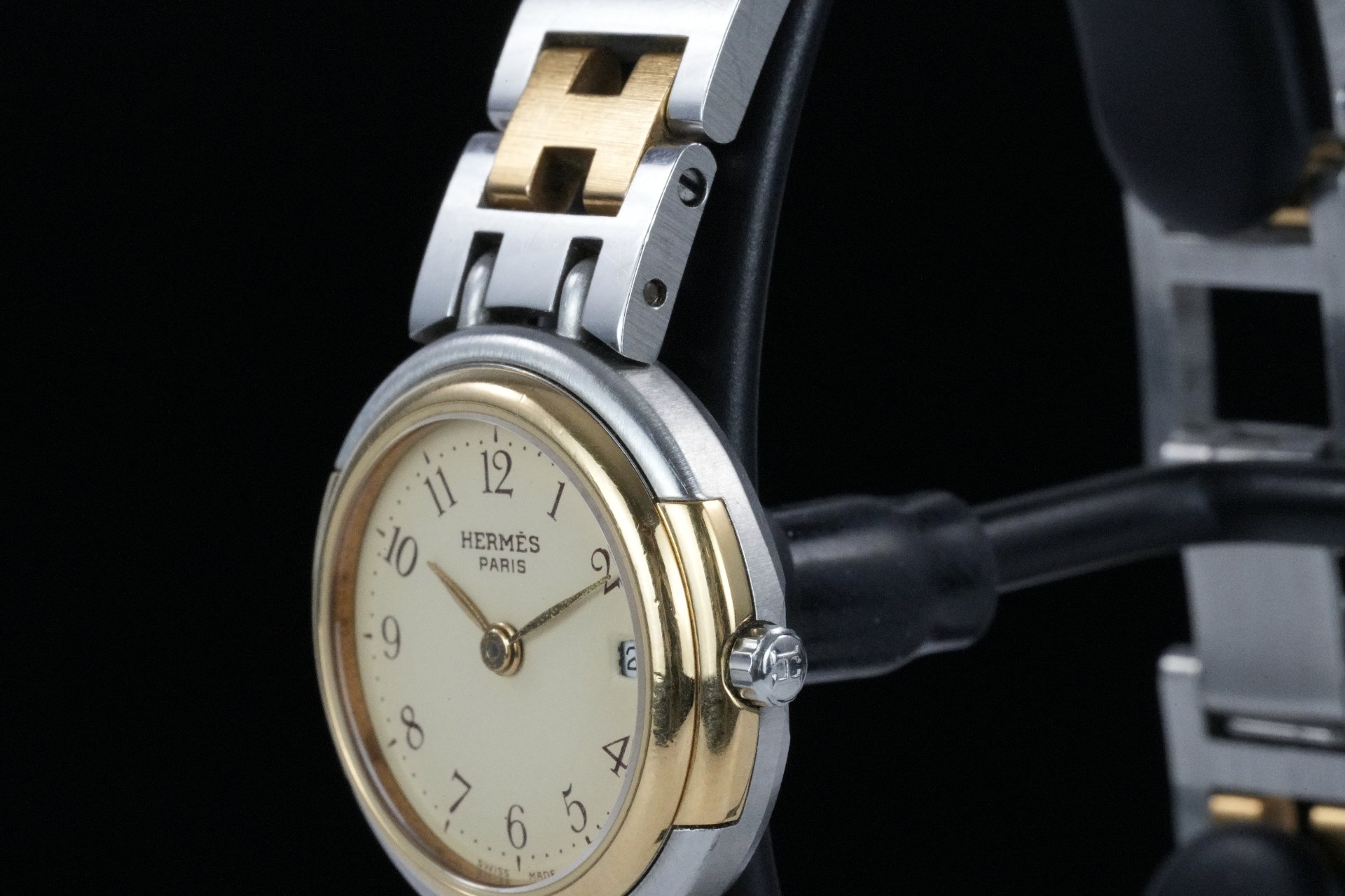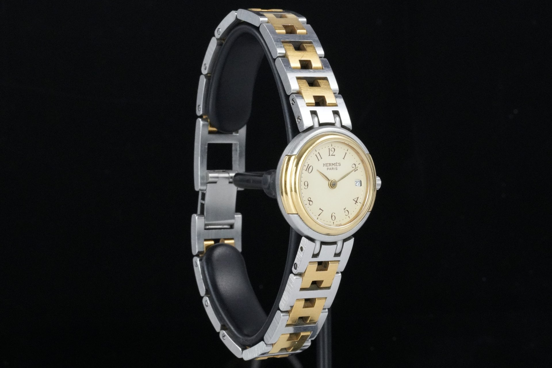 Découvrez l’élégance intemporelle de la montre Hermès Windsor, référence commerciale 62.03. Destinée à la femme raffinée, cette pièce emblématique allie discrétion et sophistication. Son boîtier en acier de 24mm de diamètre et 5.6mm d’épaisseur abrite un mouvement à Quartz précis. Le bracelet original en acier bicolore Or/Acier, d’une longueur de 17 cm, se ferme par une boucle joaillère également d’origine, garantissant une esthétique cohérente. Étanche jusqu’à 3 ATM, cette montre bénéficie d’une garantie de 12 mois, confirmant son bon état. Référence TOT-01810.