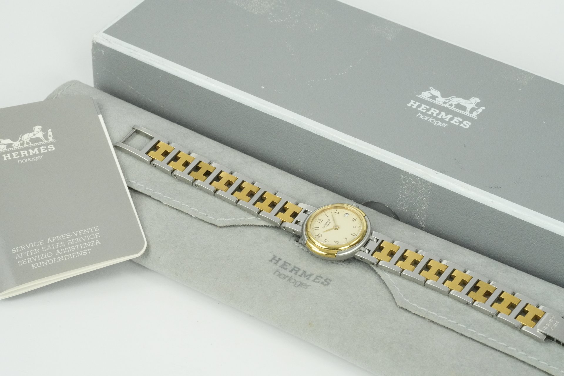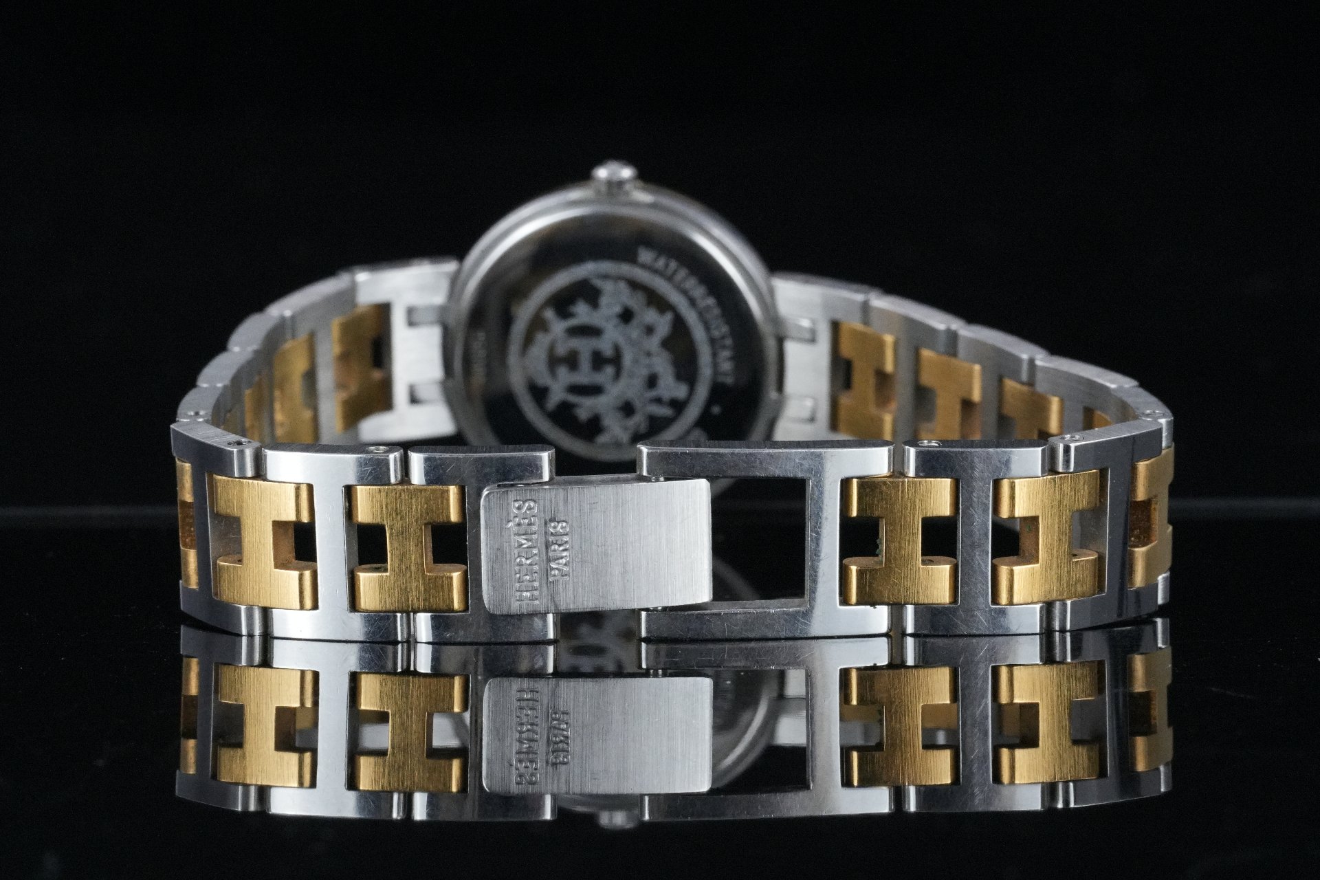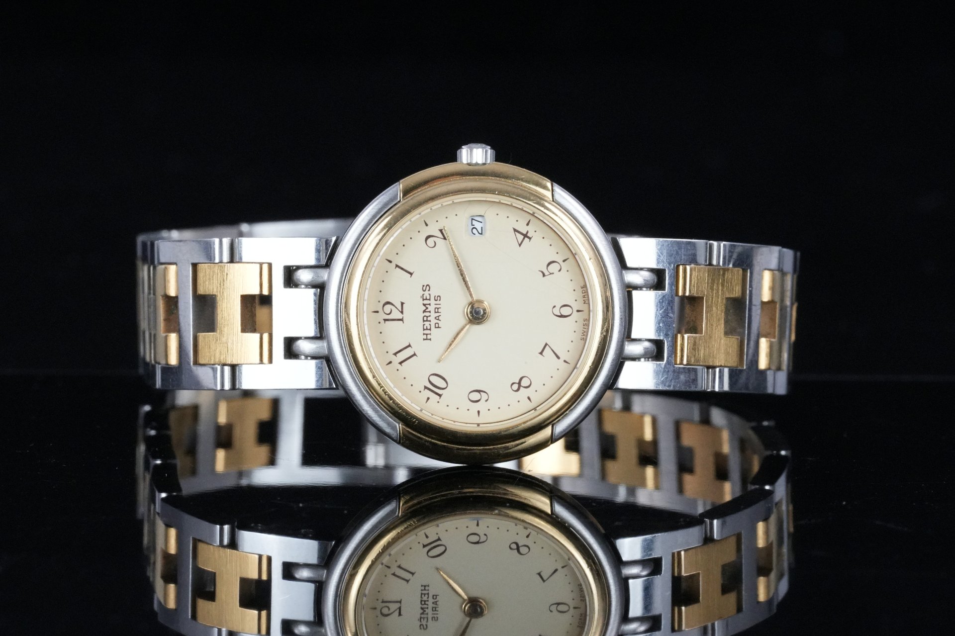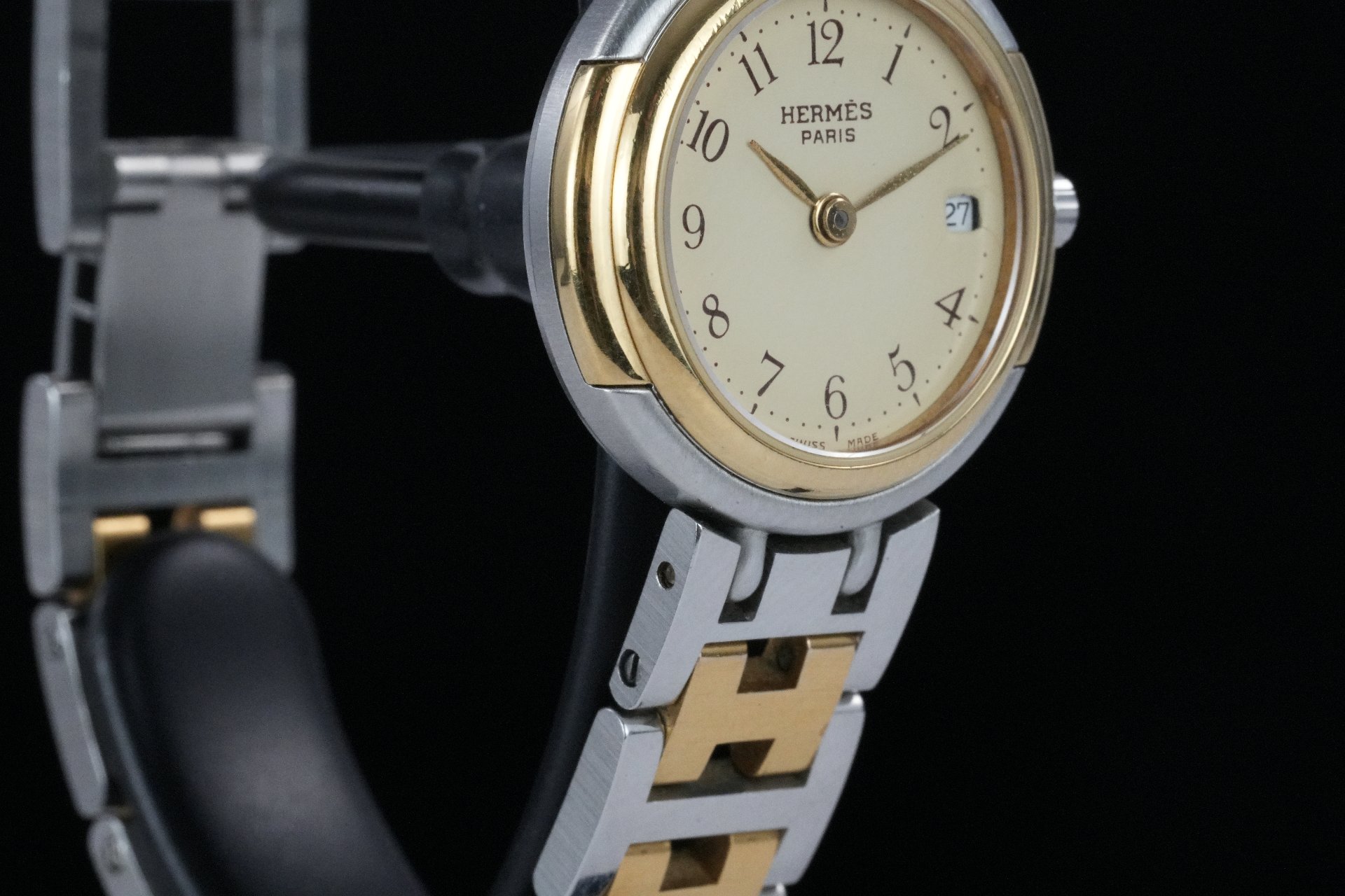 Découvrez l’élégance intemporelle de la montre Hermès Windsor, référence commerciale 62.03. Destinée à la femme raffinée, cette pièce emblématique allie discrétion et sophistication. Son boîtier en acier de 24mm de diamètre et 5.6mm d’épaisseur abrite un mouvement à Quartz précis. Le bracelet original en acier bicolore Or/Acier, d’une longueur de 17 cm, se ferme par une boucle joaillère également d’origine, garantissant une esthétique cohérente. Étanche jusqu’à 3 ATM, cette montre bénéficie d’une garantie de 12 mois, confirmant son bon état. Référence TOT-01810.