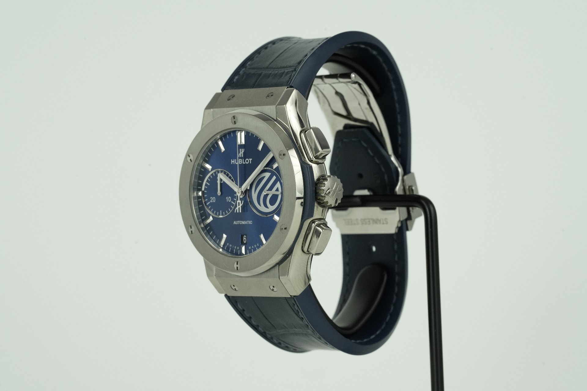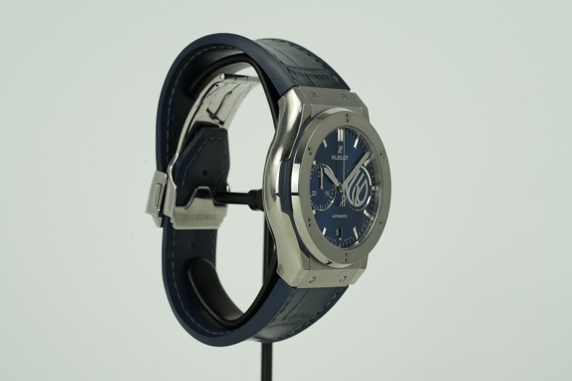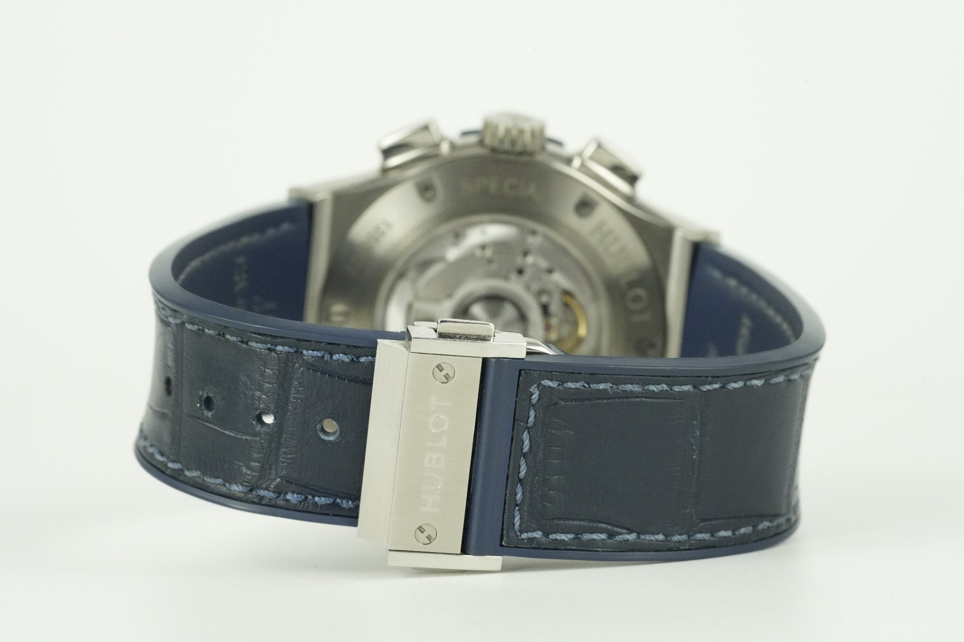 Découvrez l’élégance audacieuse avec cette montre Hublot Classic Fusion « Swiss Medical Network », référence commerciale 521.NX.7170.LR.SMN18. Conçue pour l’homme moderne, elle se distingue par son boîtier robuste en titane de 45mm, mesurant 13mm d’épaisseur, alliant caractère et légèreté. Le mouvement à remontage automatique assure une précision mécanique irréprochable. Son bracelet original en cuir bleu, accompagné d’une boucle déployante également originale, offre un confort sophistiqué et une touche de couleur distinctive. Étanche jusqu’à 5 ATM, ce modèle de 2022 est livré avec son coffret, en très bon état. Cette pièce est couverte par une garantie de 12 mois.