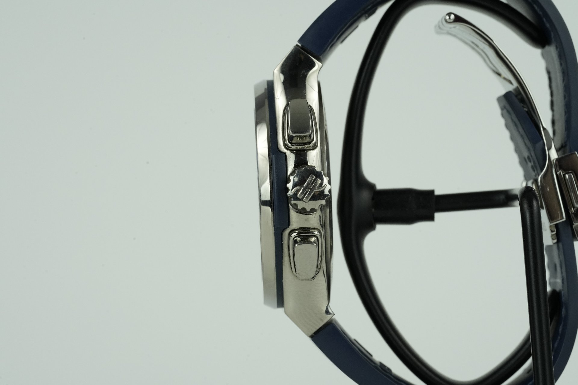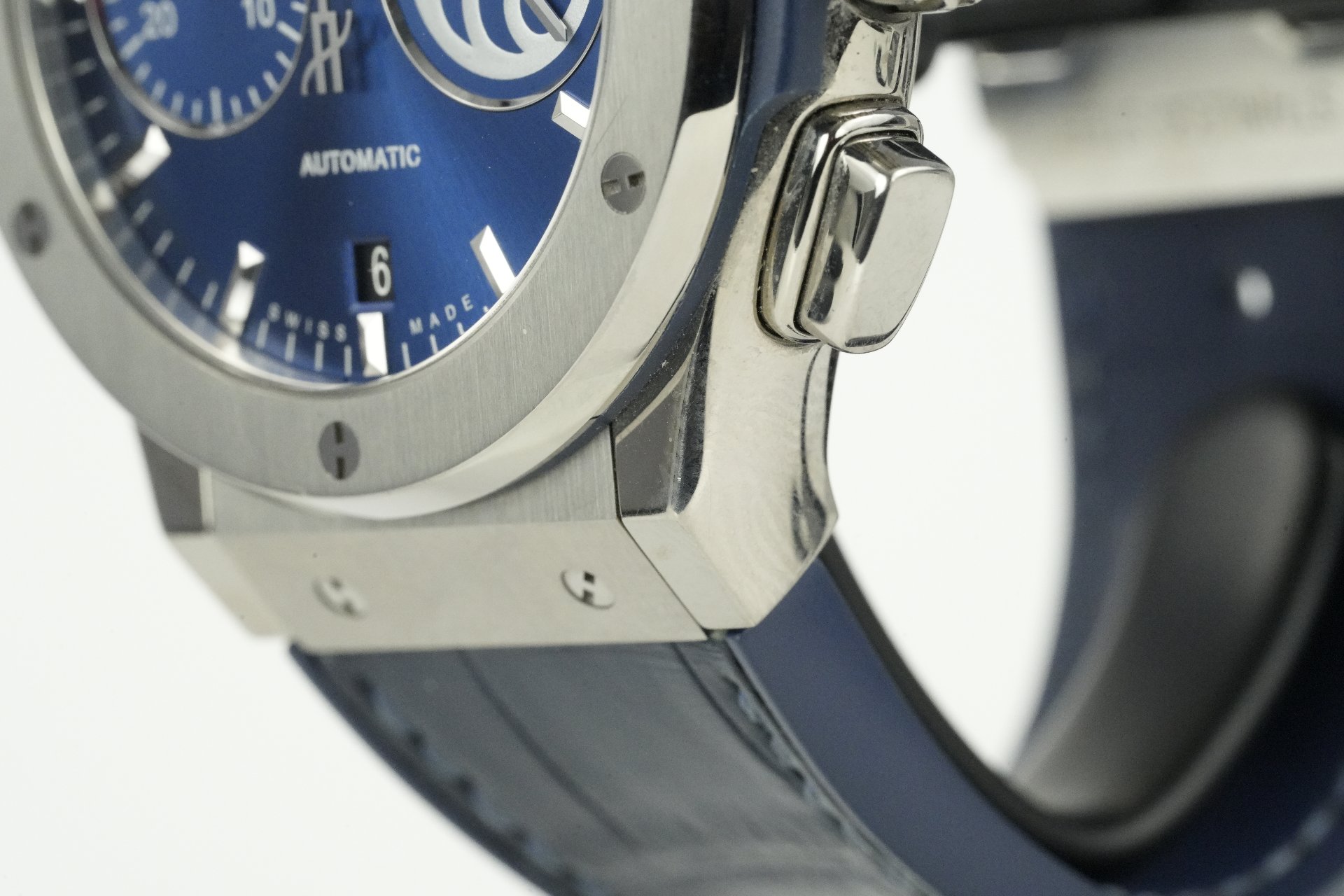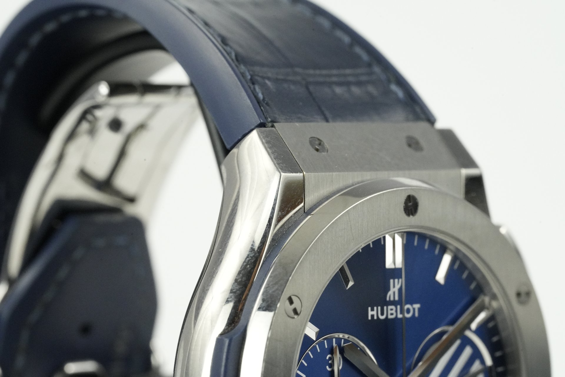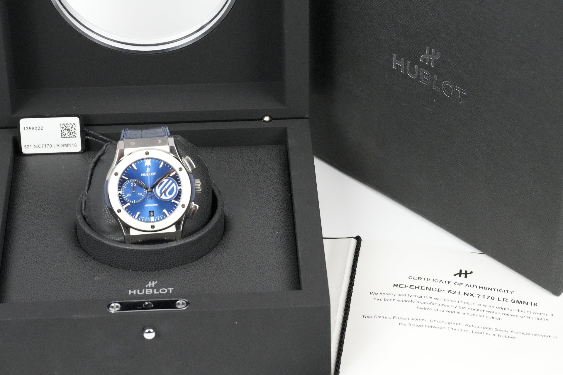 Découvrez l’élégance audacieuse avec cette montre Hublot Classic Fusion « Swiss Medical Network », référence commerciale 521.NX.7170.LR.SMN18. Conçue pour l’homme moderne, elle se distingue par son boîtier robuste en titane de 45mm, mesurant 13mm d’épaisseur, alliant caractère et légèreté. Le mouvement à remontage automatique assure une précision mécanique irréprochable. Son bracelet original en cuir bleu, accompagné d’une boucle déployante également originale, offre un confort sophistiqué et une touche de couleur distinctive. Étanche jusqu’à 5 ATM, ce modèle de 2022 est livré avec son coffret, en très bon état. Cette pièce est couverte par une garantie de 12 mois.