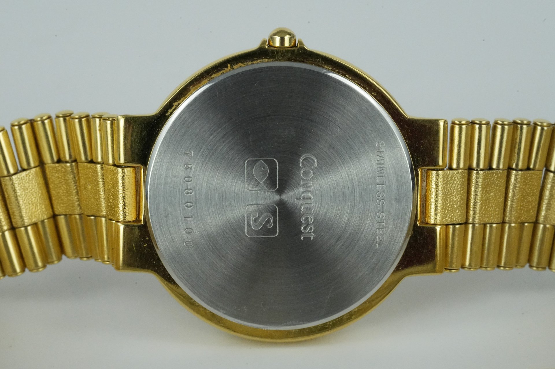 Découvrez l’élégance intemporelle de la Longines Conquest, référence 156 3277. Ce modèle unisexe, d’une grande polyvalence, est animé par un mouvement à quartz garantissant une précision irréprochable. Son boîtier en acier de 32.1mm de diamètre et 5.8mm d’épaisseur abrite un cadran raffiné. Le bracelet original en acier, d’une teinte or vibrante, complété par une boucle déployante originale, assure un confort optimal et un style distinctif. Étanche jusqu’à 3 ATM, cette pièce est livrée seule. Elle bénéficie d’une garantie de 12 mois.