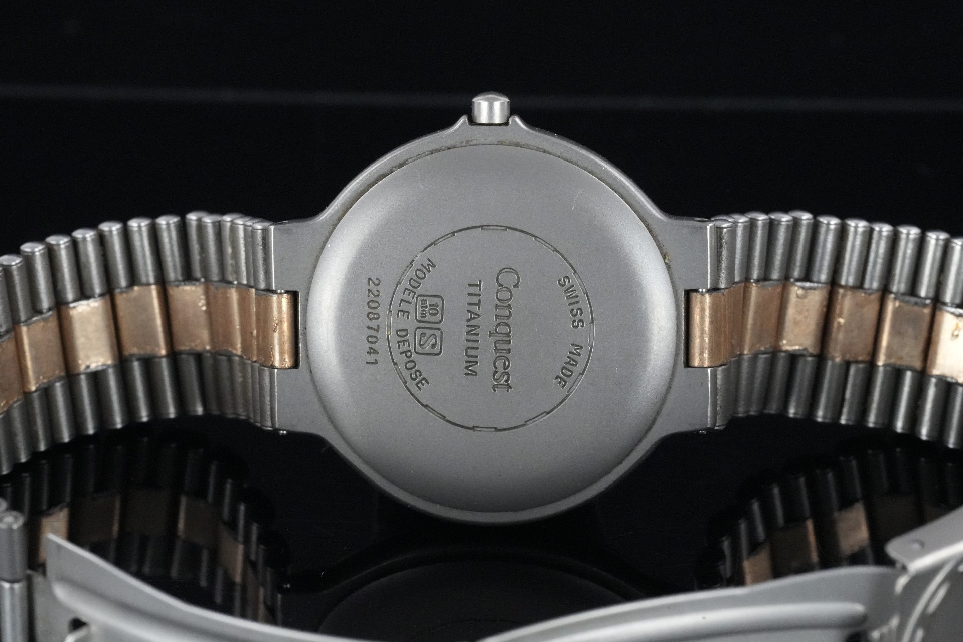 Découvrez la Longines Conquest Titanium (Réf. 161 4980), une montre unisexe alliant robustesse et élégance discrète. Son boîtier en titane de 32 mm de diamètre et 6 mm d’épaisseur abrite un mouvement à quartz précis. Le bracelet et la boucle déployante en titane gris sont originaux, offrant un confort optimal pour un poignet de 18,5 cm. Avec une étanchéité de 10 ATM (0 ATM testé en atelier), cette pièce est prête à vous accompagner au quotidien. Cette Longines Conquest est livrée seule et bénéficie d’une garantie de 12 mois. Référence TOT-01904.