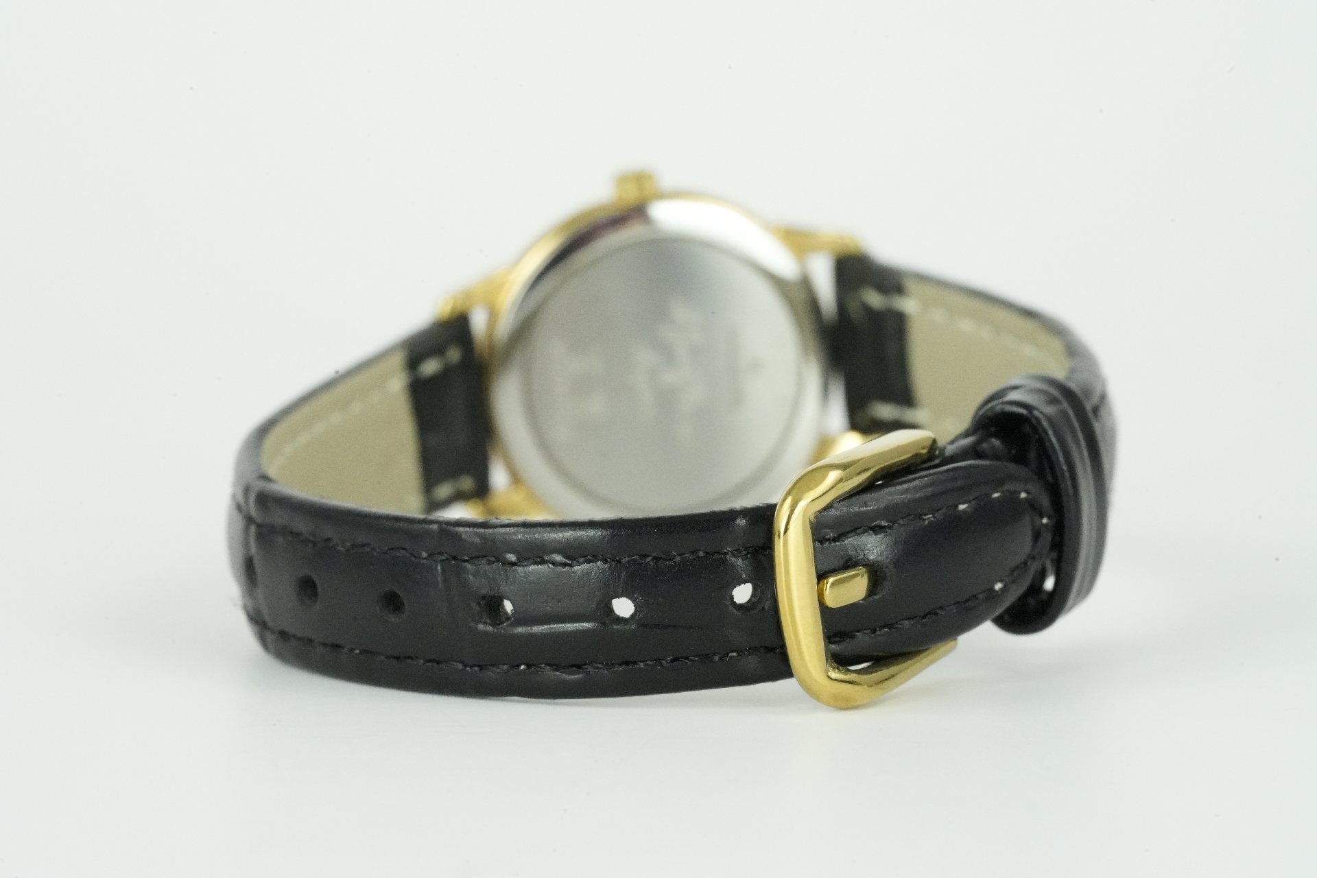 Découvrez l’élégance intemporelle avec cette montre Longines Les Grandes Classiques, référence commerciale L4.177.2 ( TOT-01676 ), un modèle raffiné conçu pour la femme. Son boîtier plaqué or de 24 mm de diamètre et de seulement 5.4 mm d’épaisseur abrite un mouvement Quartz précis. Le cadran est complété par un bracelet en cuir noir non original et une boucle ardillon non originale. Étanche jusqu’à 3 ATM, cette pièce est en bon état. Elle est livrée seule et bénéficie d’une garantie de 12 mois.