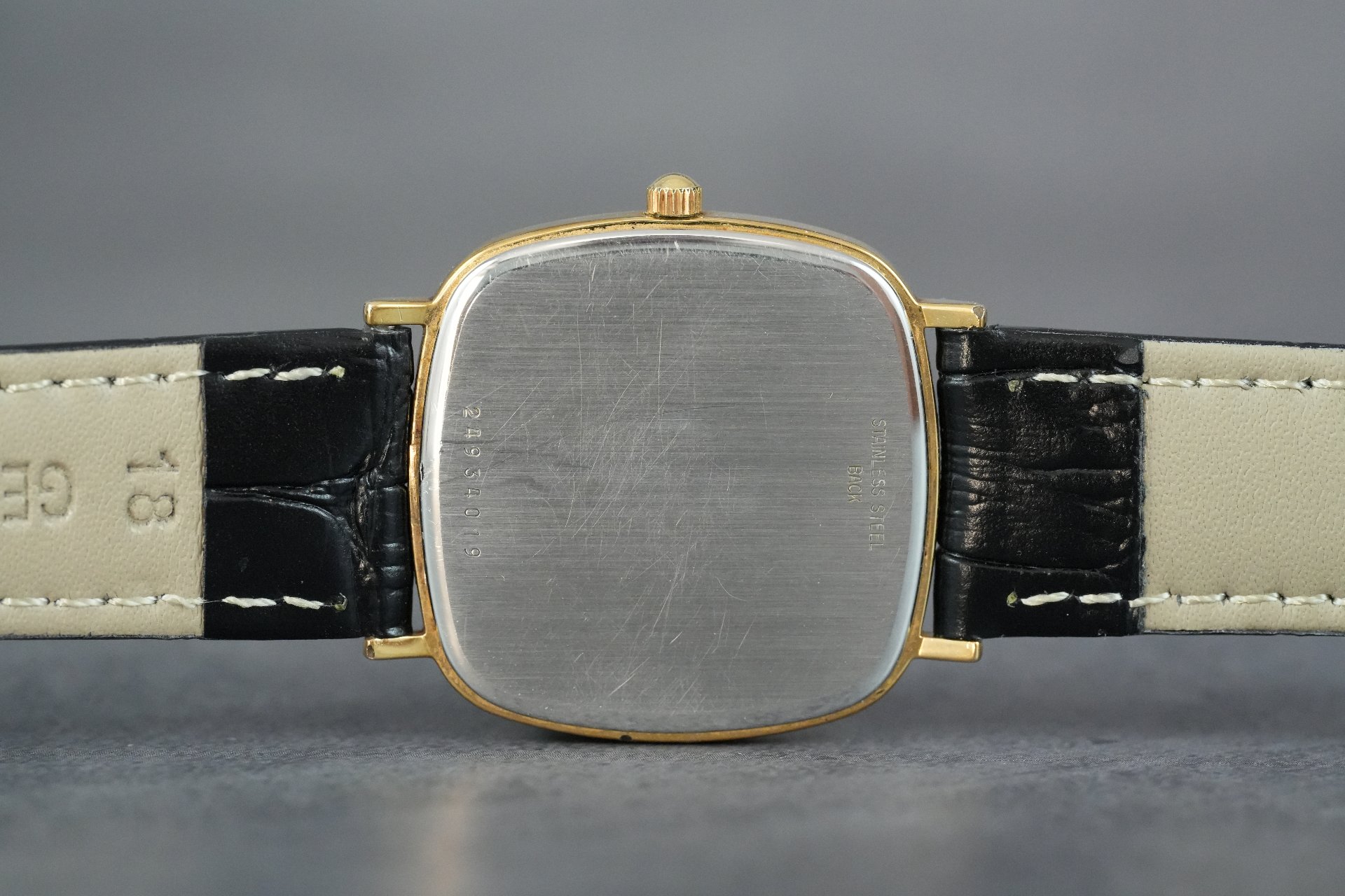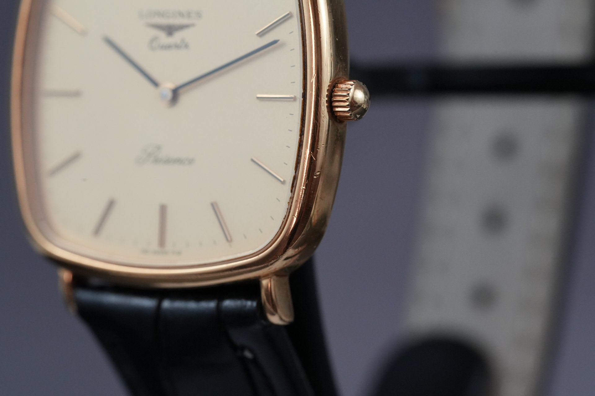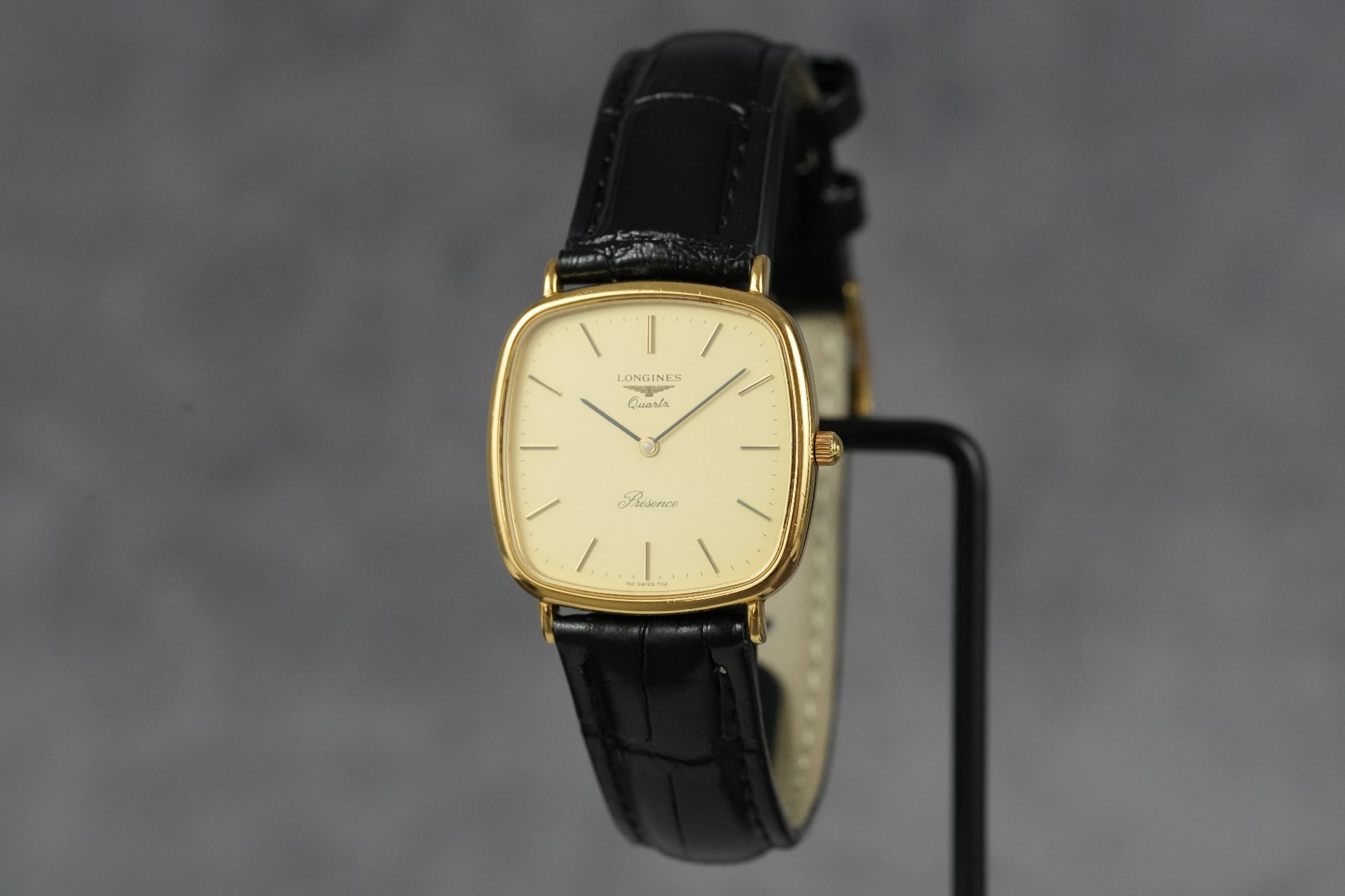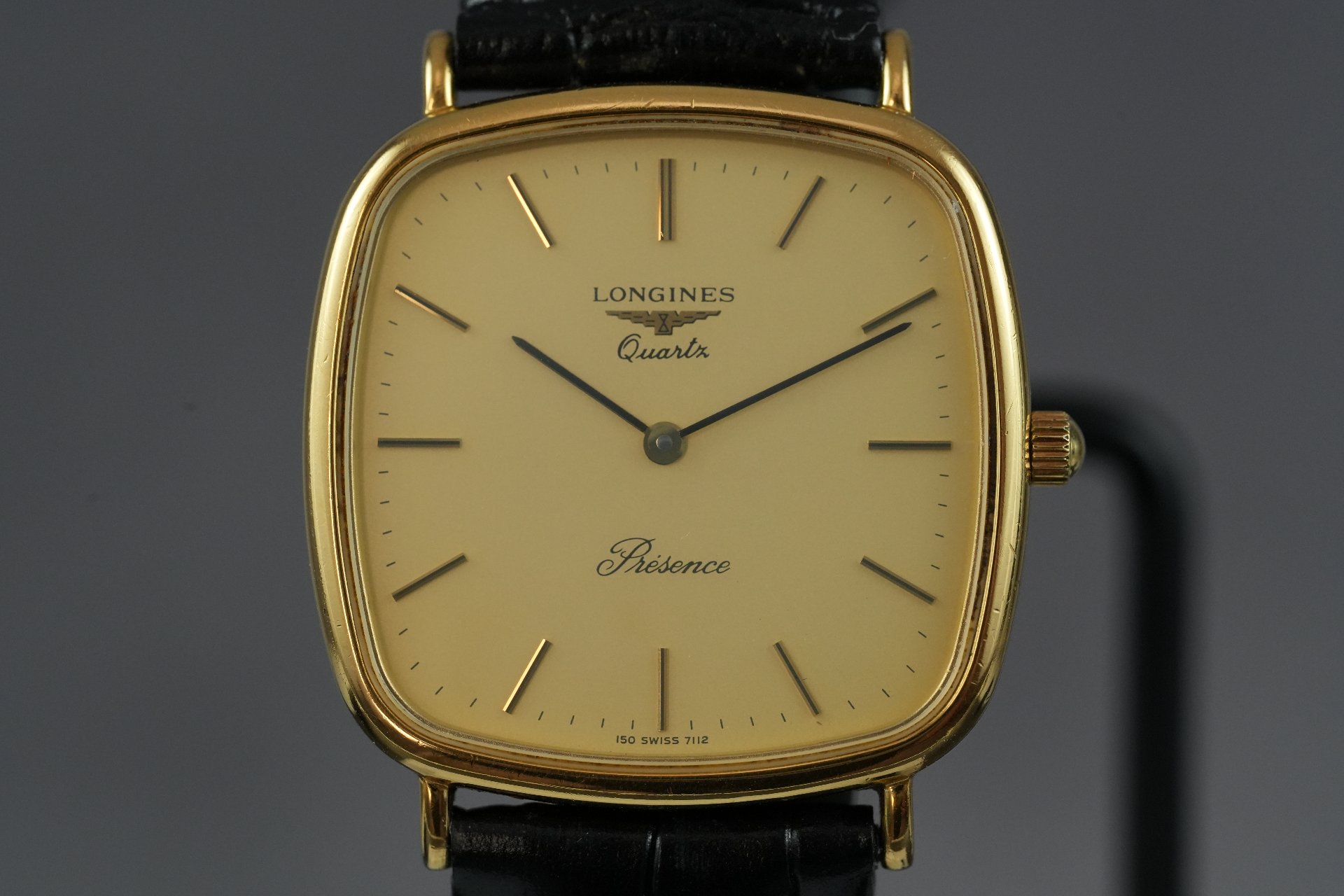 Découvrez l’élégance intemporelle avec cette montre Longines Présence Quartz, référence 150 7112, un véritable témoignage du savoir-faire horloger suisse. Son boîtier plaqué or de 33 mm de diamètre, abritant un mouvement à quartz précis, offre une allure distinguée, idéale pour la gent masculine. Cette pièce est livrée avec sa boîte d’origine mais sans ses papiers, garantissant son authenticité. Le bracelet et la boucle, tous deux d’origine, s’intègrent parfaitement à l’esthétique classique de la montre. Nous sommes fiers d’offrir une garantie d’une année sur ce garde-temps, symbole de raffinement et de fiabilité.