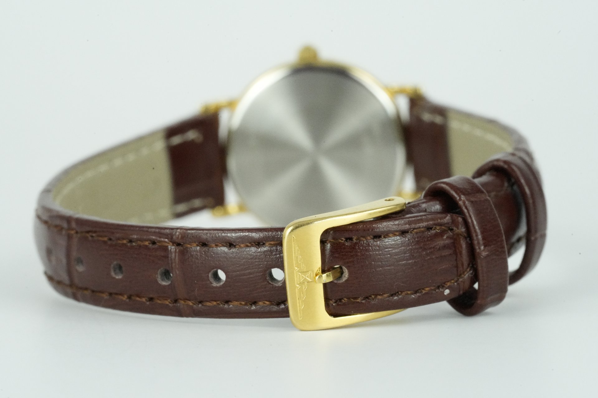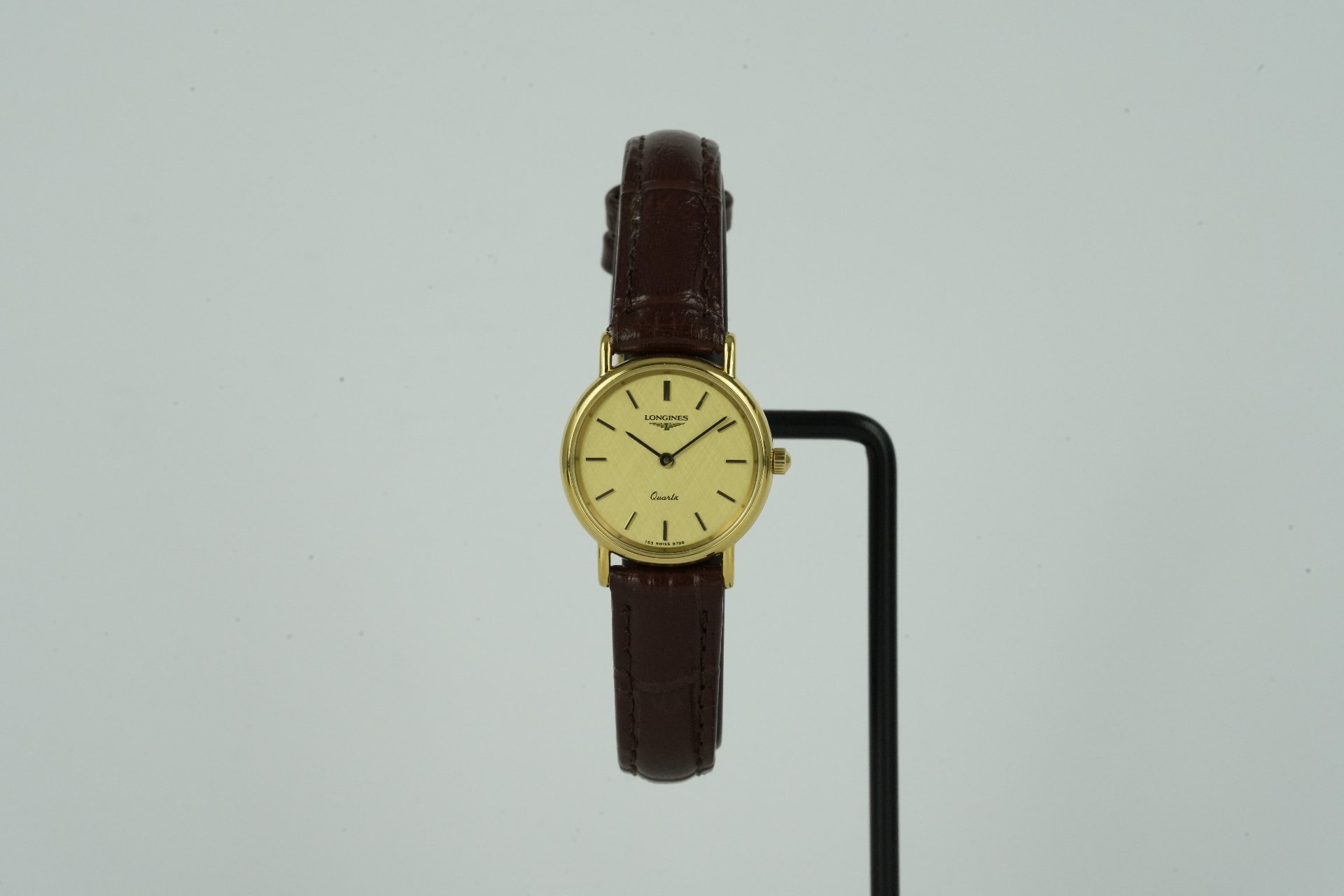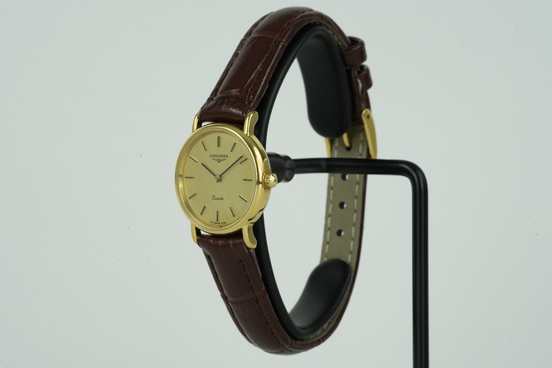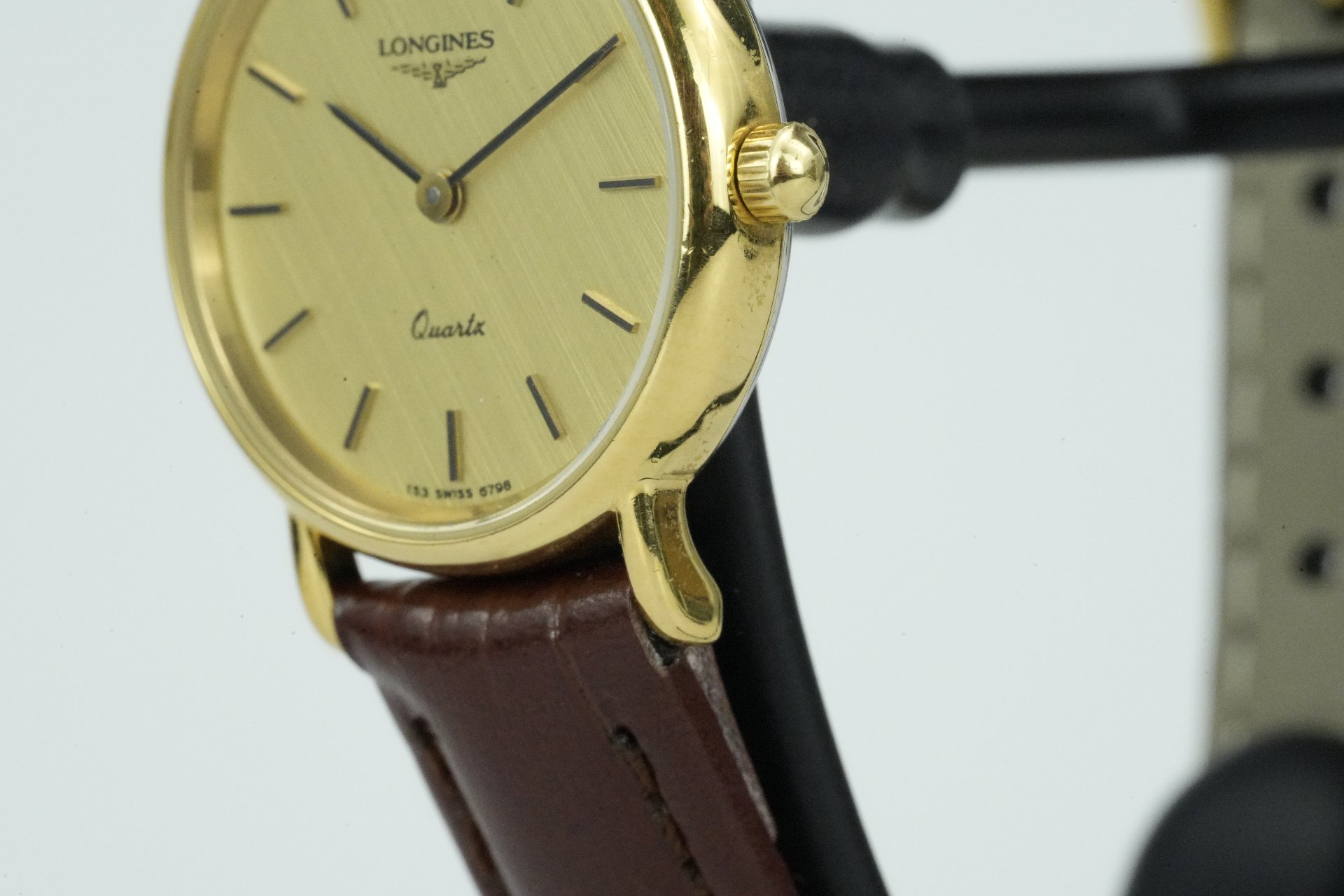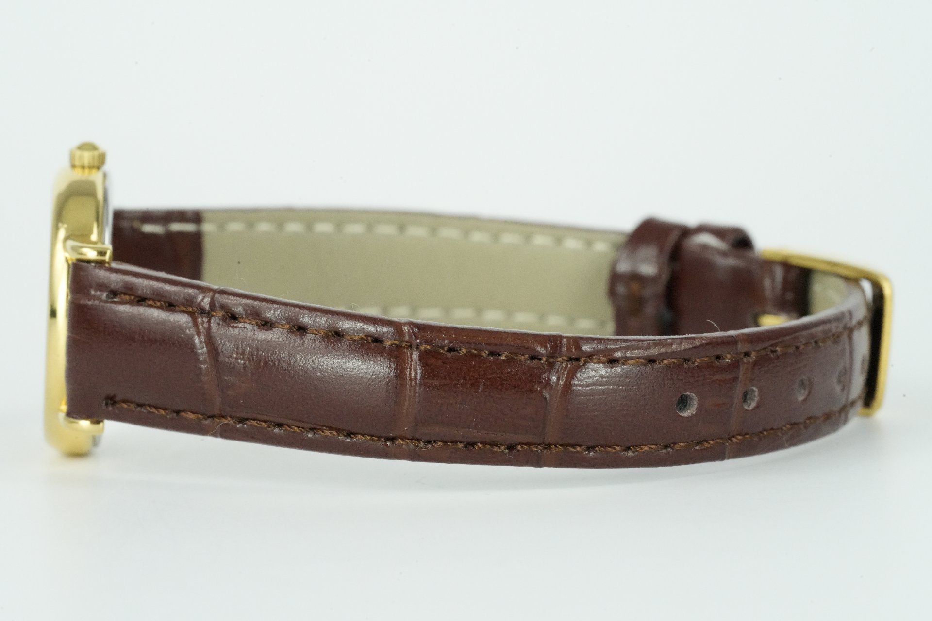 Découvrez cette élégante montre Longines Modèle Quartz, référence commerciale 153 6798 (TOT-01590), un témoignage raffiné de l’horlogerie féminine. Son boîtier plaqué or de 23,5mm de diamètre et 5mm d’épaisseur abrite un mouvement Quartz précis. Le cadran, discret et intemporel, est accompagné d’un bracelet en cuir brun non-original, contrastant avec sa boucle ardillon d’origine, signée Longines. Cette pièce, présentée en bon état, est livrée seule. Elle bénéficie d’une garantie de 12 mois.