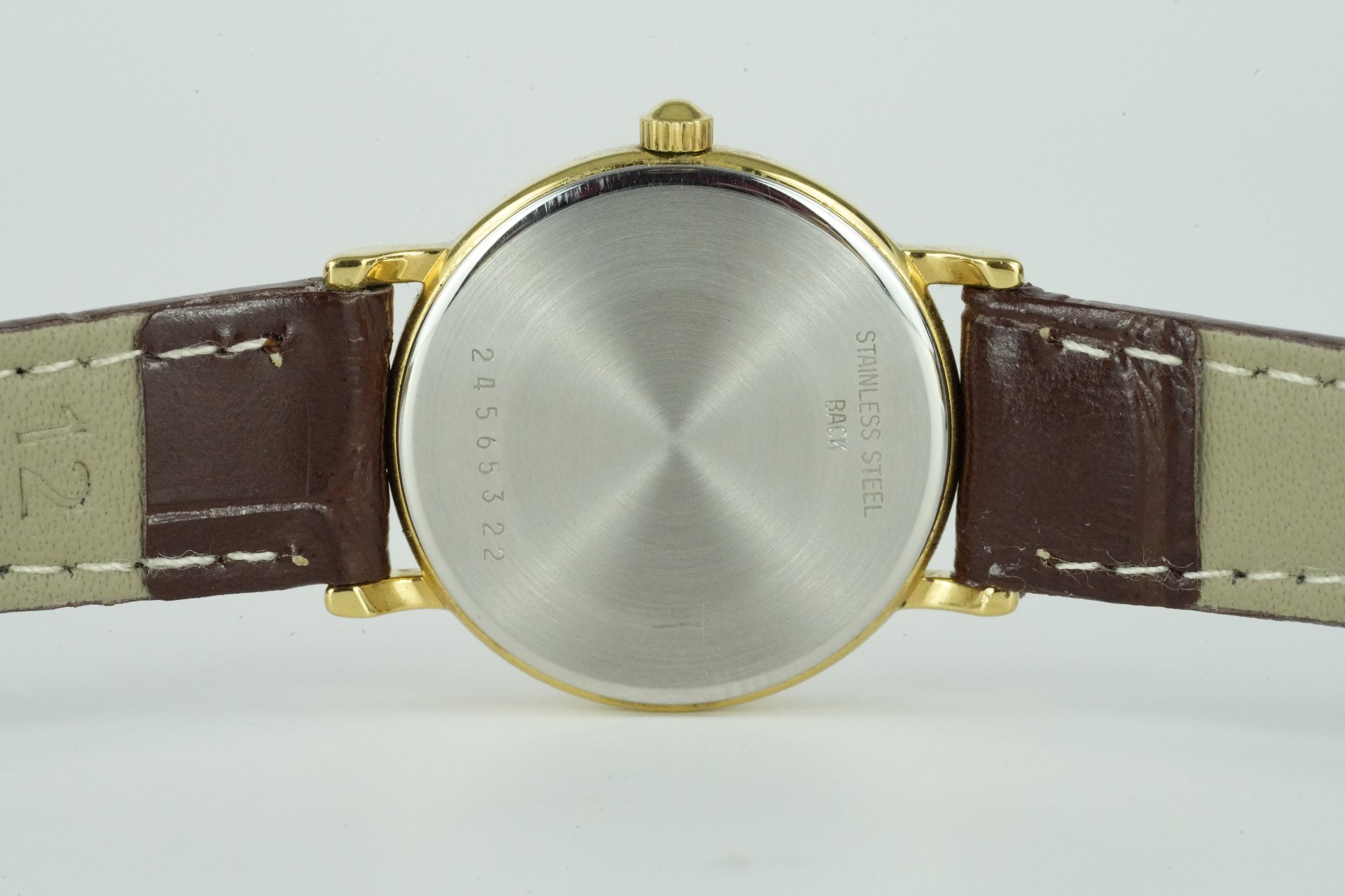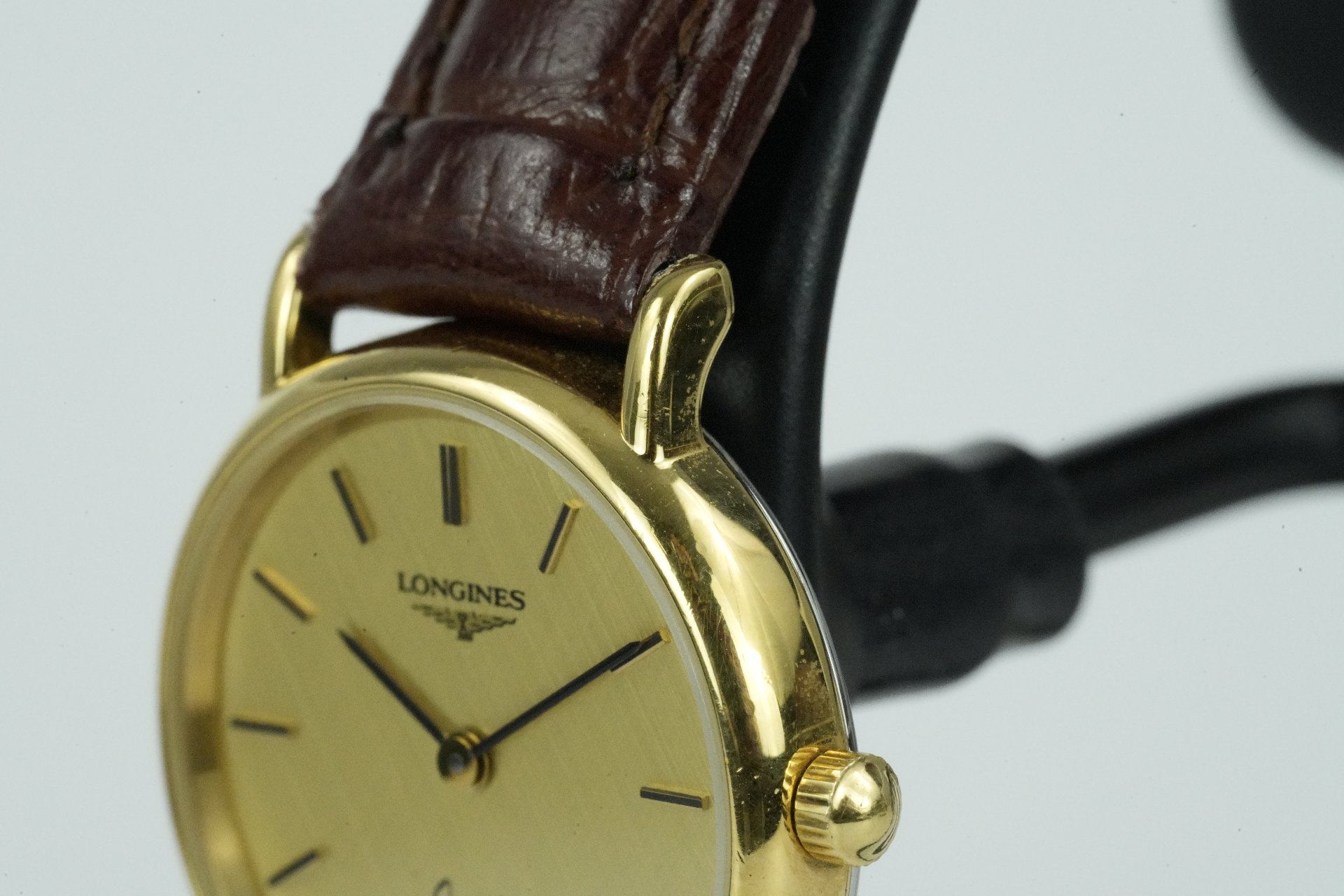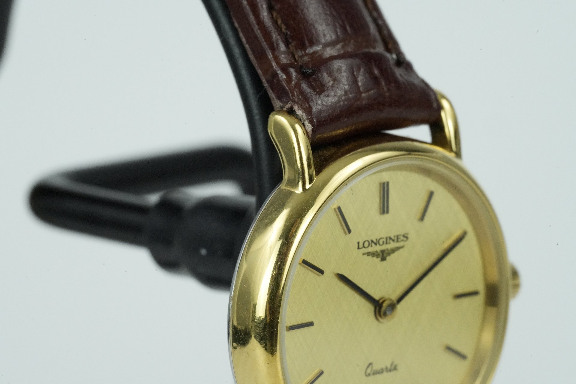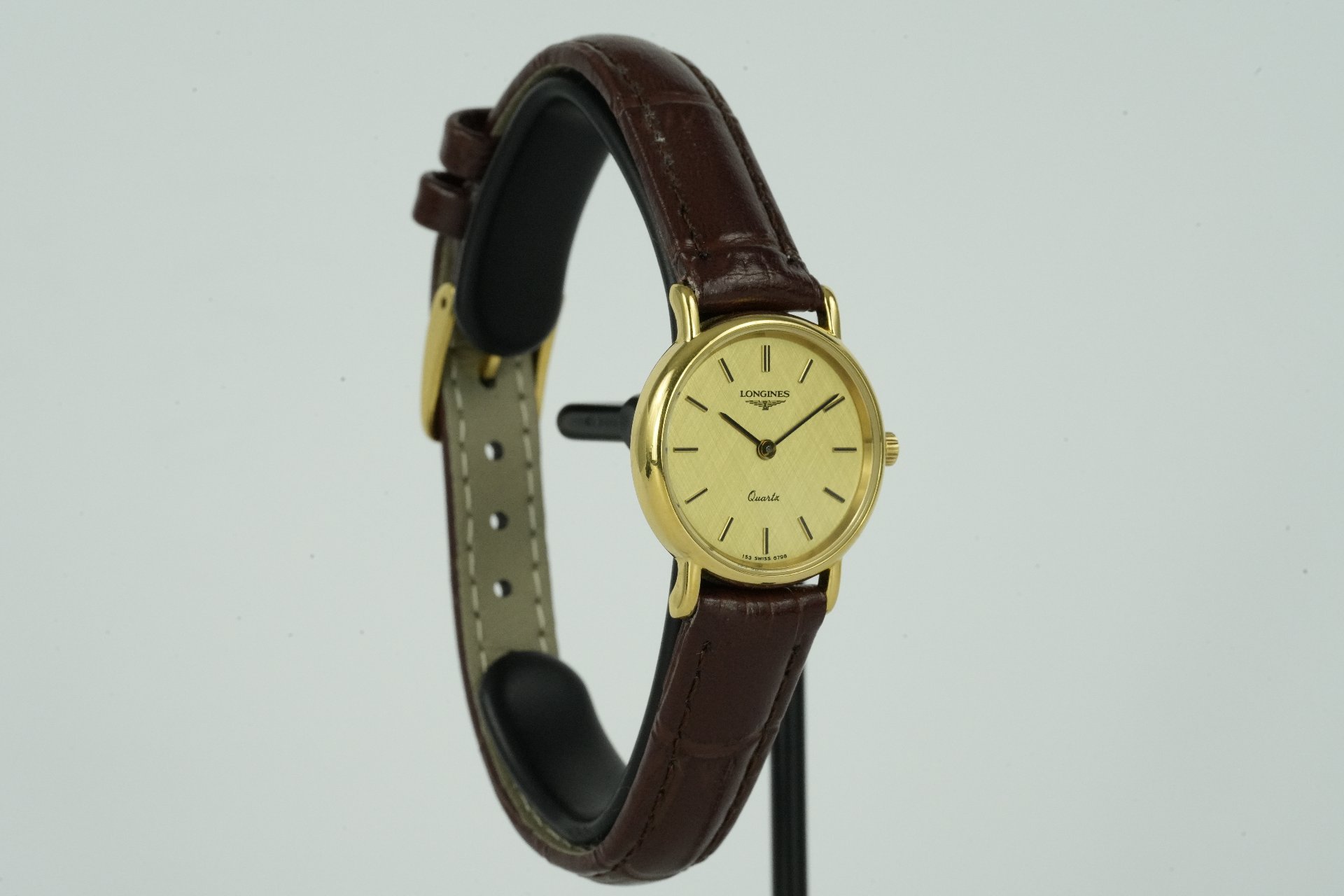 Découvrez cette élégante montre Longines Modèle Quartz, référence commerciale 153 6798 (TOT-01590), un témoignage raffiné de l’horlogerie féminine. Son boîtier plaqué or de 23,5mm de diamètre et 5mm d’épaisseur abrite un mouvement Quartz précis. Le cadran, discret et intemporel, est accompagné d’un bracelet en cuir brun non-original, contrastant avec sa boucle ardillon d’origine, signée Longines. Cette pièce, présentée en bon état, est livrée seule. Elle bénéficie d’une garantie de 12 mois.