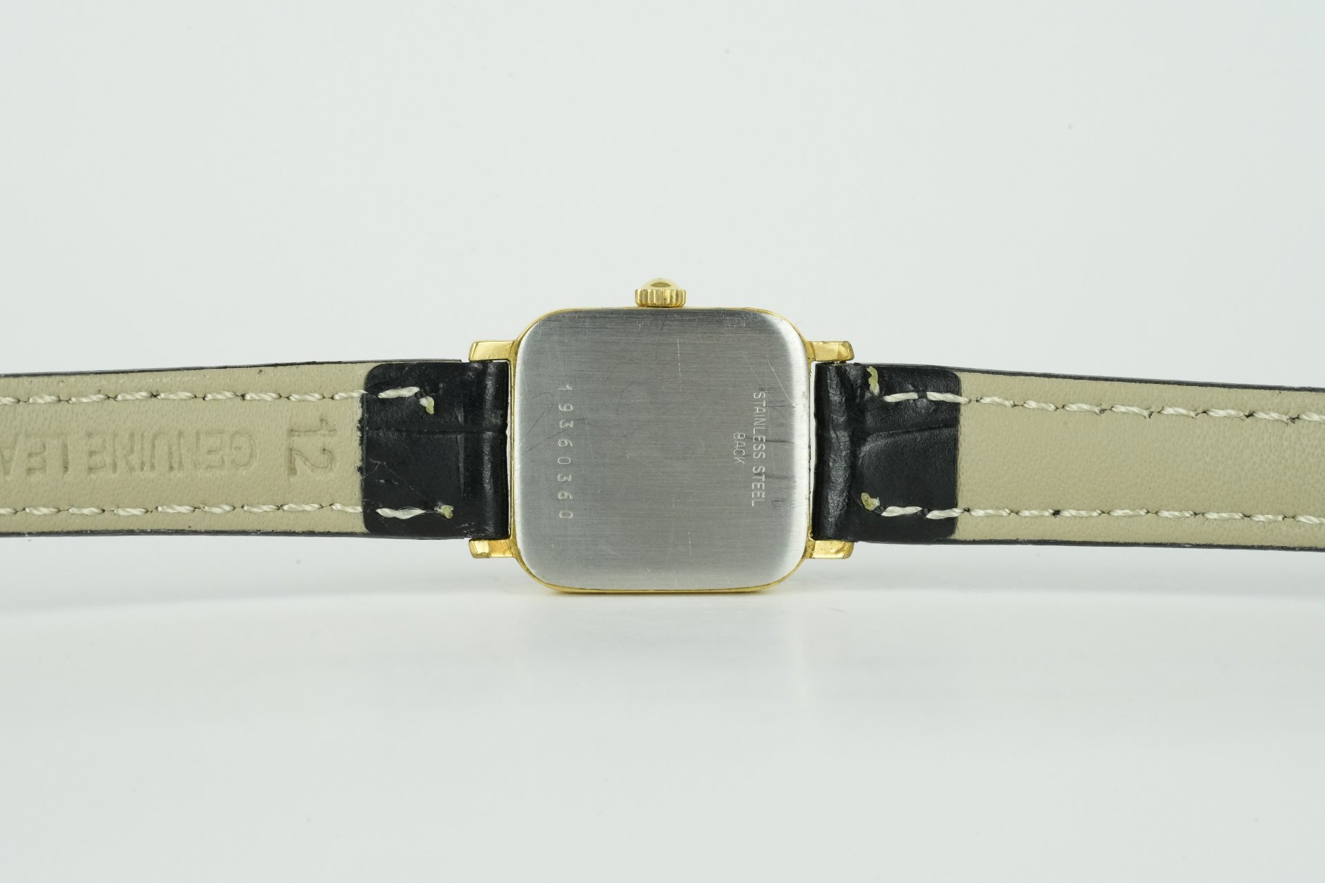 Plongez dans l’élégance intemporelle avec cette montre Longines Quartz, référence commerciale 960 6115, une pièce délicate de 1978. Conçue pour la femme, son boîtier raffiné en plaqué or, d’un diamètre de 19.3mm et d’une épaisseur de 4.8mm, abrite un mouvement à quartz d’une fiabilité éprouvée. Le bracelet en cuir noir, bien que non-original, s’accorde harmonieusement avec la boucle ardillon non-originale, conservant l’allure classique. Cette montre, livrée seule, est présentée dans un bon état, témoignant de son histoire avec discrétion. Elle est accompagnée d’une garantie de 12 mois.