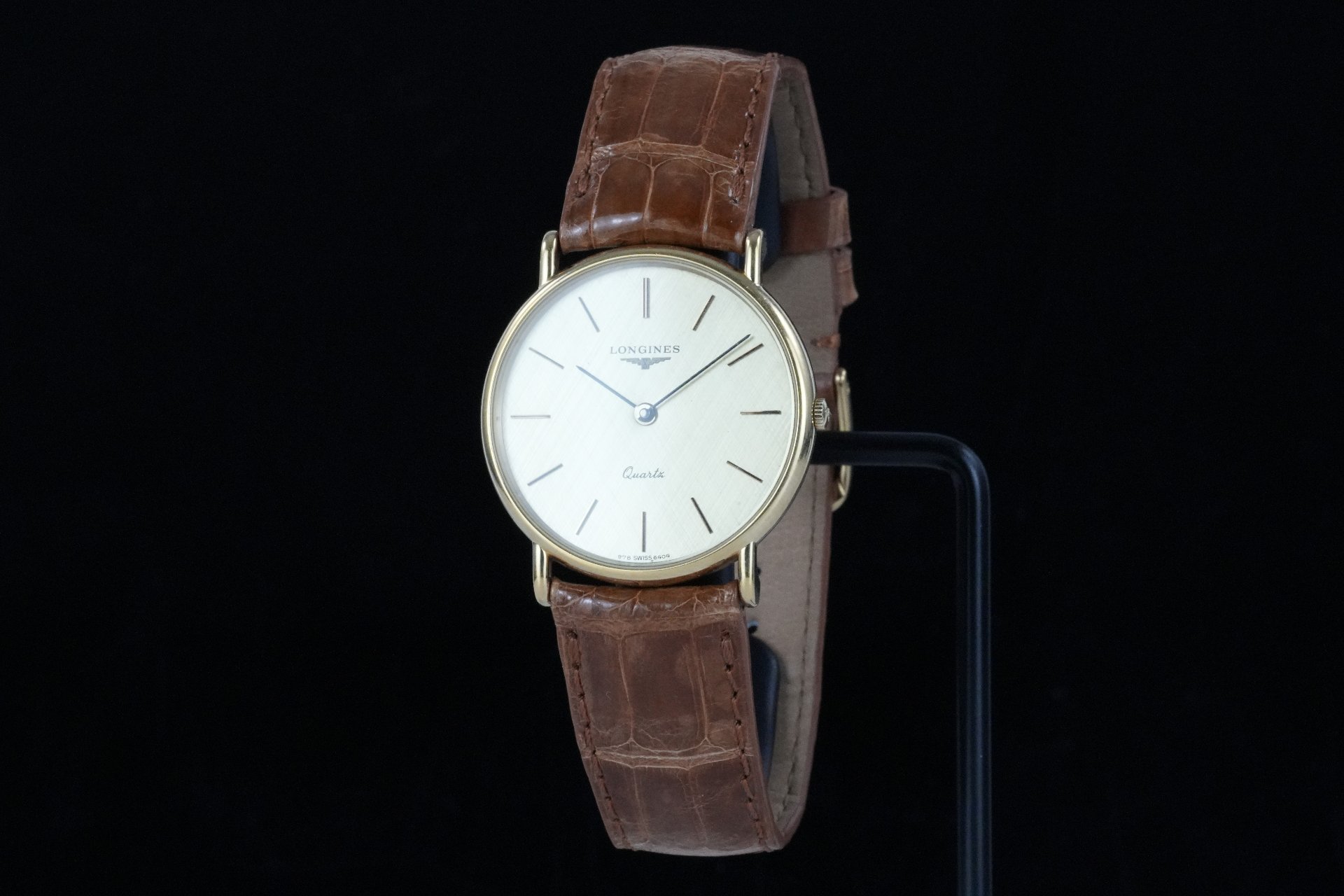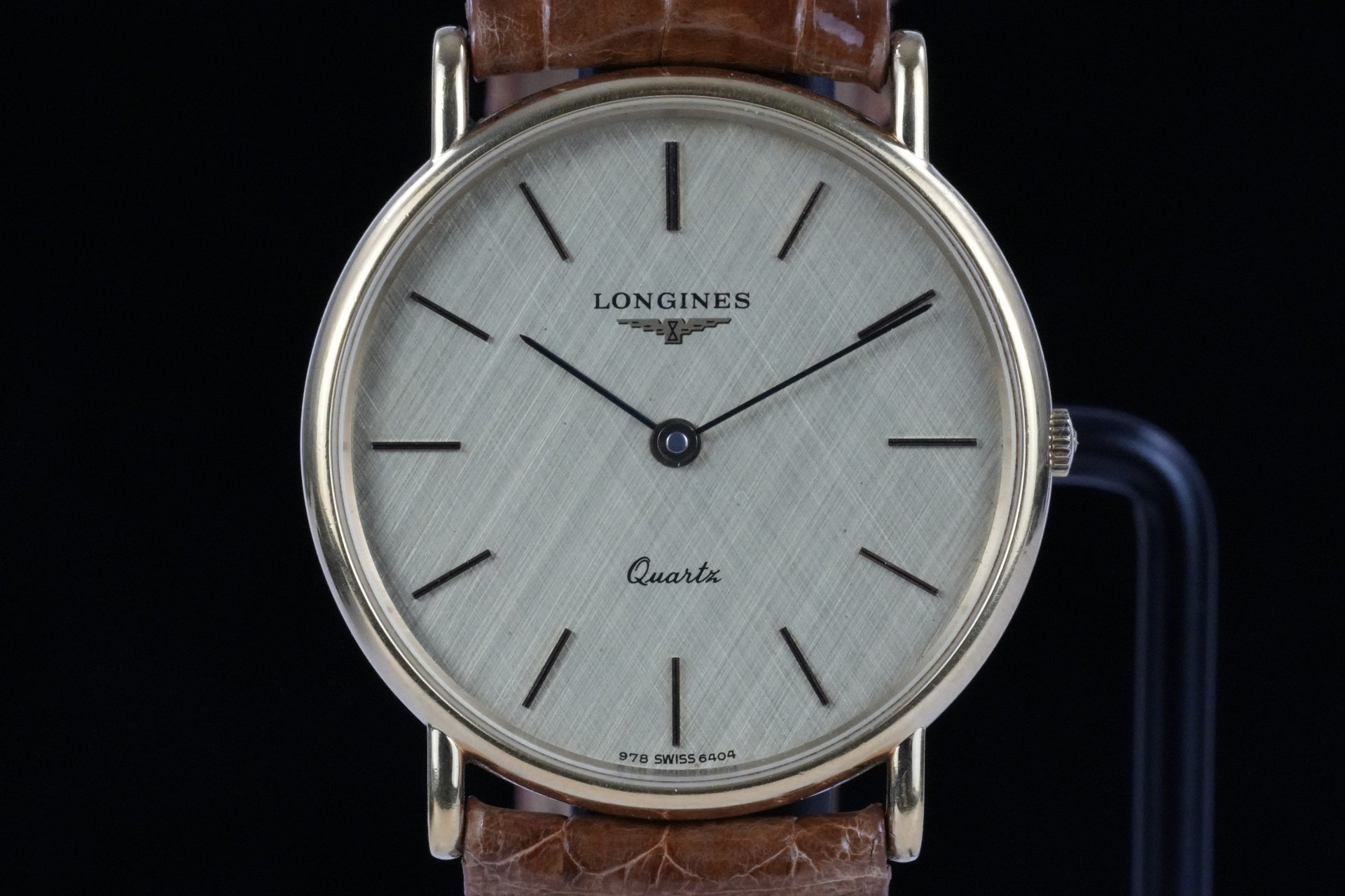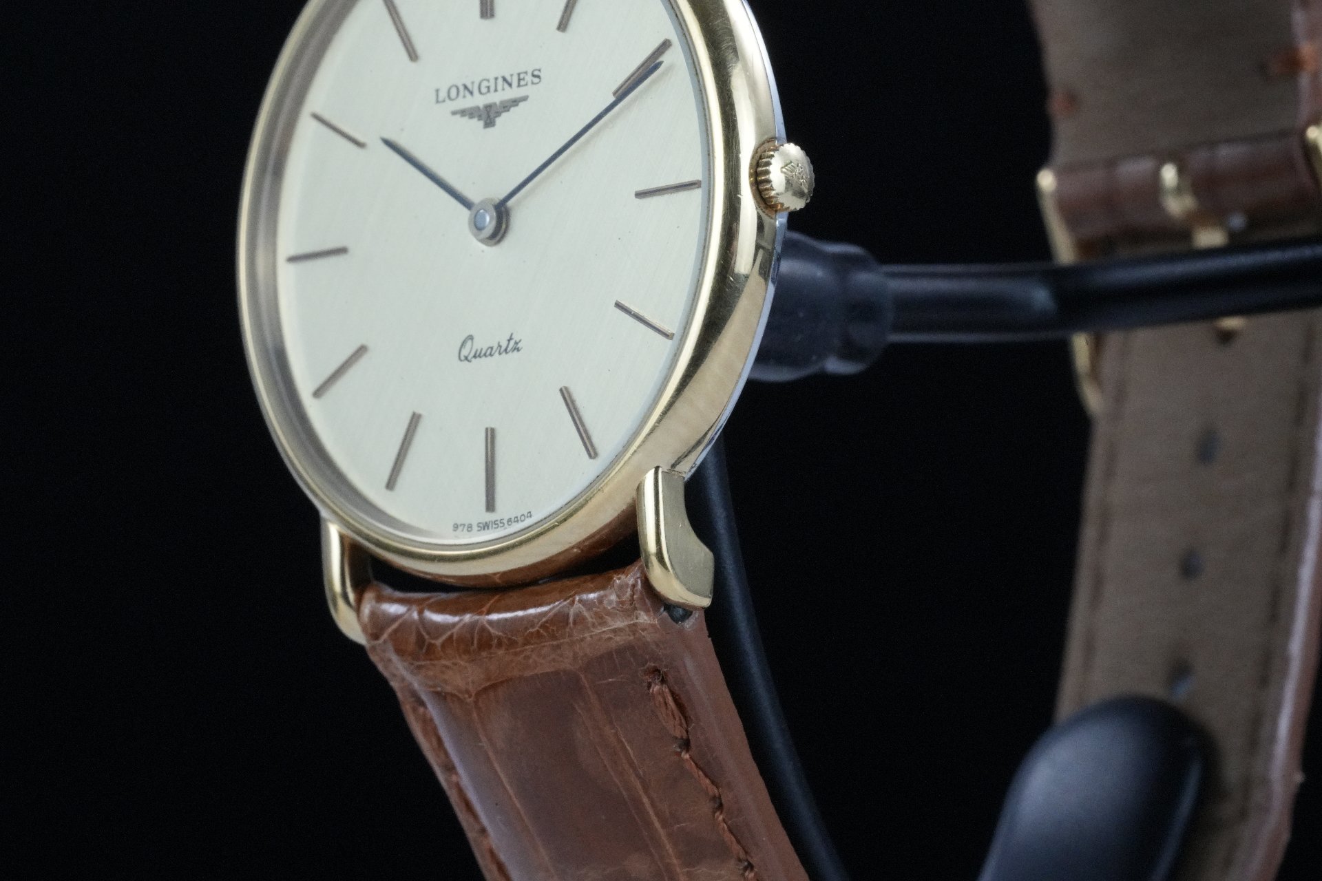 Découvrez l’élégance intemporelle de cette montre Longines Quartz, référence commerciale 978 6404. Ce modèle unisexe se distingue par son boîtier plaqué or de 32.4mm de diamètre et une finesse remarquable de 4.8mm d’épaisseur. Animée par un mouvement Quartz de précision, elle incarne la fiabilité et le savoir-faire horloger. Le bracelet en cuir brun et la boucle ardillon, bien que non-originaux, complètent harmonieusement son allure classique. Cette pièce est proposée en bon état et bénéficie d’une garantie de 12 mois. Référence TOT-01812.