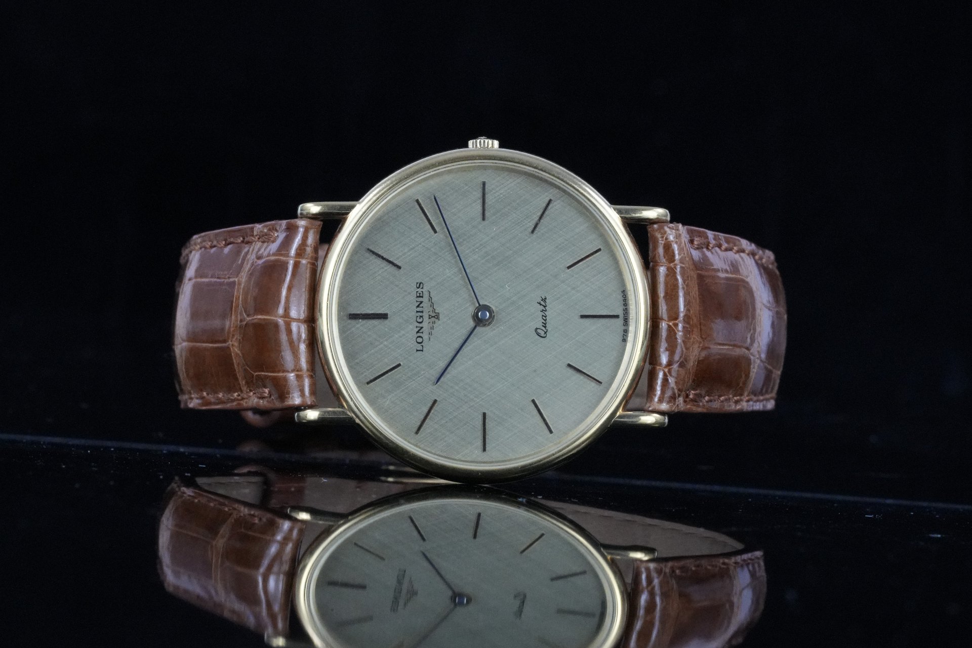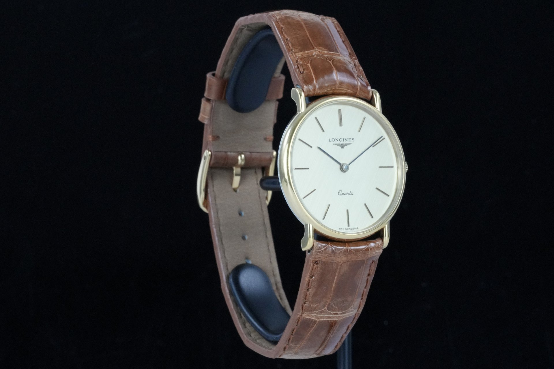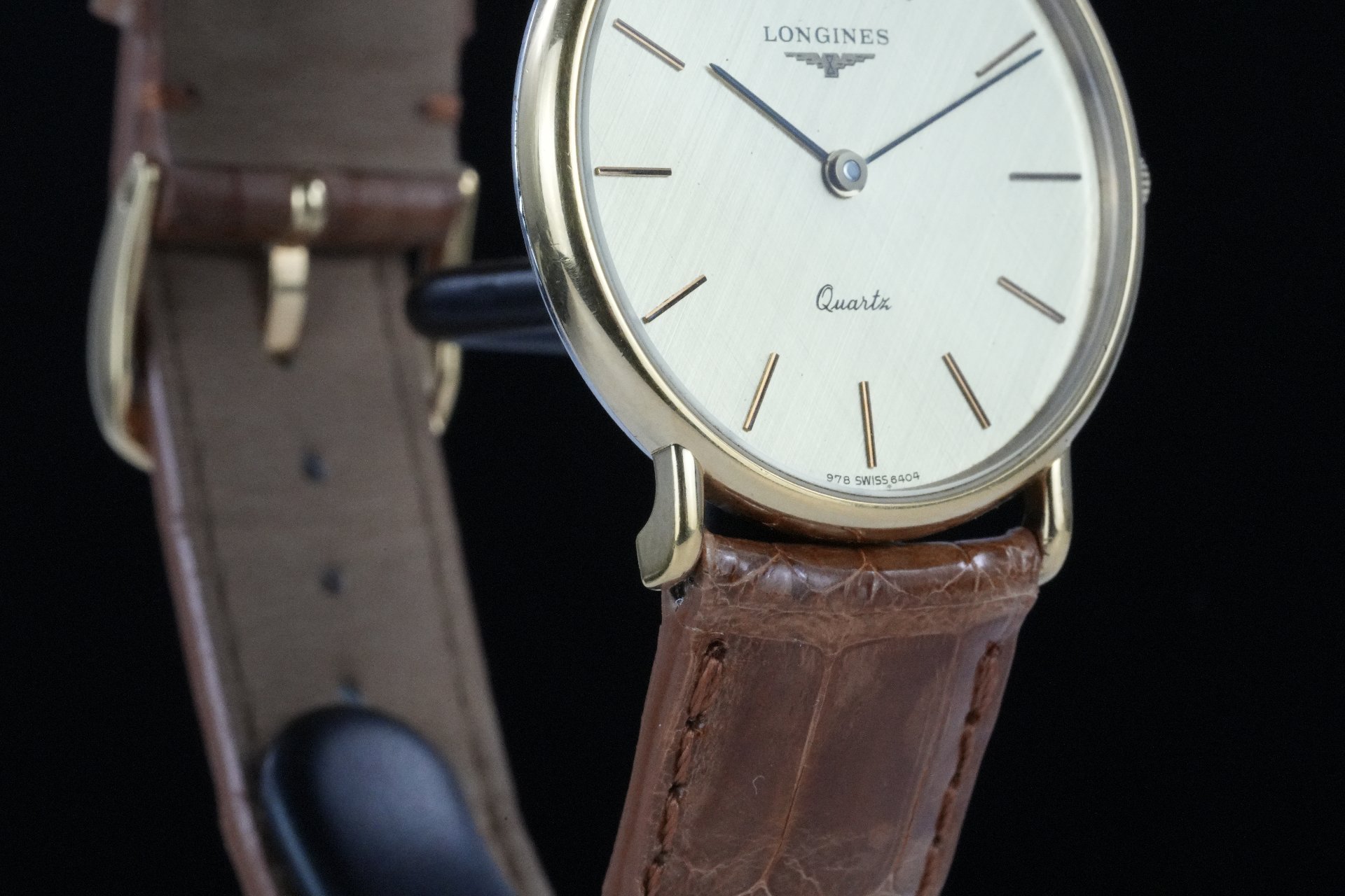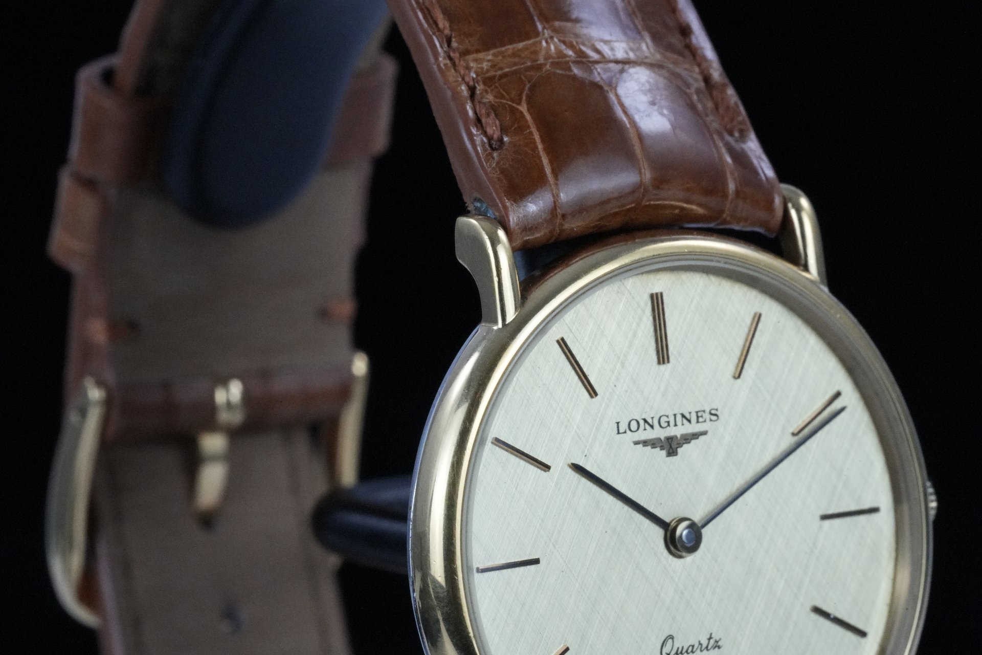 Découvrez l’élégance intemporelle de cette montre Longines Quartz, référence commerciale 978 6404. Ce modèle unisexe se distingue par son boîtier plaqué or de 32.4mm de diamètre et une finesse remarquable de 4.8mm d’épaisseur. Animée par un mouvement Quartz de précision, elle incarne la fiabilité et le savoir-faire horloger. Le bracelet en cuir brun et la boucle ardillon, bien que non-originaux, complètent harmonieusement son allure classique. Cette pièce est proposée en bon état et bénéficie d’une garantie de 12 mois. Référence TOT-01812.