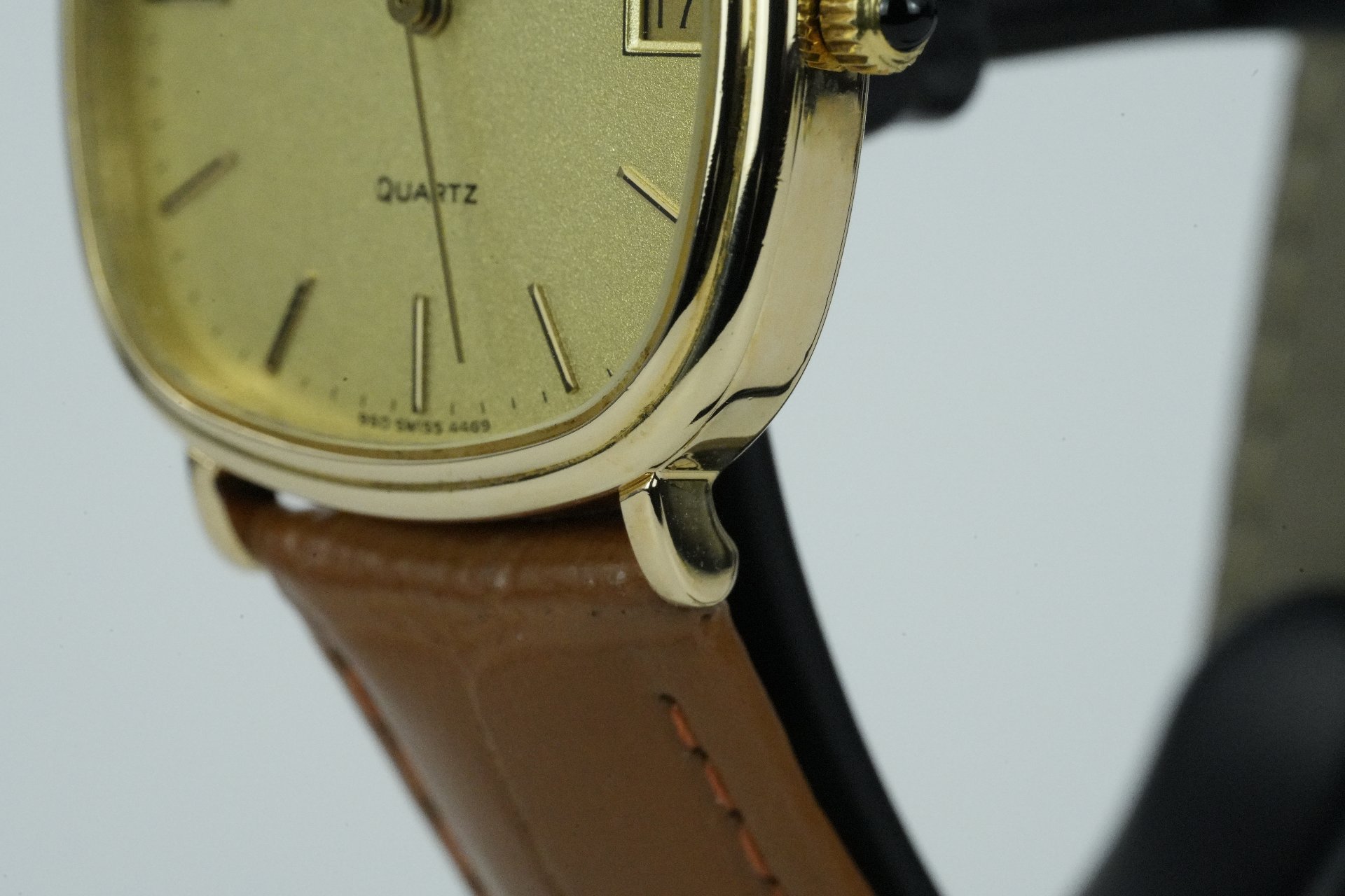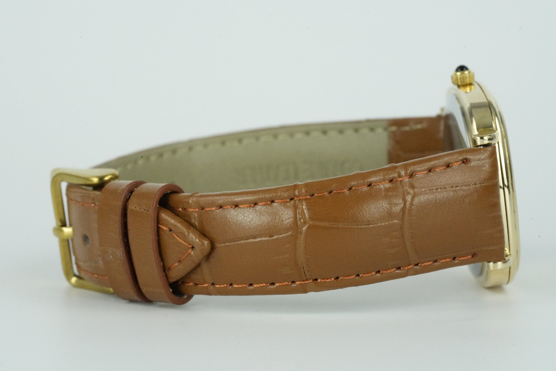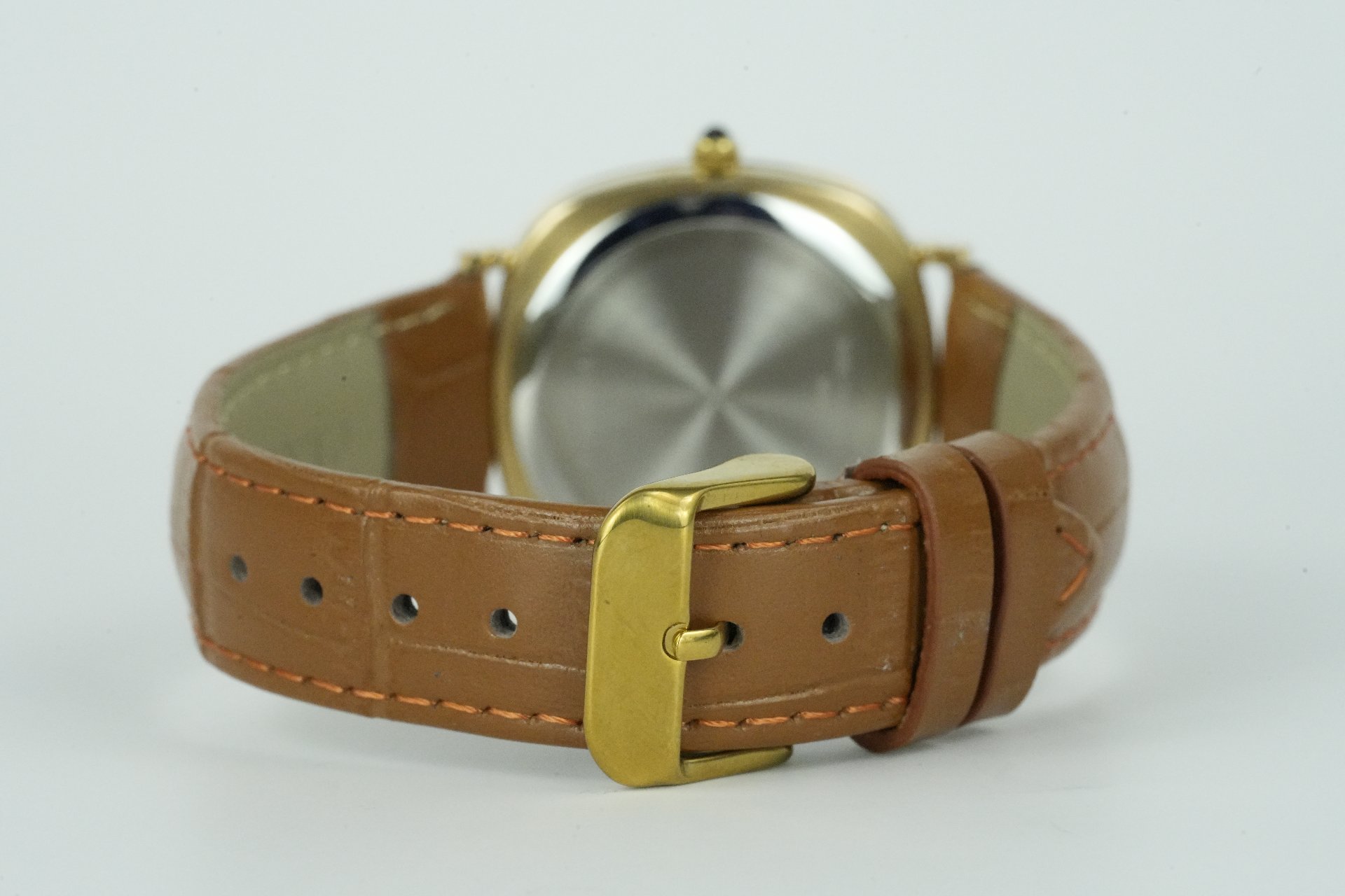 Découvrez cette élégante montre Longines Quartz Date, Référence commerciale 950 4469 (Référence TOT TOT-01452), un modèle unisexe datant de 1980 et en très bon état. Son boîtier plaqué or de 33 mm de diamètre, avec une fine épaisseur de 7 mm, abrite un mouvement Quartz précis et fiable. Le bracelet en cuir brun non-original est complété par une boucle ardillon, également non-originale. Cette pièce est livrée complète et bénéficie d’une garantie de 12 mois.