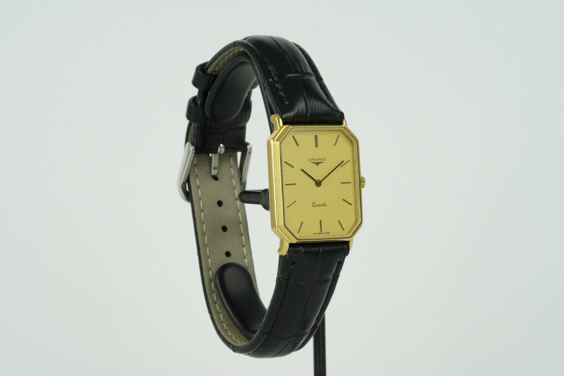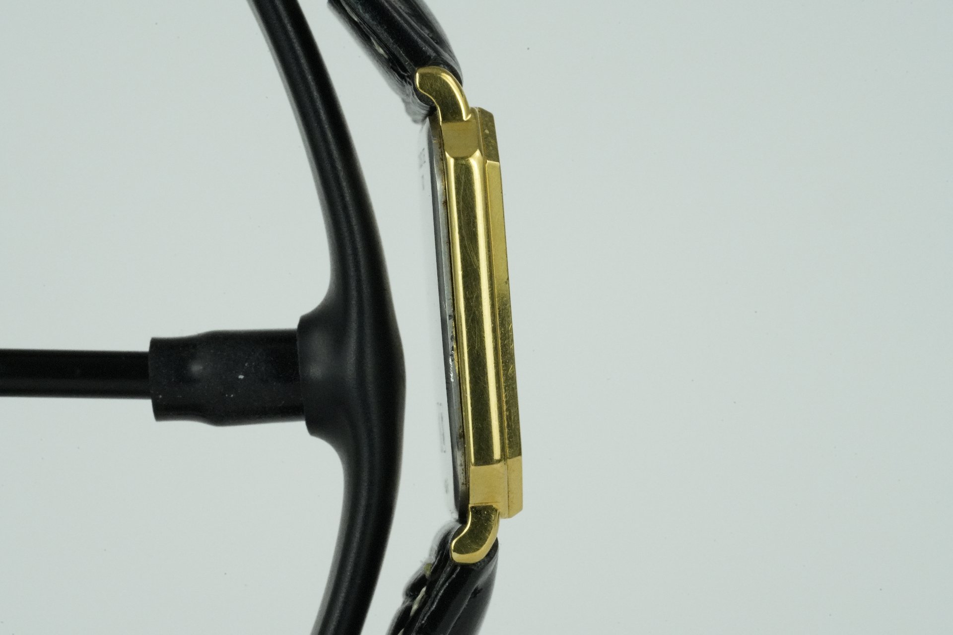 Découvrez l’élégance intemporelle avec cette montre Longines « Tank » au mouvement Quartz, référence commerciale 150 6708 (TOT-01663). Son boîtier unisexe, plaqué or, affiche une finesse remarquable avec un diamètre de 26.6mm et une épaisseur de seulement 5.2mm. Le cadran, d’une sobriété exquise, est sublimé par un bracelet en cuir noir non-original, complété par une boucle ardillon également non-originale, offrant un contraste raffiné. Avec une étanchéité de 3 ATM, cette pièce allie esthétique classique et fonctionnalité. Cette montre vous est proposée en bon état, prête à embellir votre poignet avec une garantie de 12 mois.