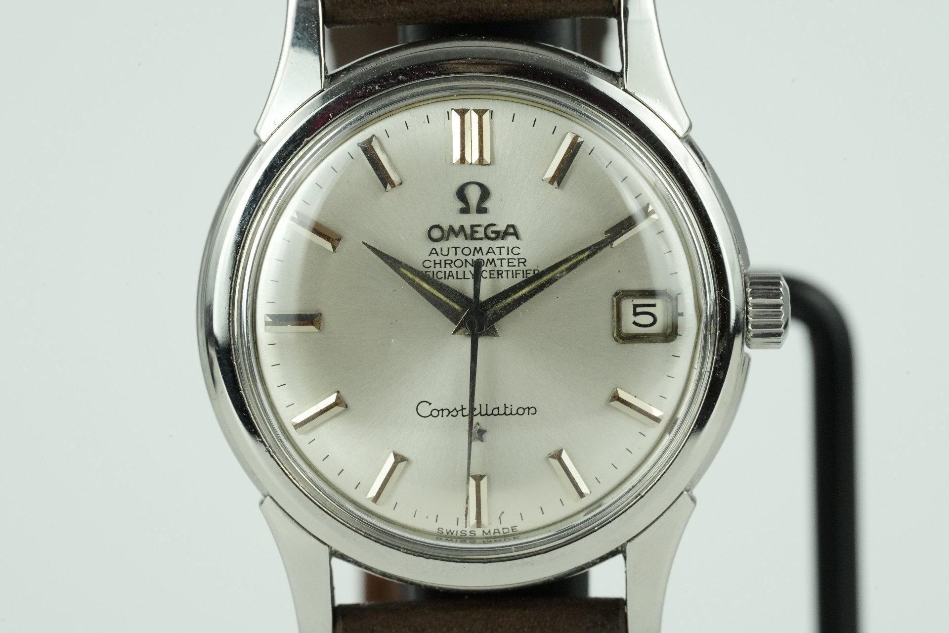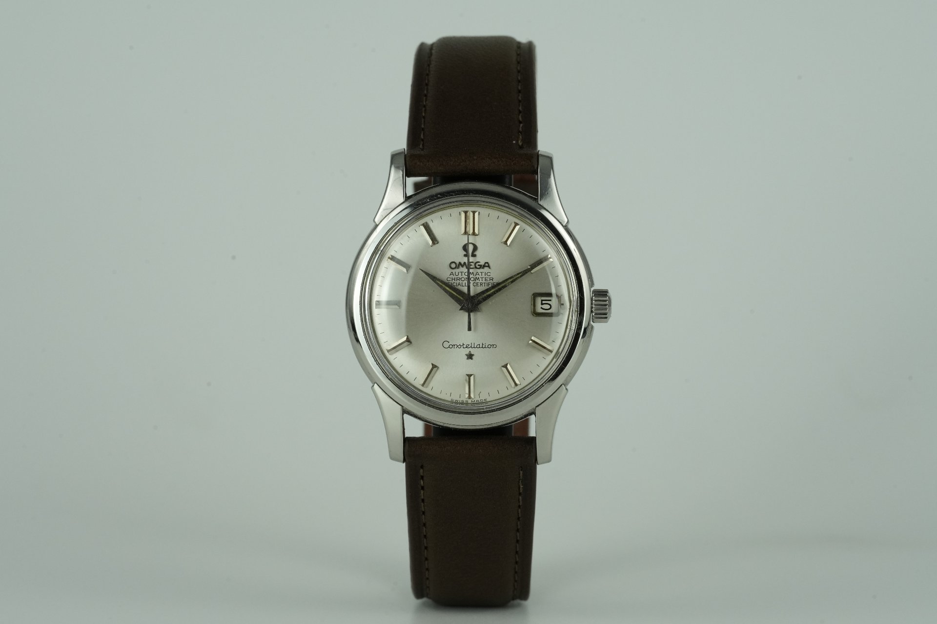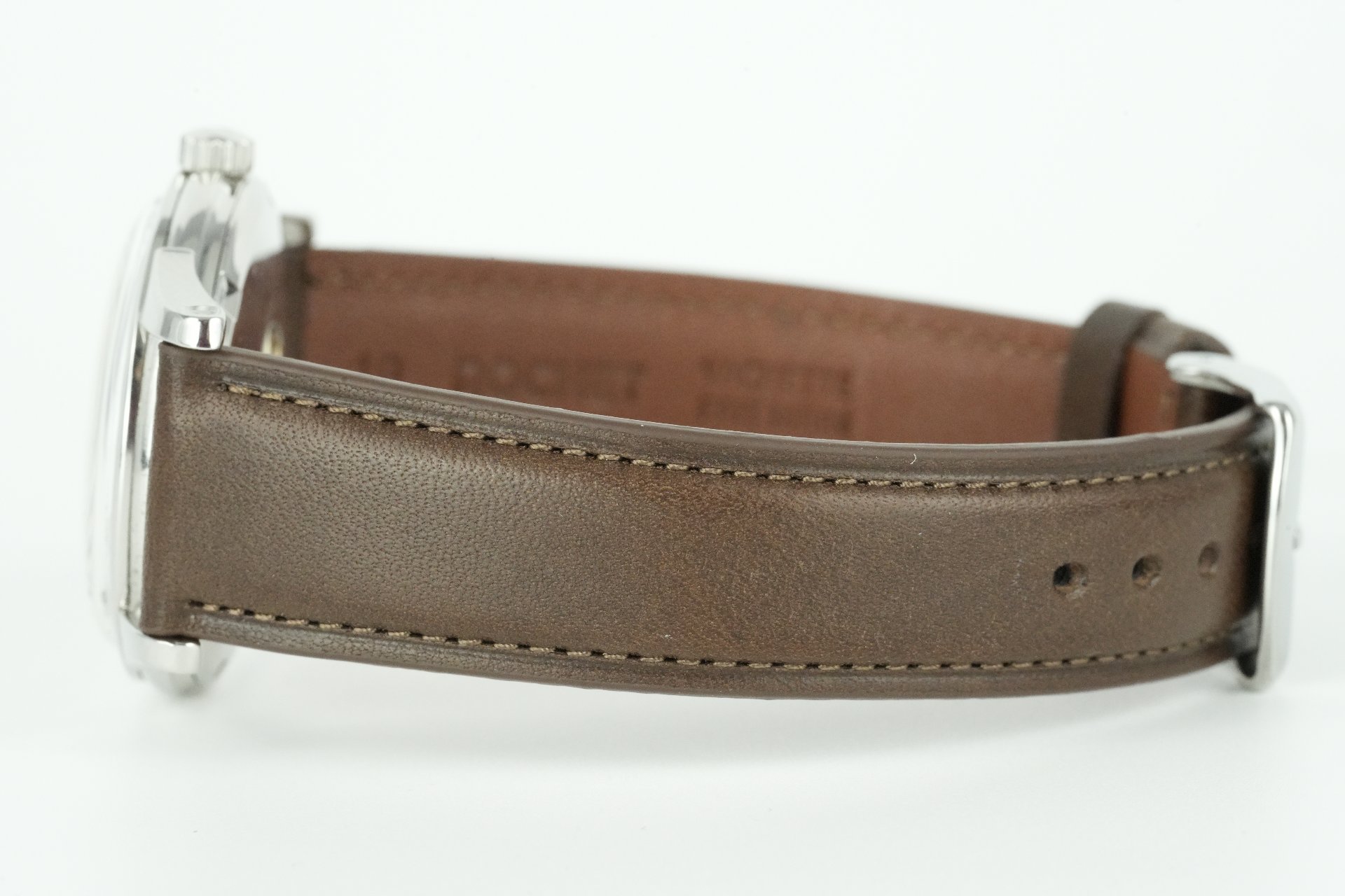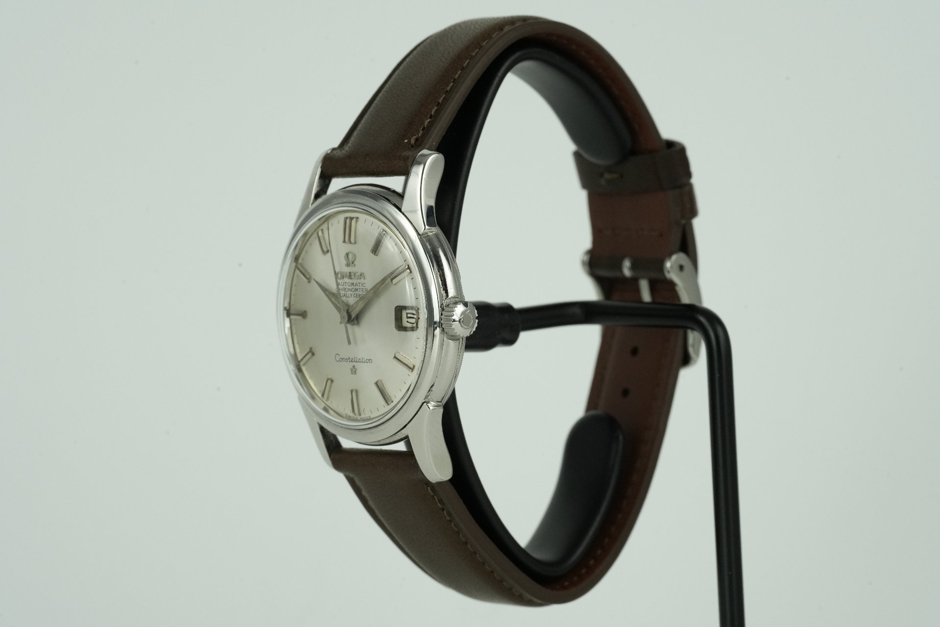 Plongez dans l’héritage horloger avec cette Omega Constellation, référence 14393 6 SC, datant de 1959. Ce garde-temps masculin, dans un très bon état, est une véritable icône de l’élégance vintage. Son boîtier en acier de 34.4 mm de diamètre (épaisseur 10.9 mm) abrite un mouvement à remontage automatique, témoignage du savoir-faire d’Omega. Le bracelet en cuir brun non-original s’harmonise avec la boucle ardillon non-originale, offrant une esthétique intemporelle. Accompagnée de son coffret, cette Omega Constellation est une pièce de collection qui se distingue par son charme authentique. Elle bénéficie d’une garantie de 12 mois.