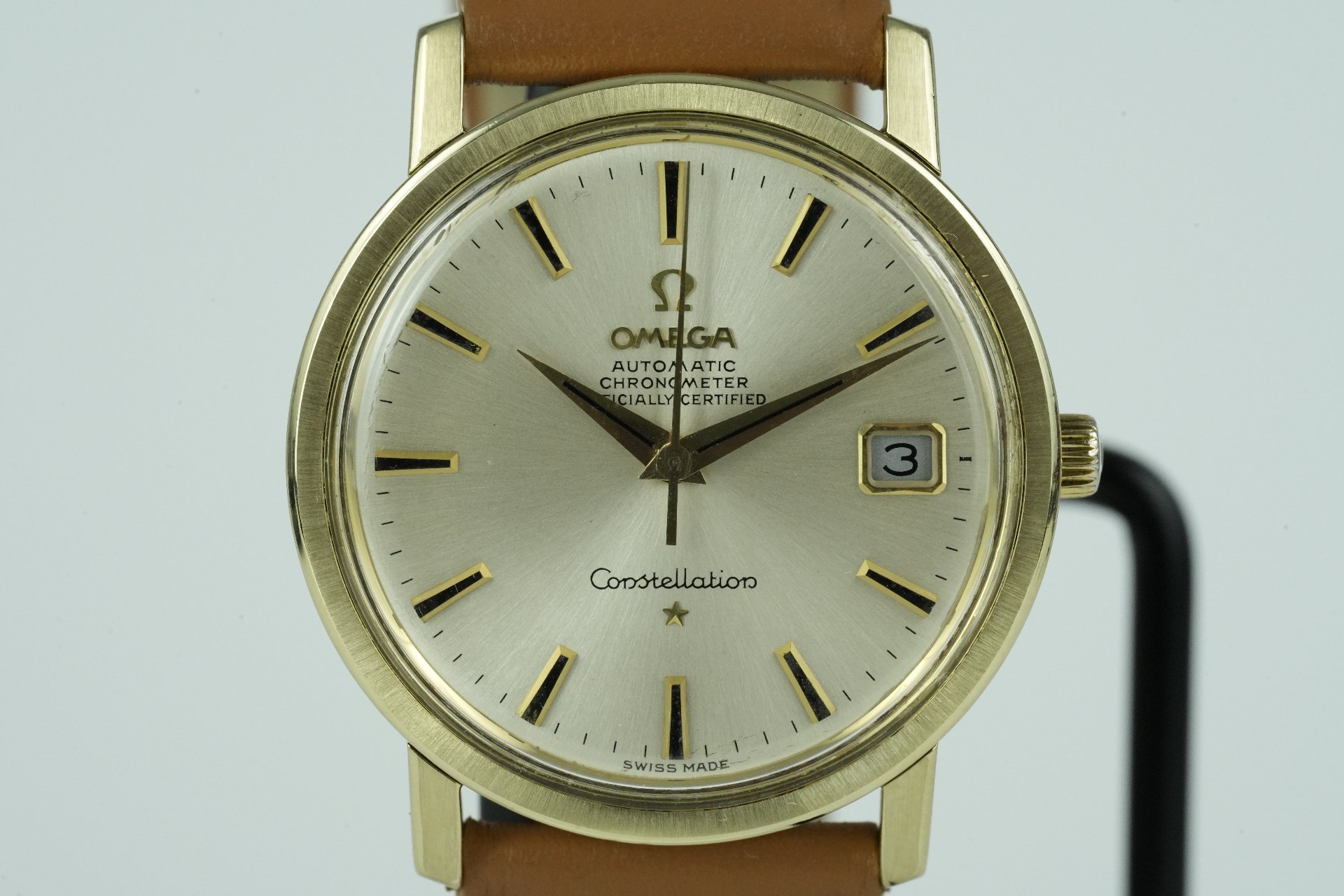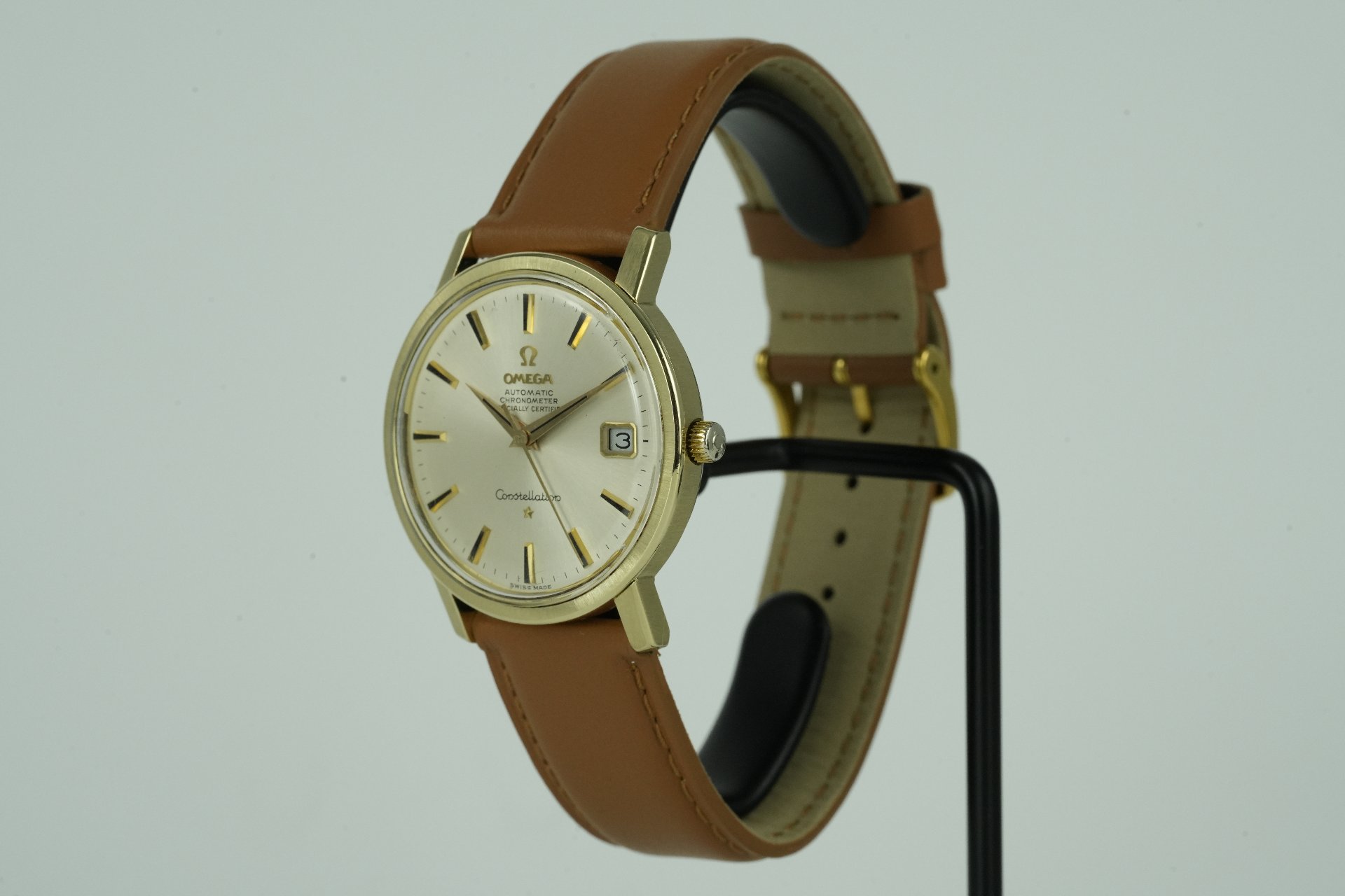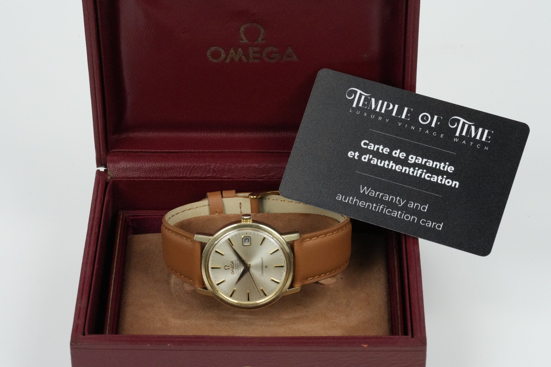 Découvrez l’élégance intemporelle de cette Omega Constellation Chronometer, référence 168.018, une pièce emblématique datant de 1969. Ce modèle homme, en excellent état, est présenté avec son coffret d’origine. Son boîtier plaqué or de 35mm de diamètre et 10mm d’épaisseur abrite un mouvement à remontage automatique, gage de précision horlogère. Le cadran est complété par un bracelet en cuir brun non original, assorti d’une boucle ardillon également non originale. Cette montre, référence TOT-01643, bénéficie d’une garantie de 12 mois.